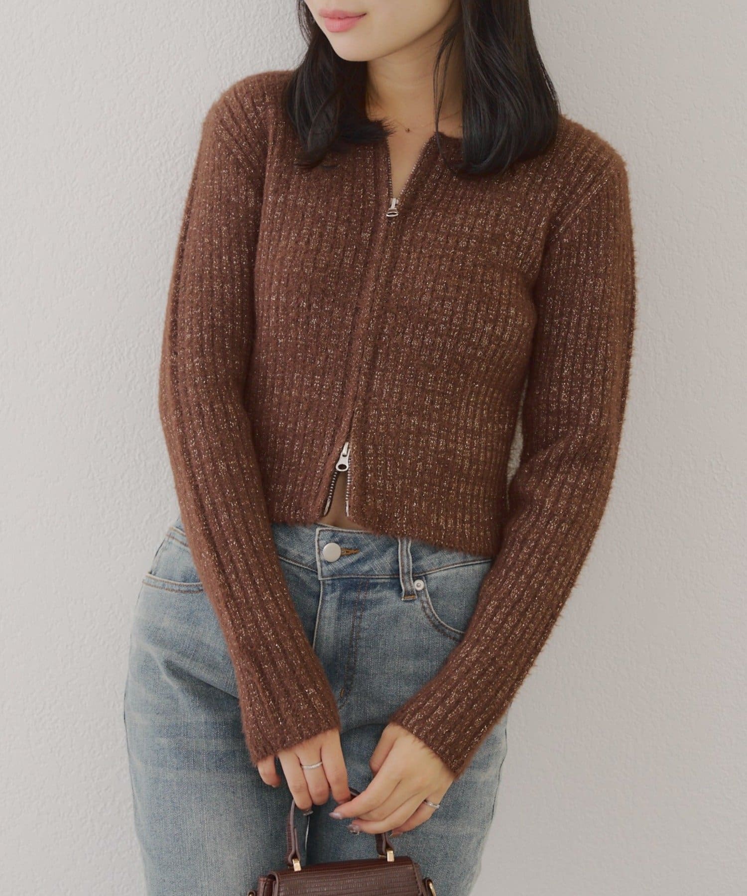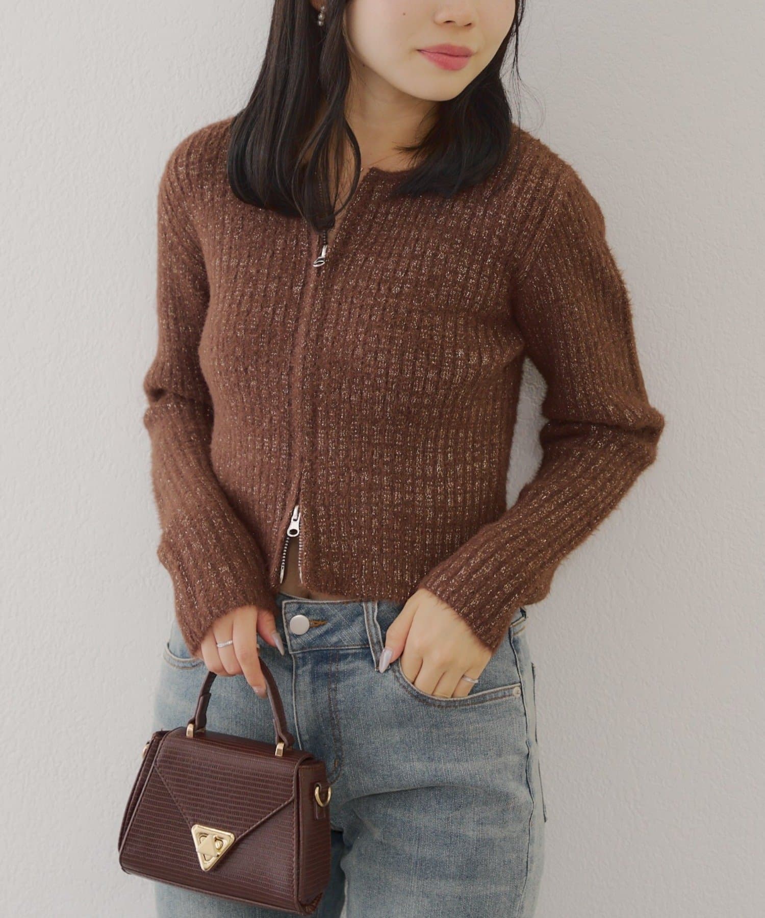 TOP > NICE CLAUP / OLIVE des OLIVE OUTLET > レディース > トップス > ニット/セーター > 【RMAF】ラメフェザーWZIPニット