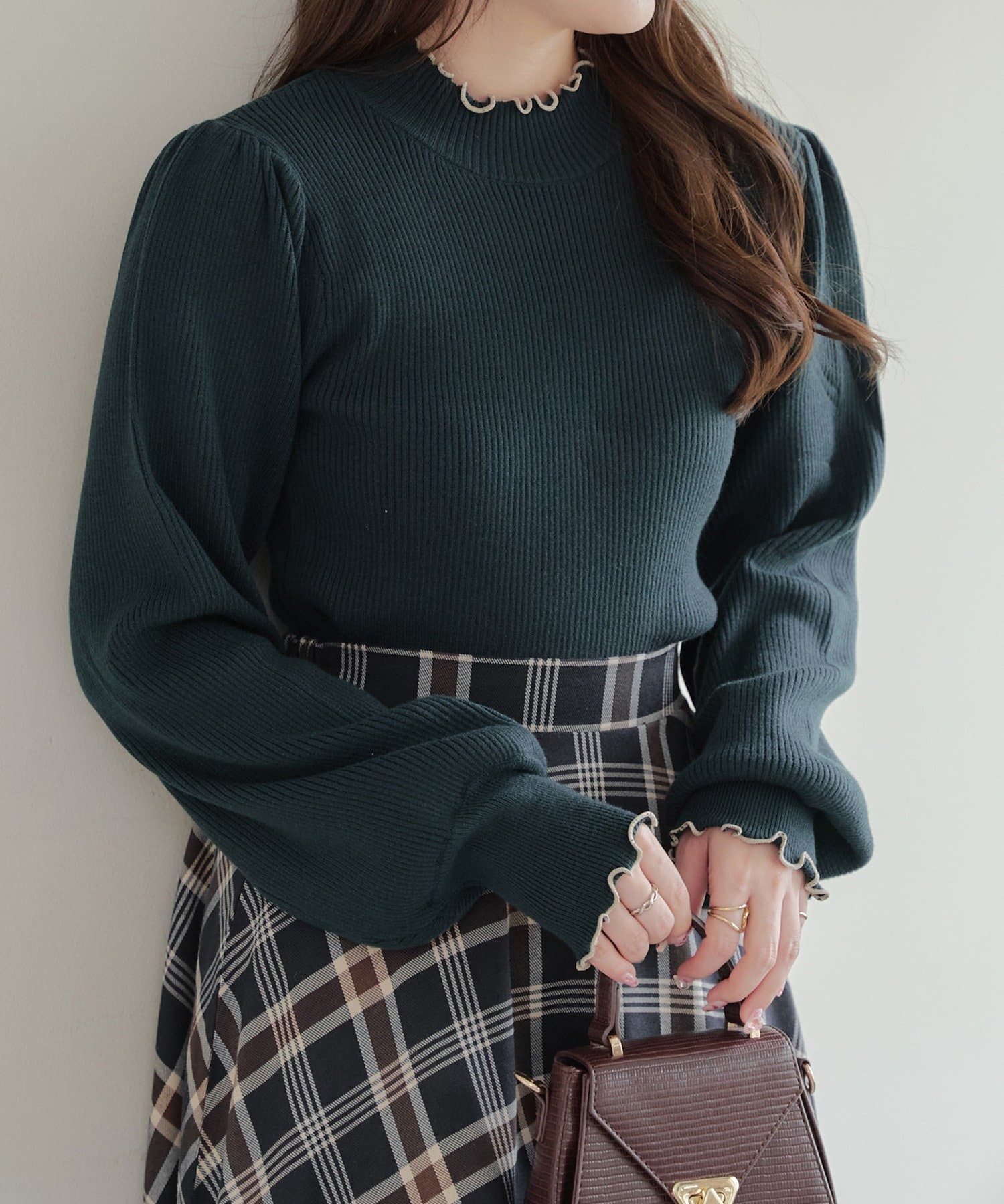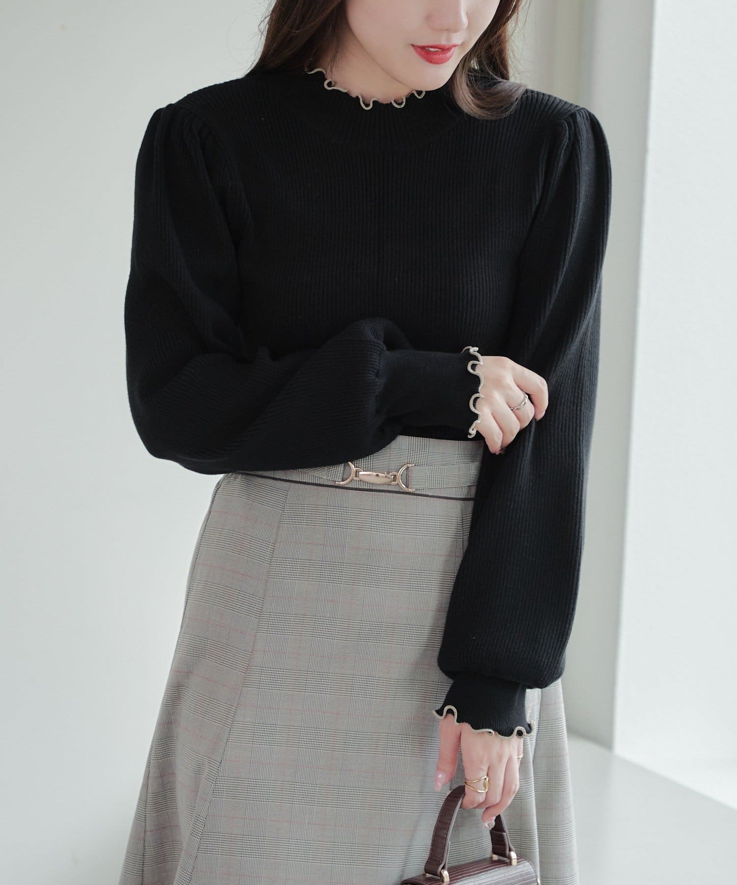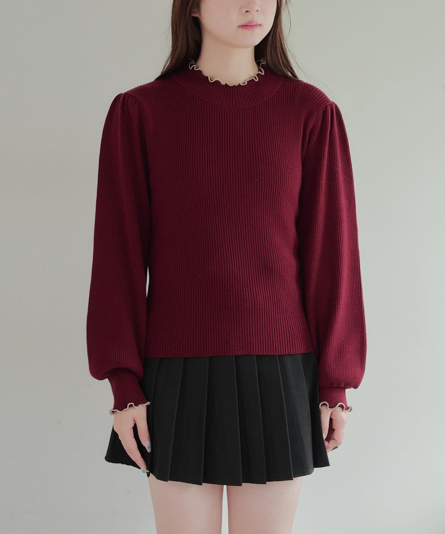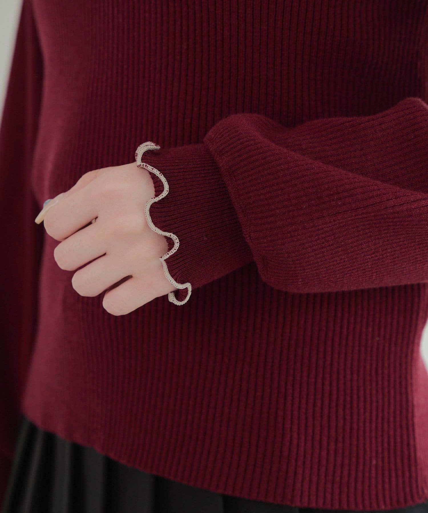 ・毎年人気の首元と袖口にメロウ加工が施された甘さのあるデザインニット。