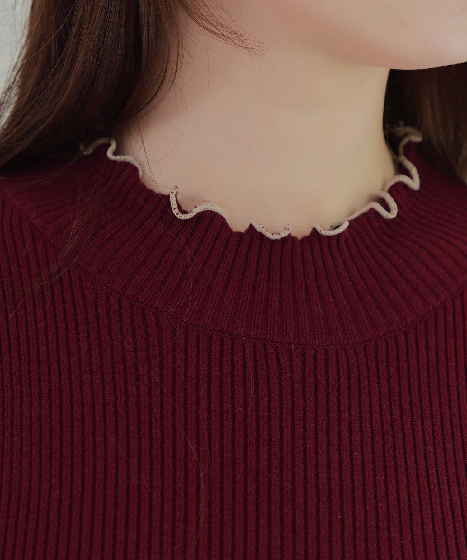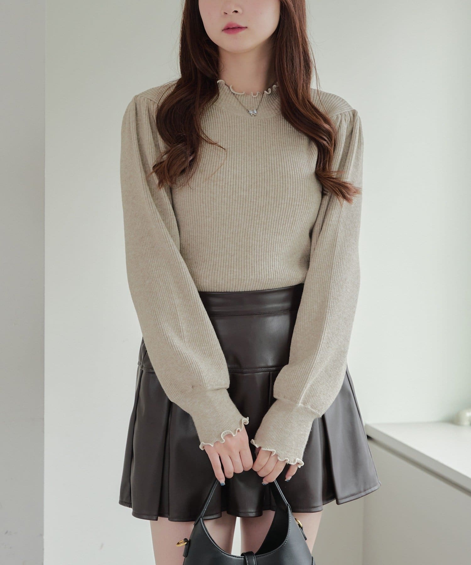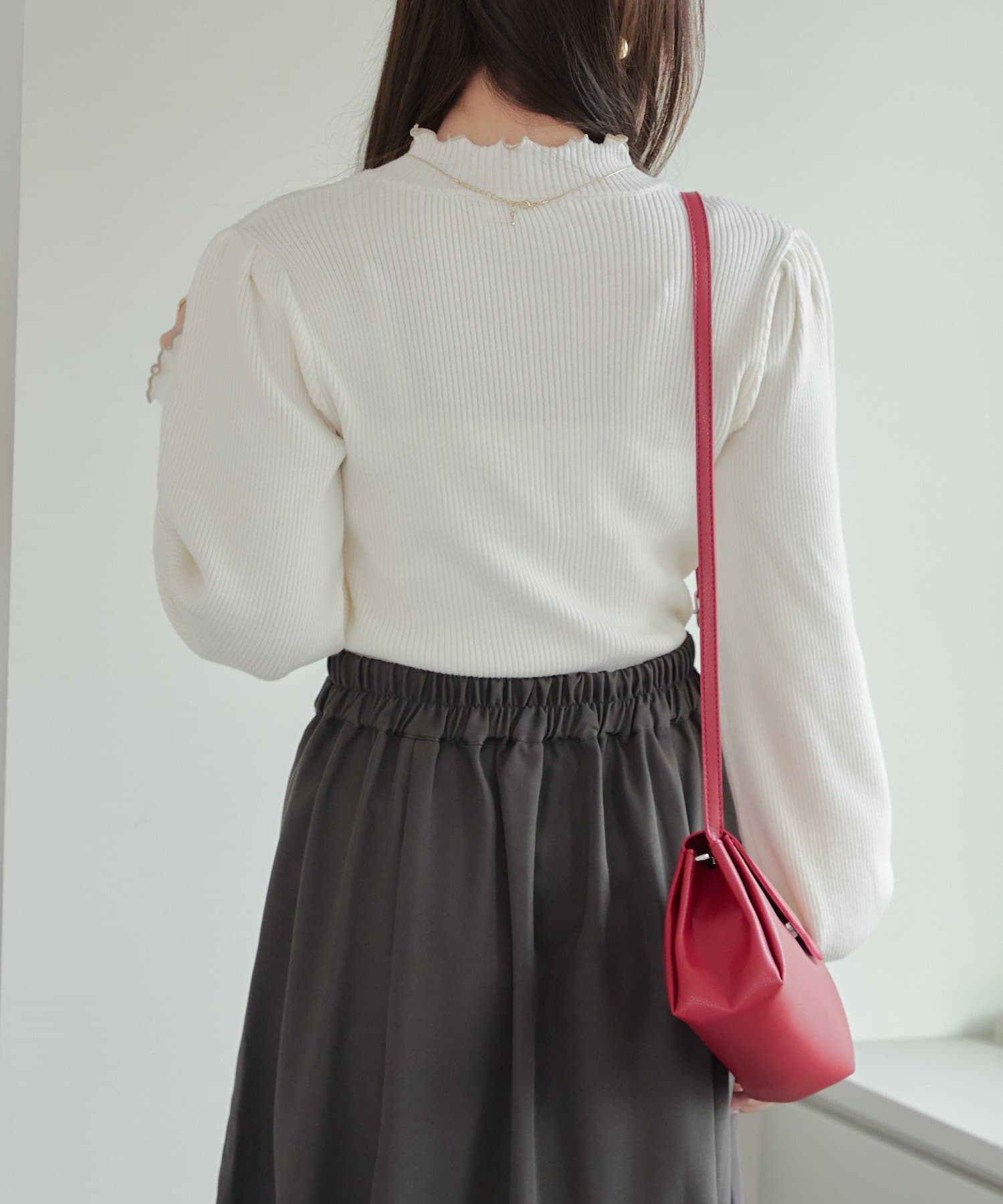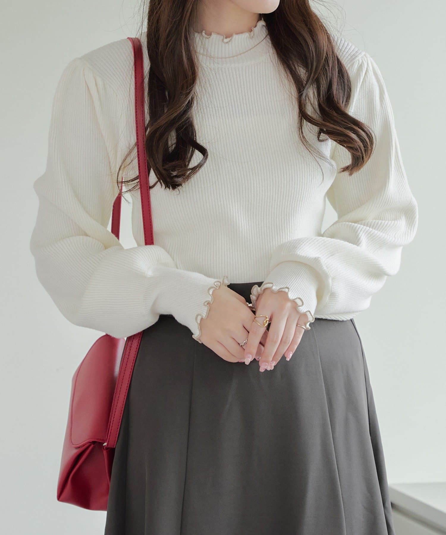 ・毎年人気の首元と袖口にメロウ加工が施された甘さのあるデザインニット。