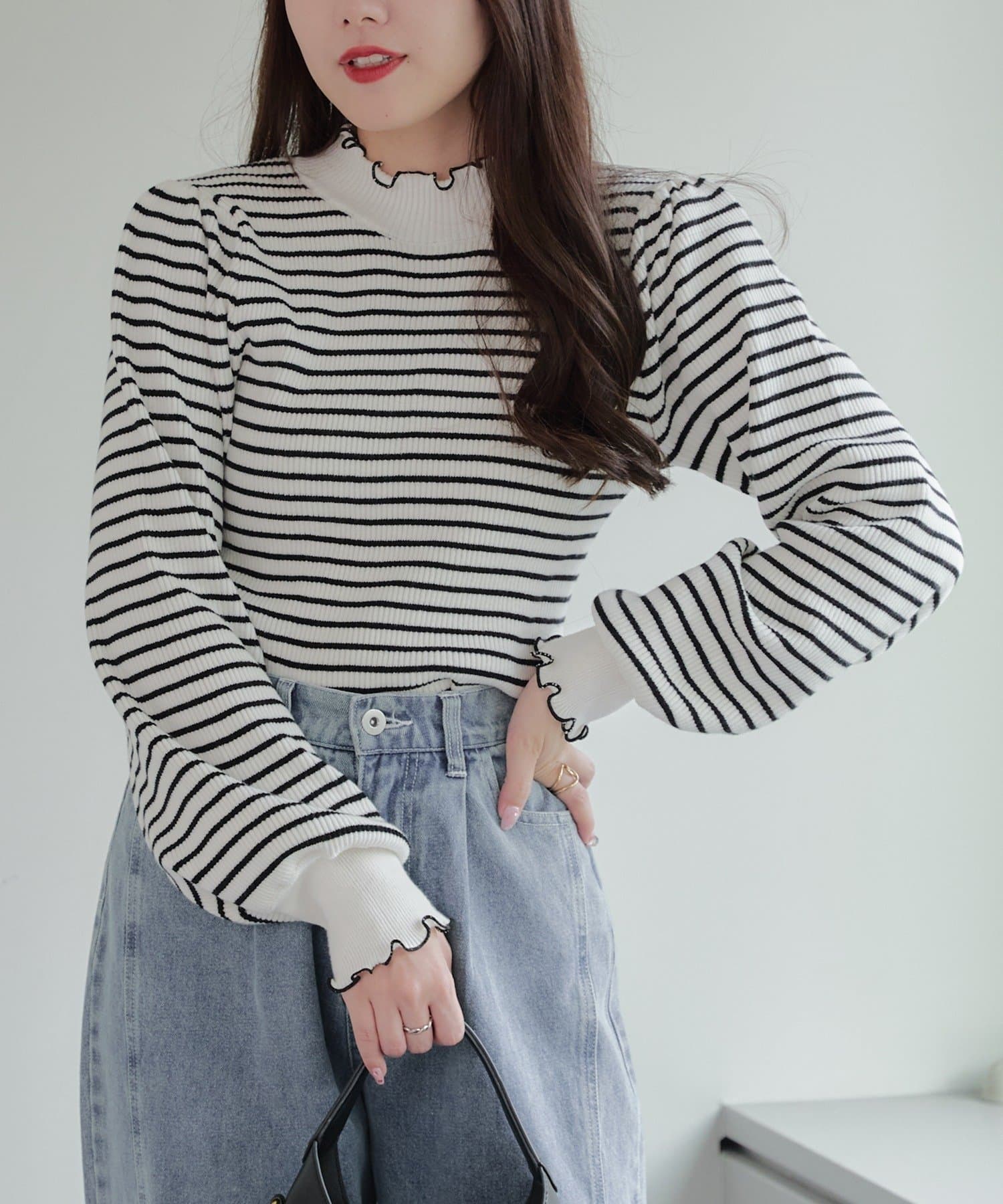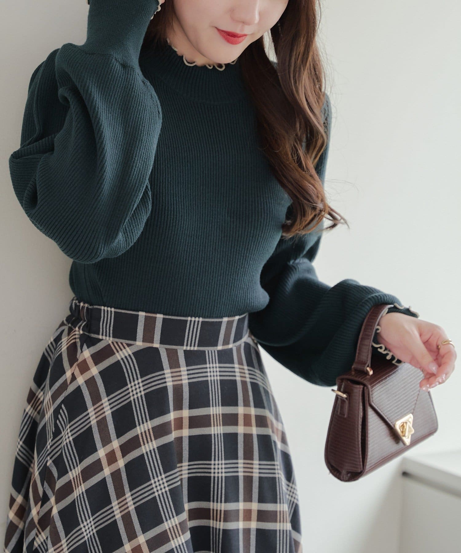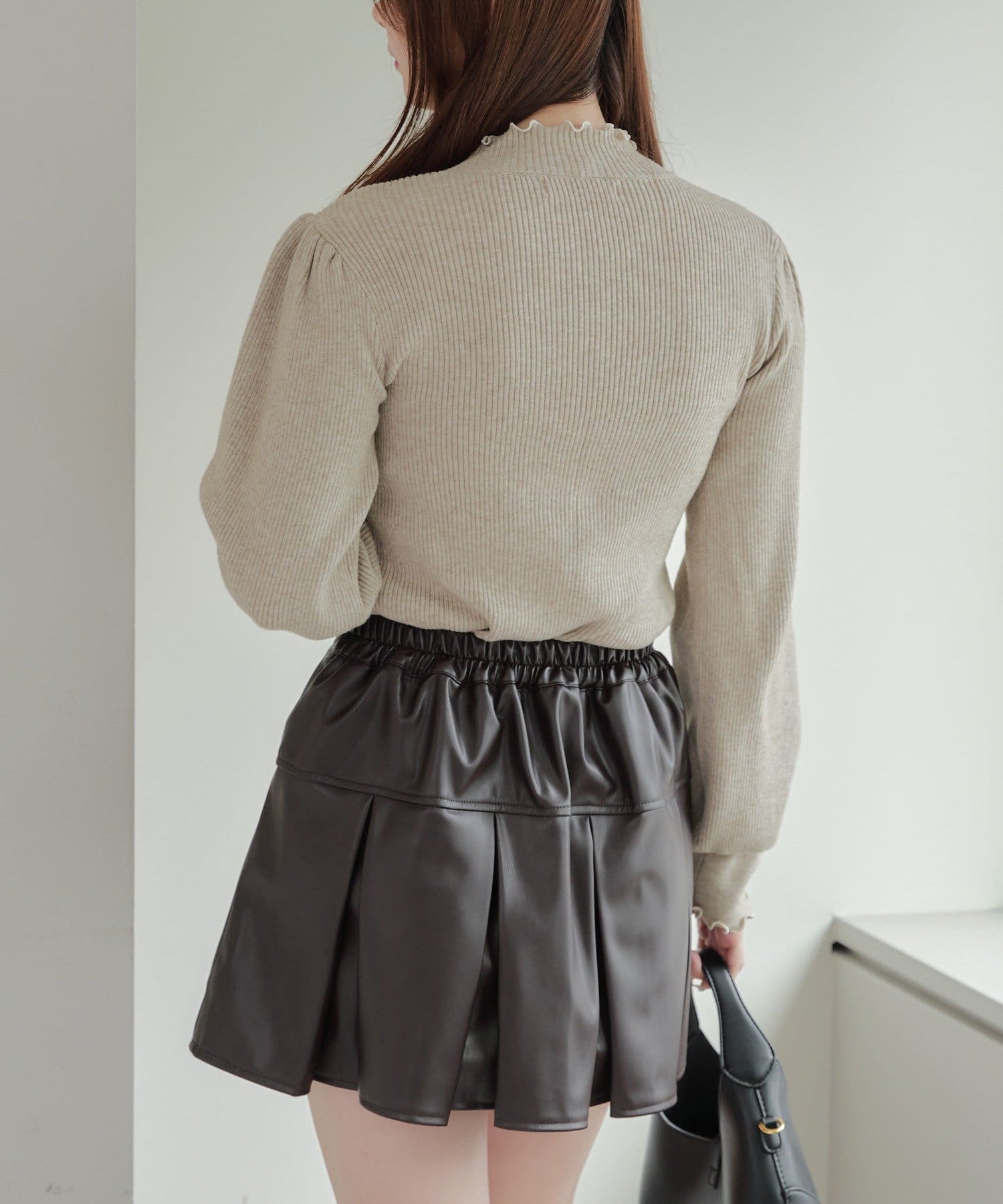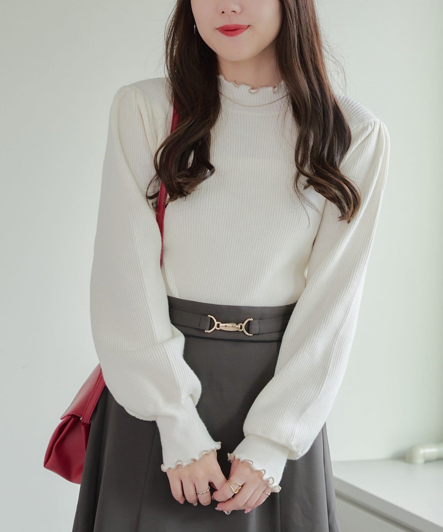 ・毎年人気の首元と袖口にメロウ加工が施された甘さのあるデザインニット。