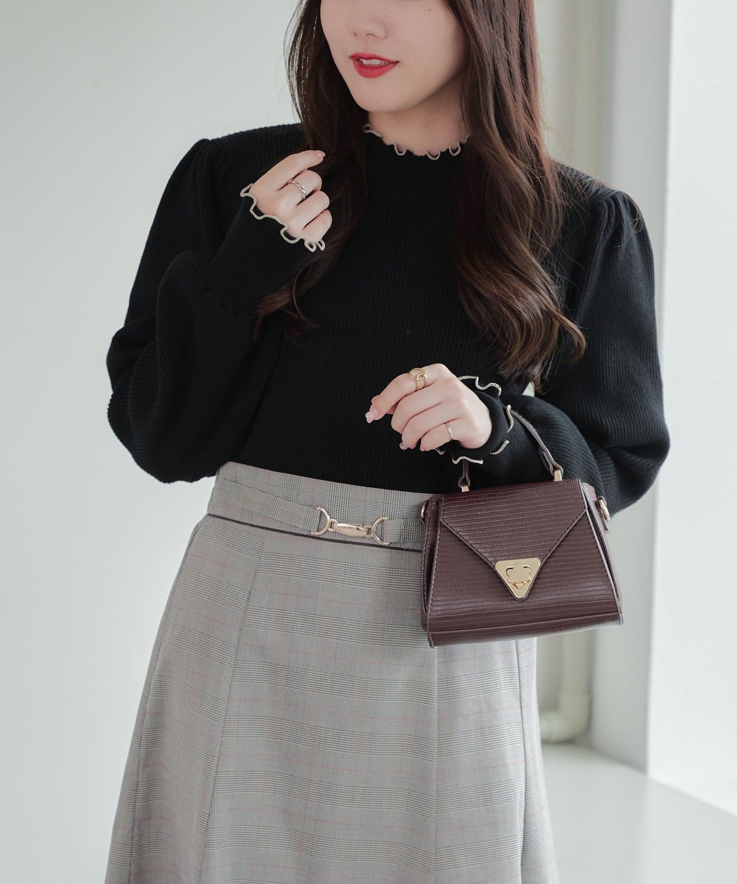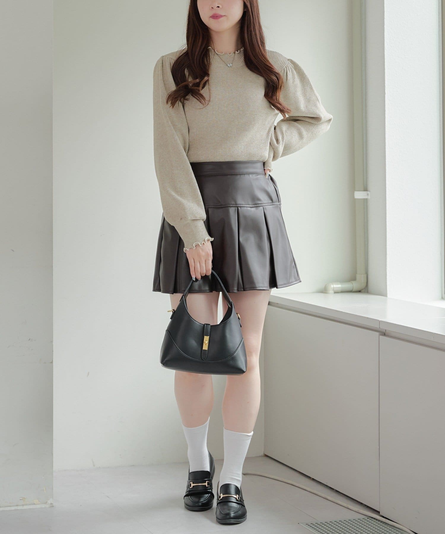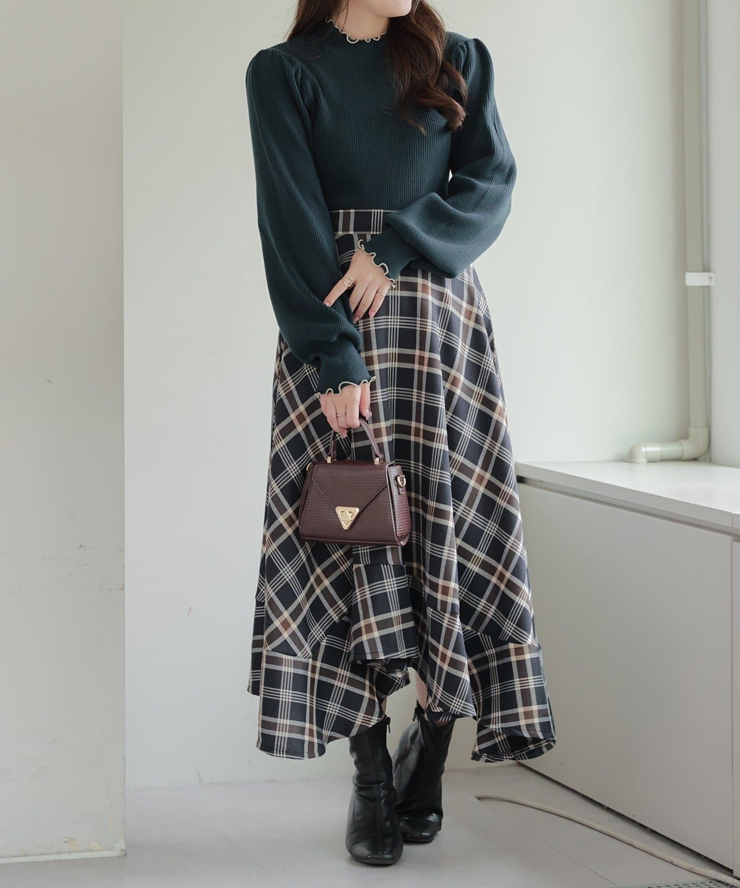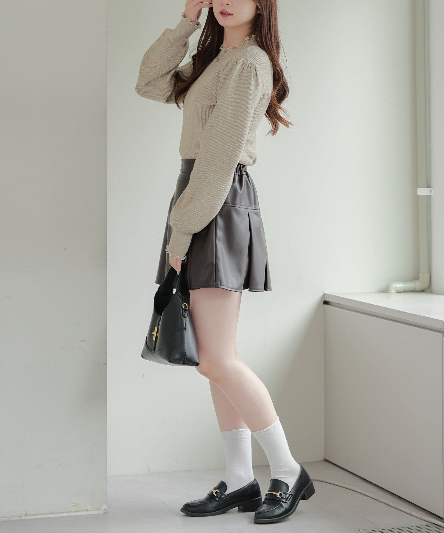 ・毎年人気の首元と袖口にメロウ加工が施された甘さのあるデザインニット。