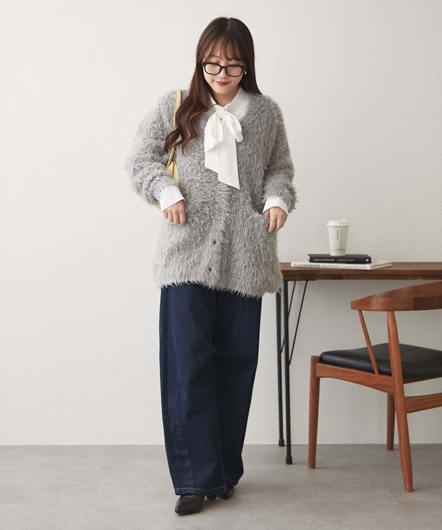 ・ボウタイブラウスを中に仕込んでレイヤードスタイルに。