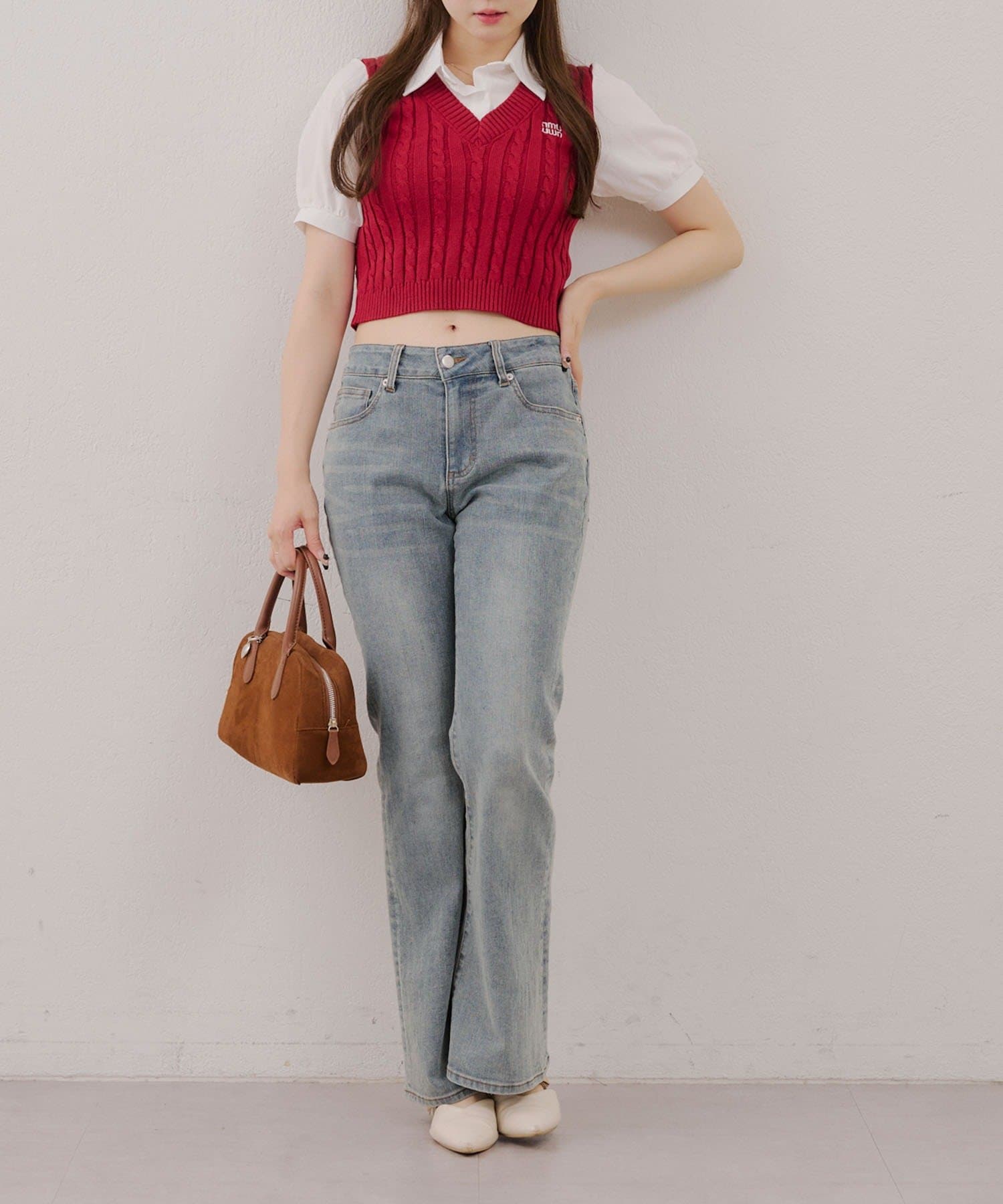 ・デニムパンツを履いてカジュアルな着こなしも可愛い♪