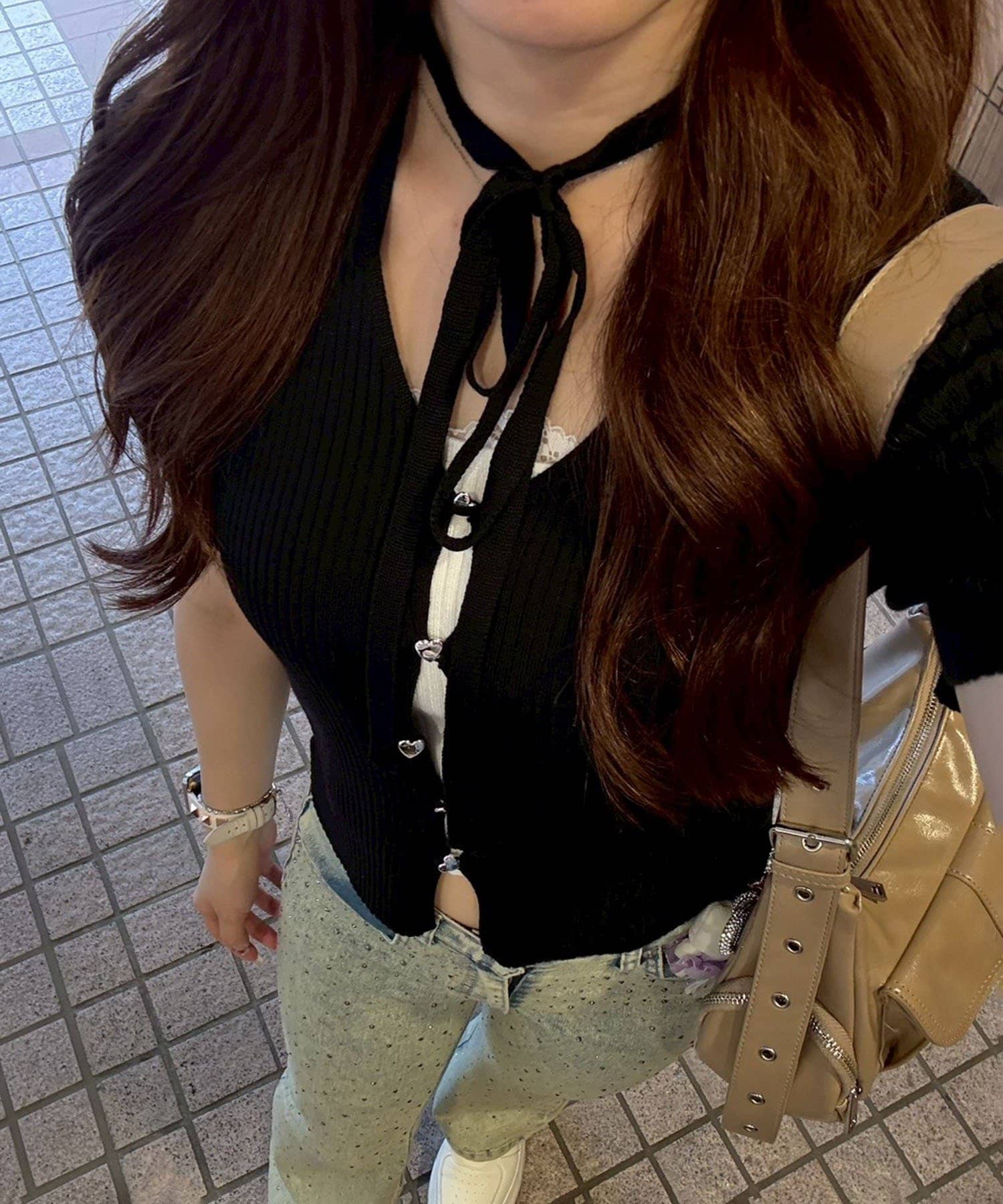 ・ホルターネックで顔周りが華やかに見えるトップス!