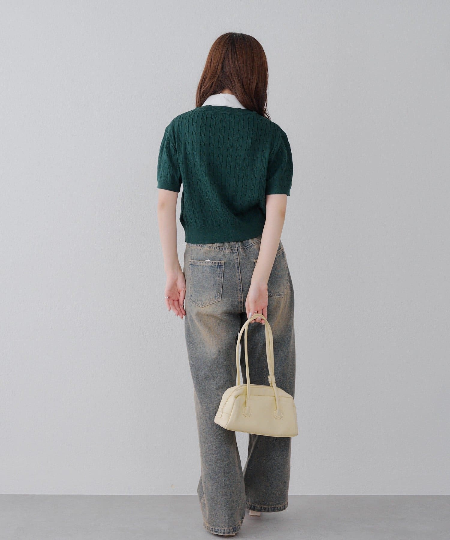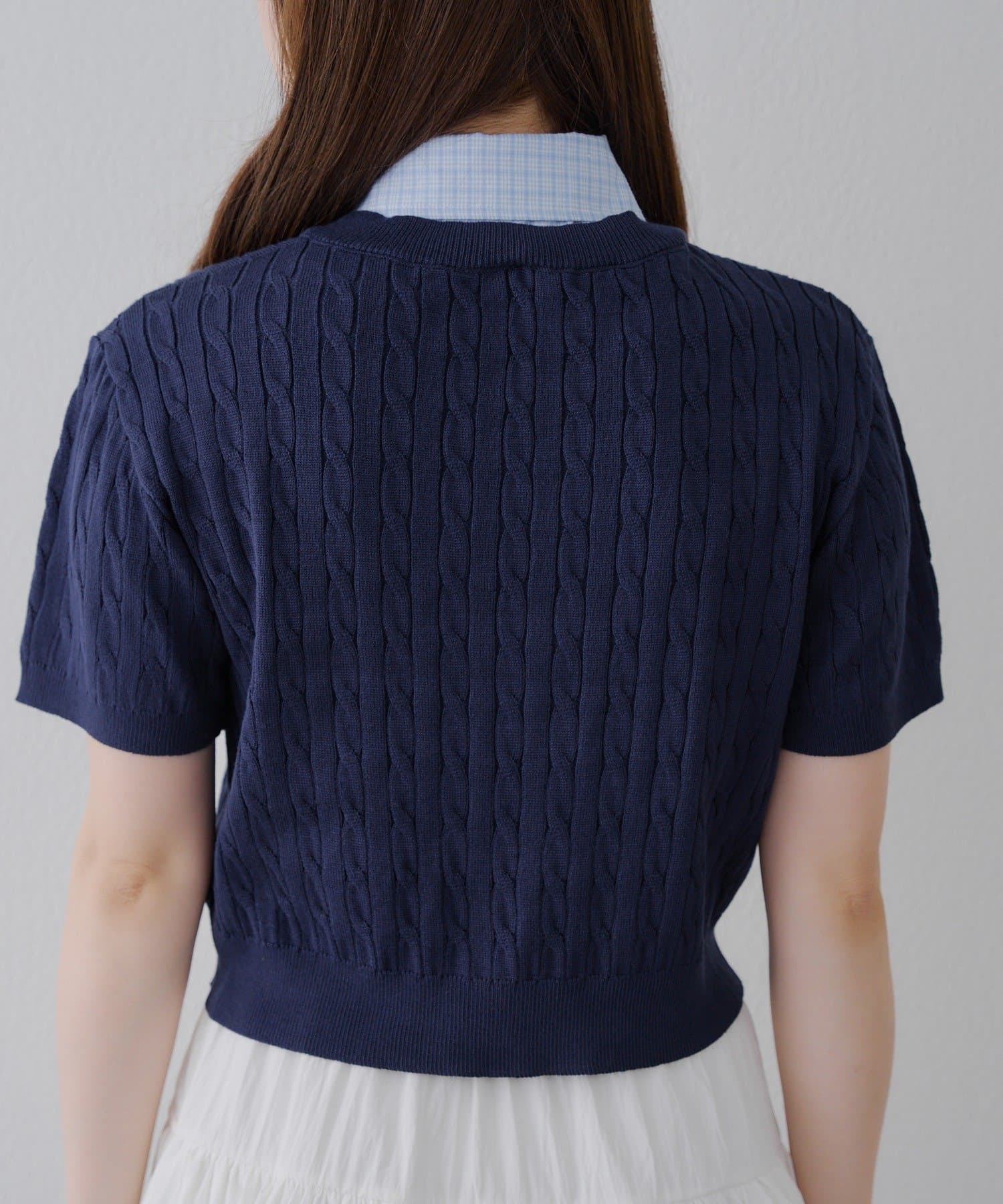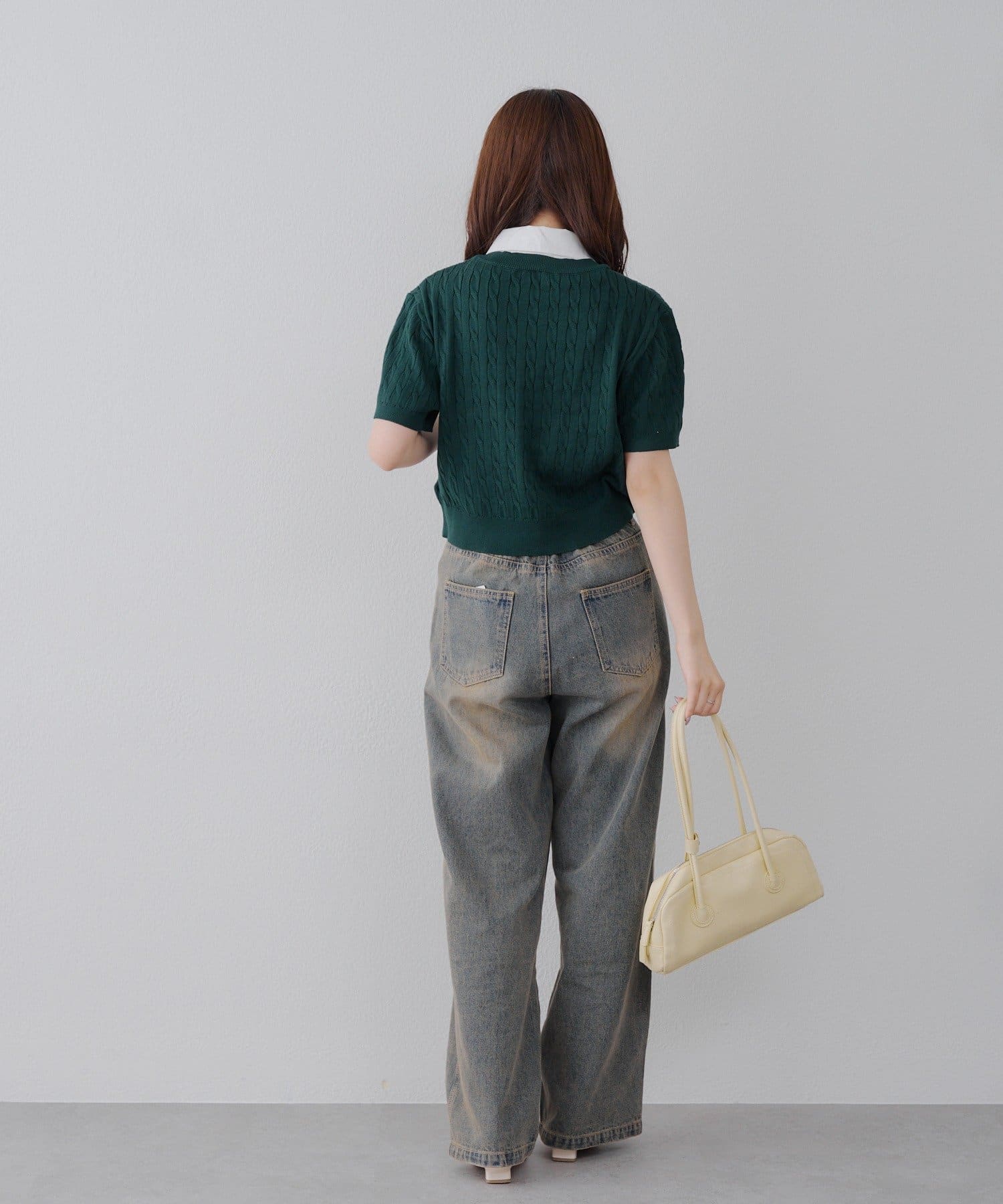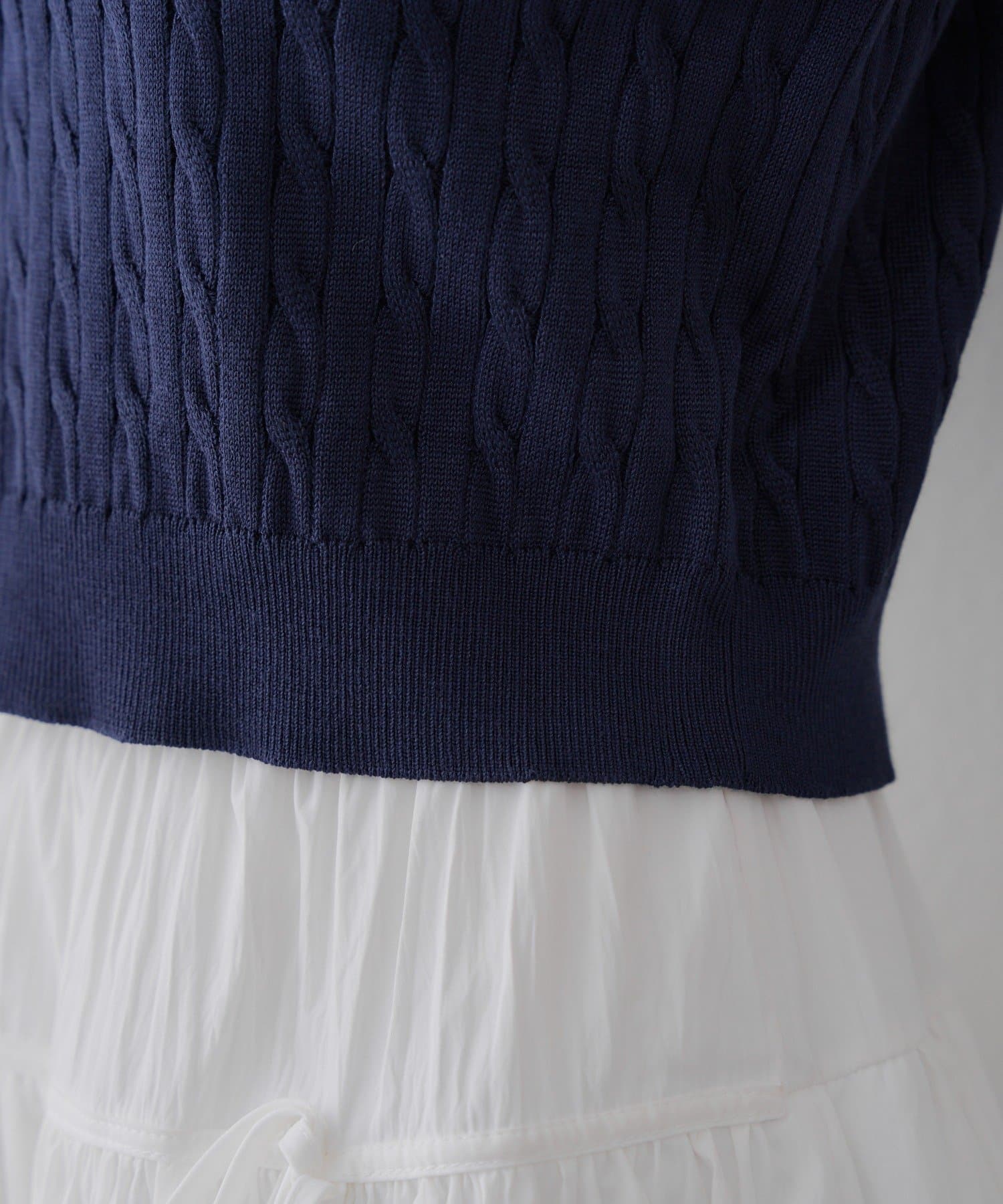 ・セットの衿の付け替えでさらに着こなしの幅が広がるケーブルニット