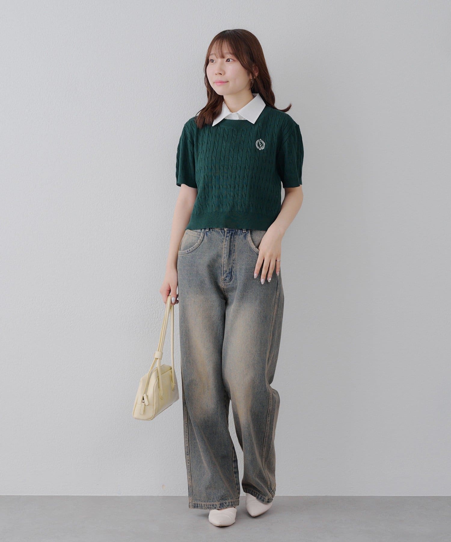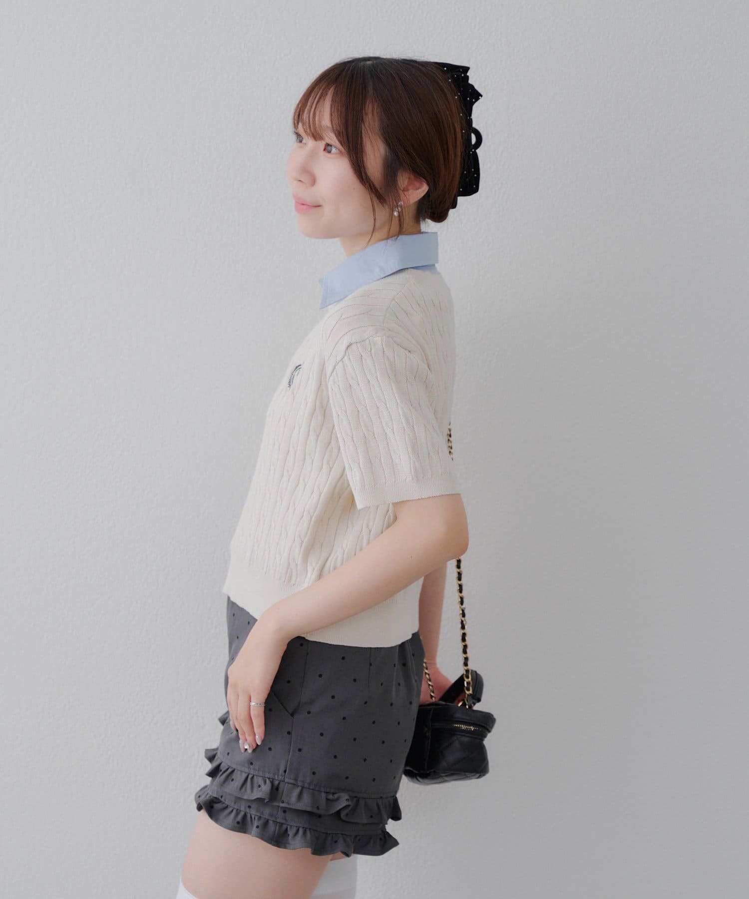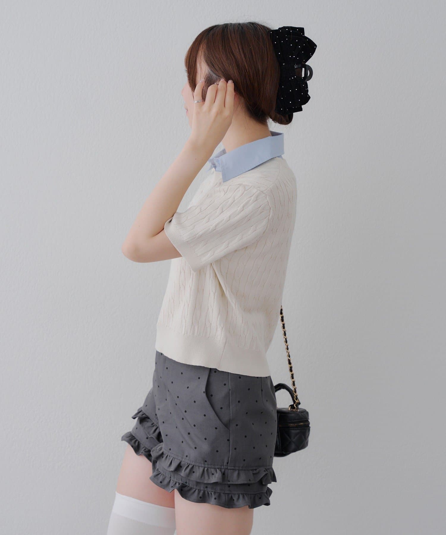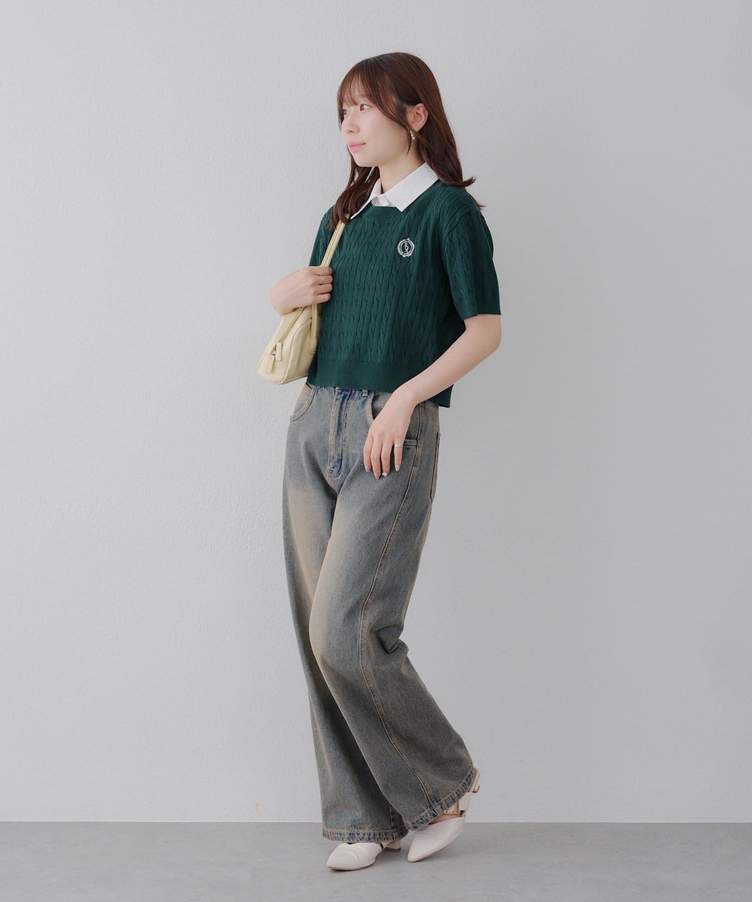 ・セットの衿の付け替えでさらに着こなしの幅が広がるケーブルニット