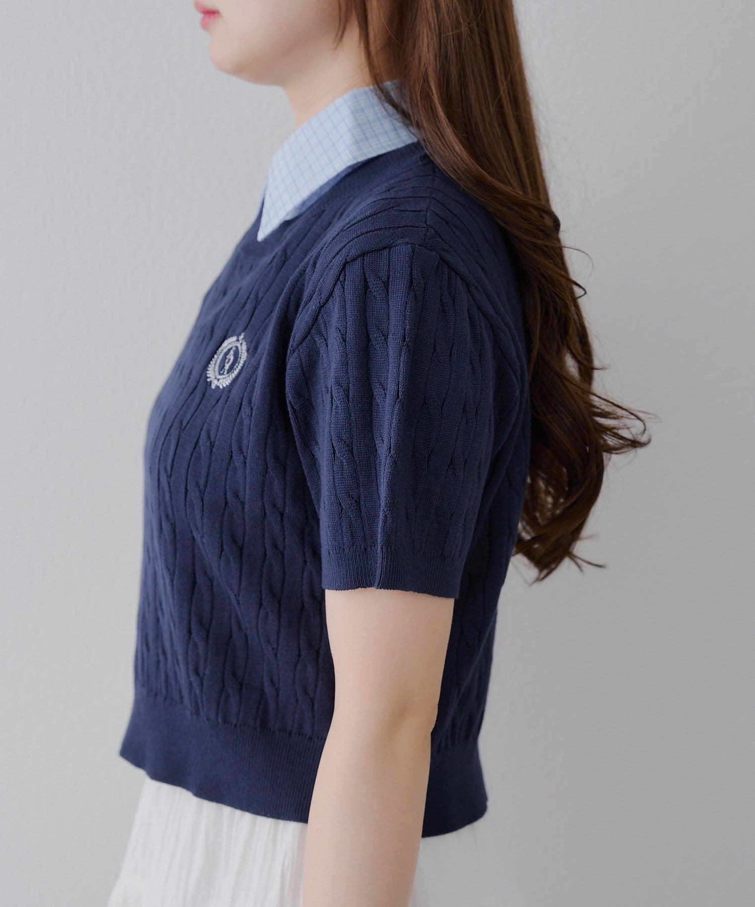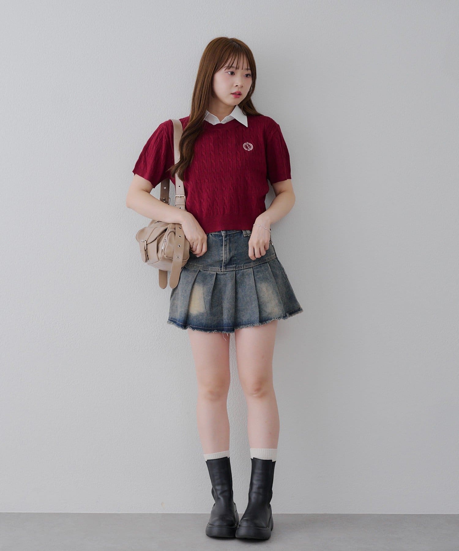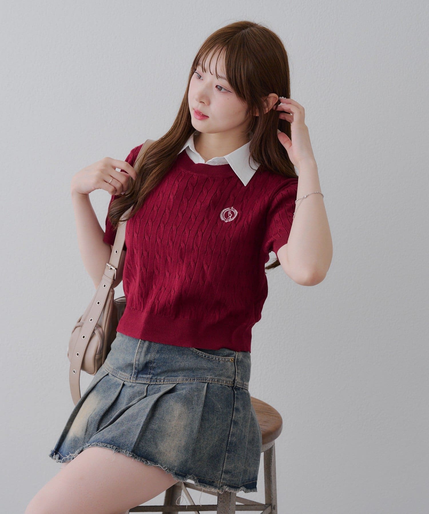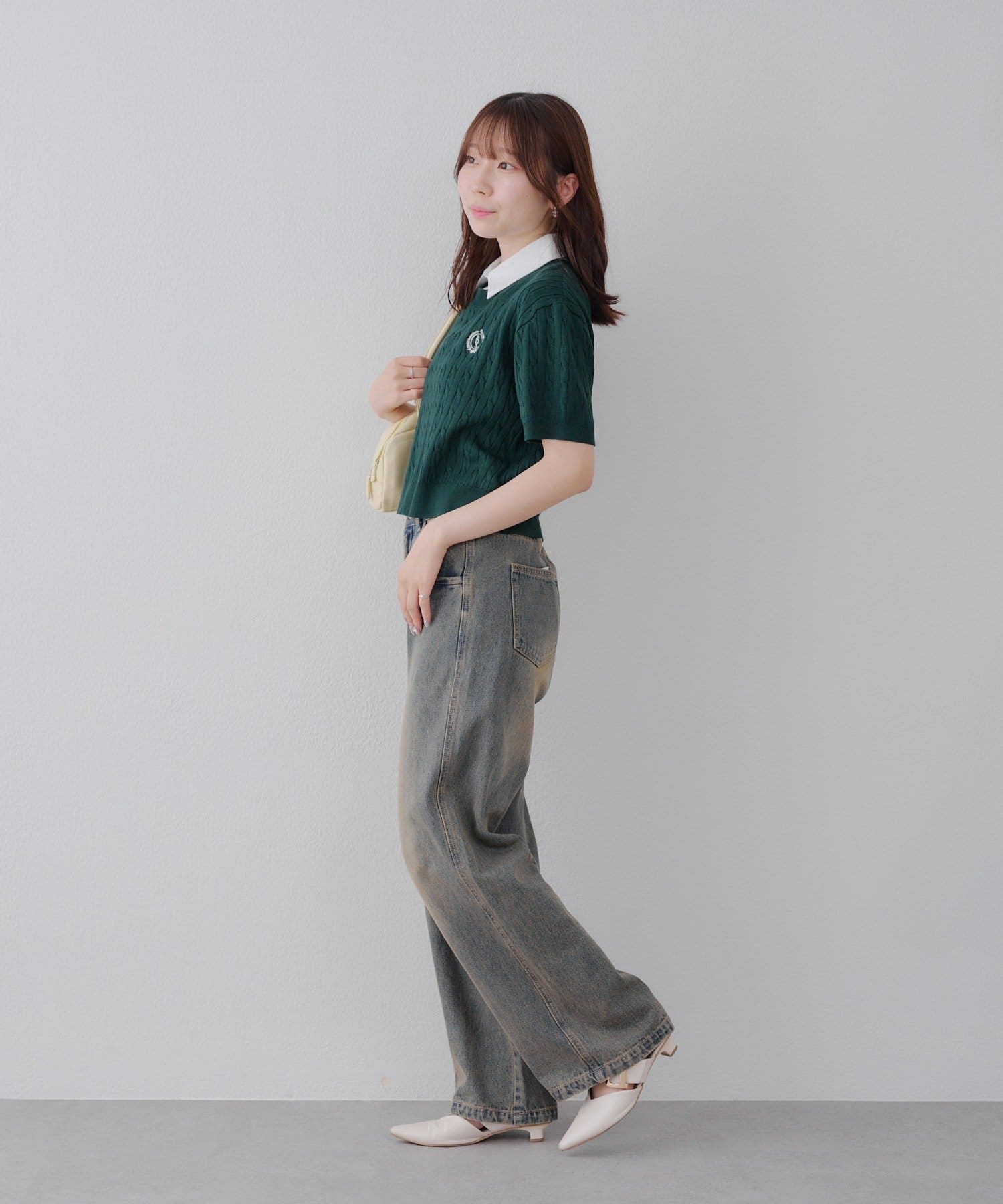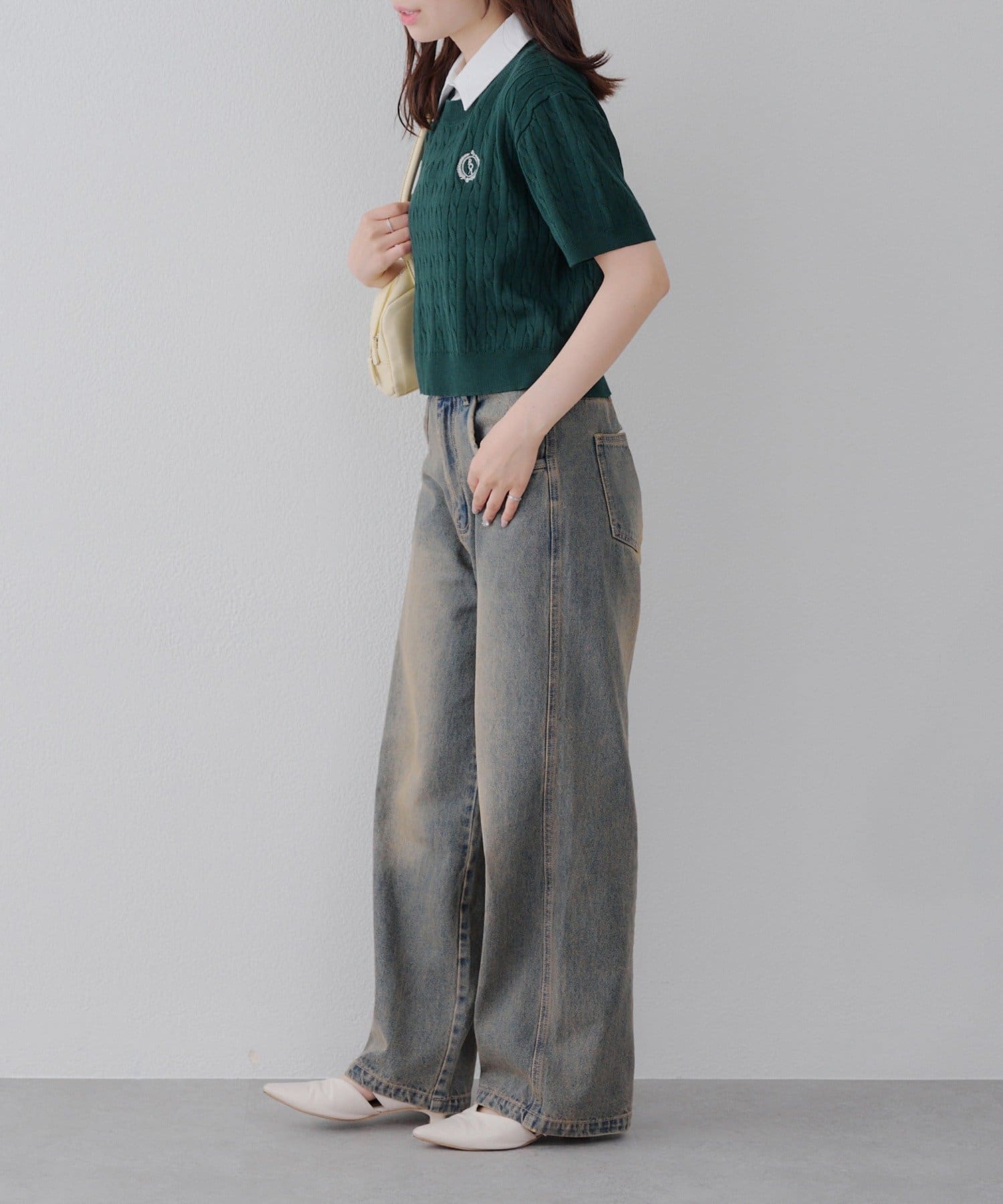 ・セットの衿の付け替えでさらに着こなしの幅が広がるケーブルニット