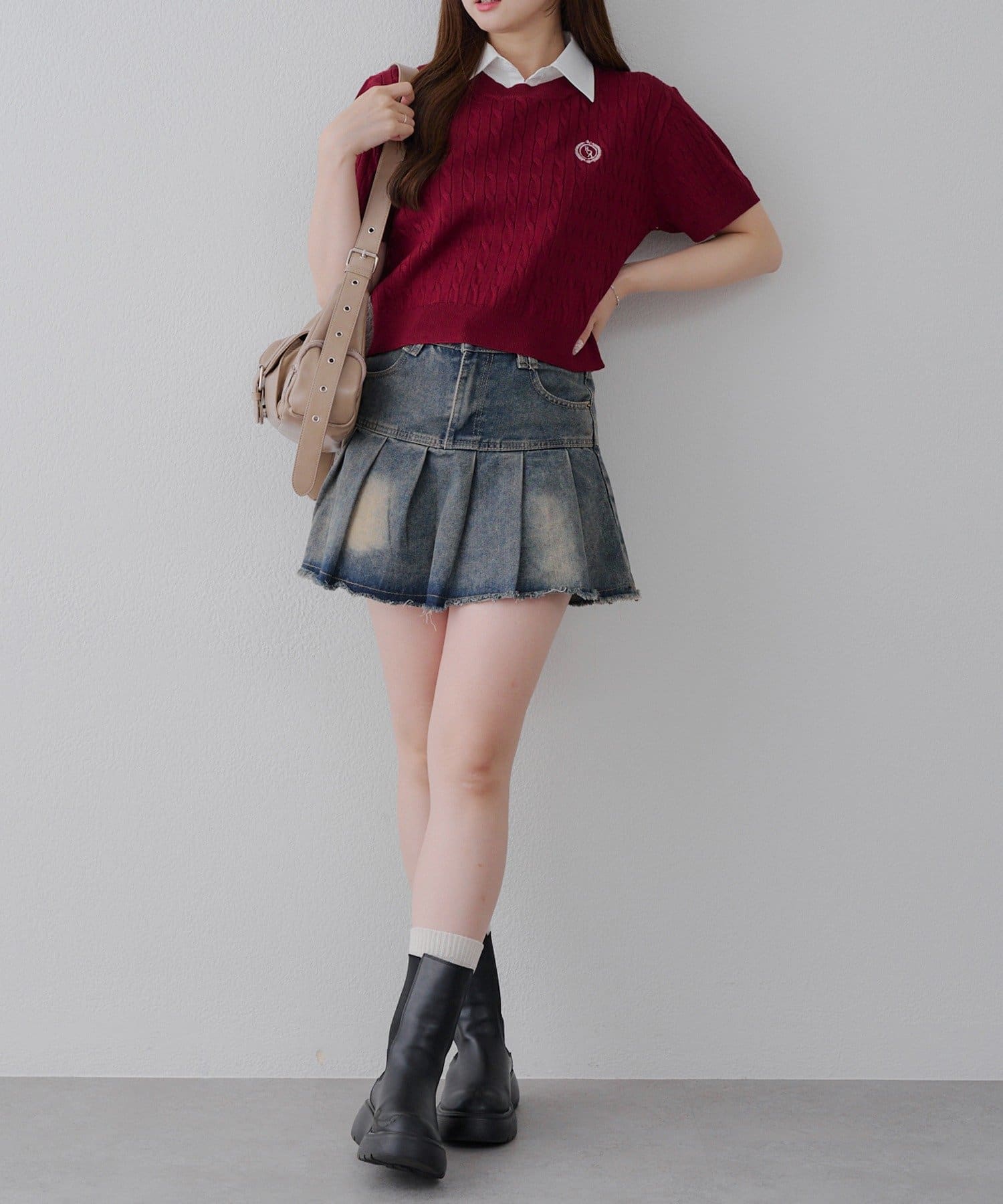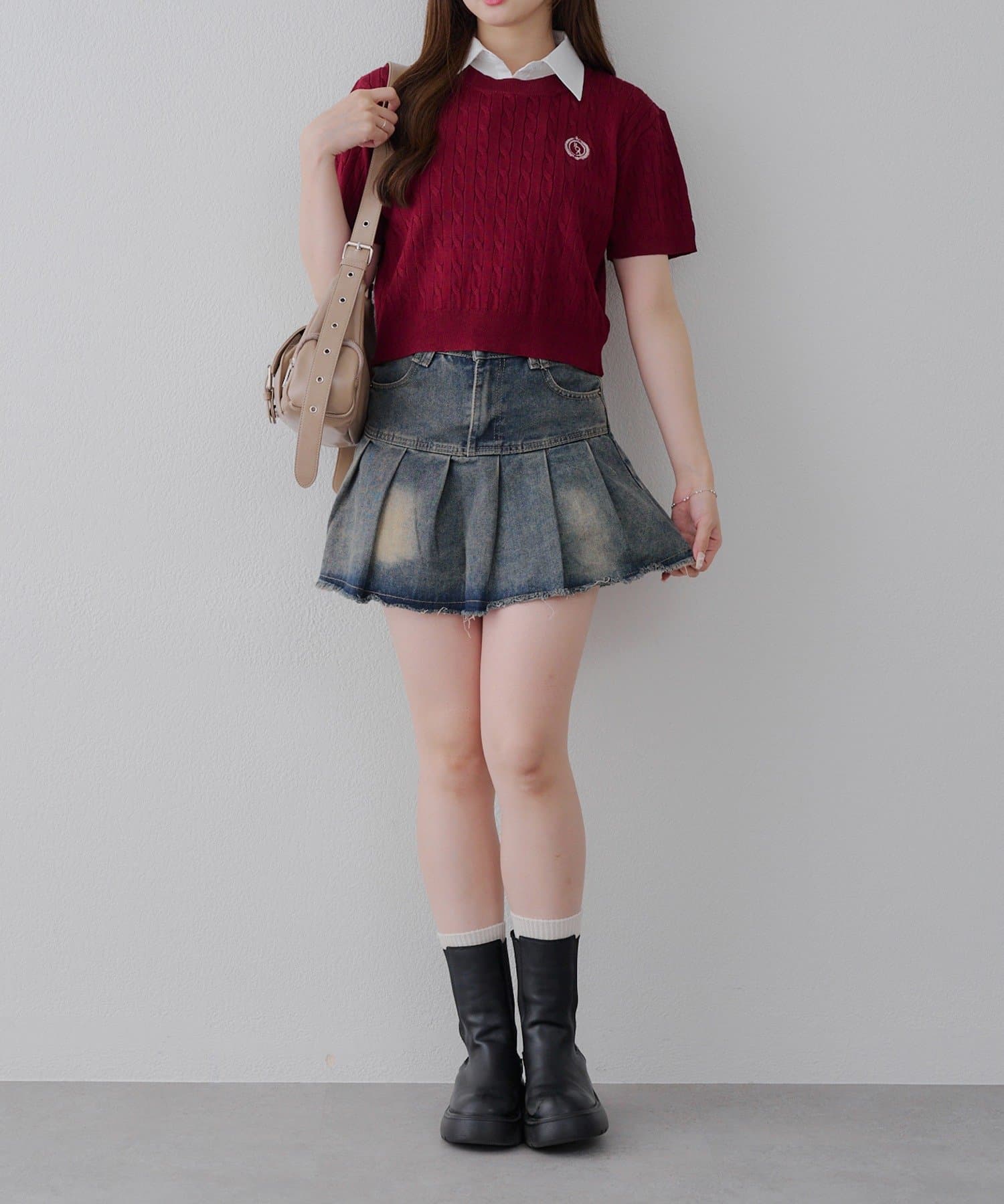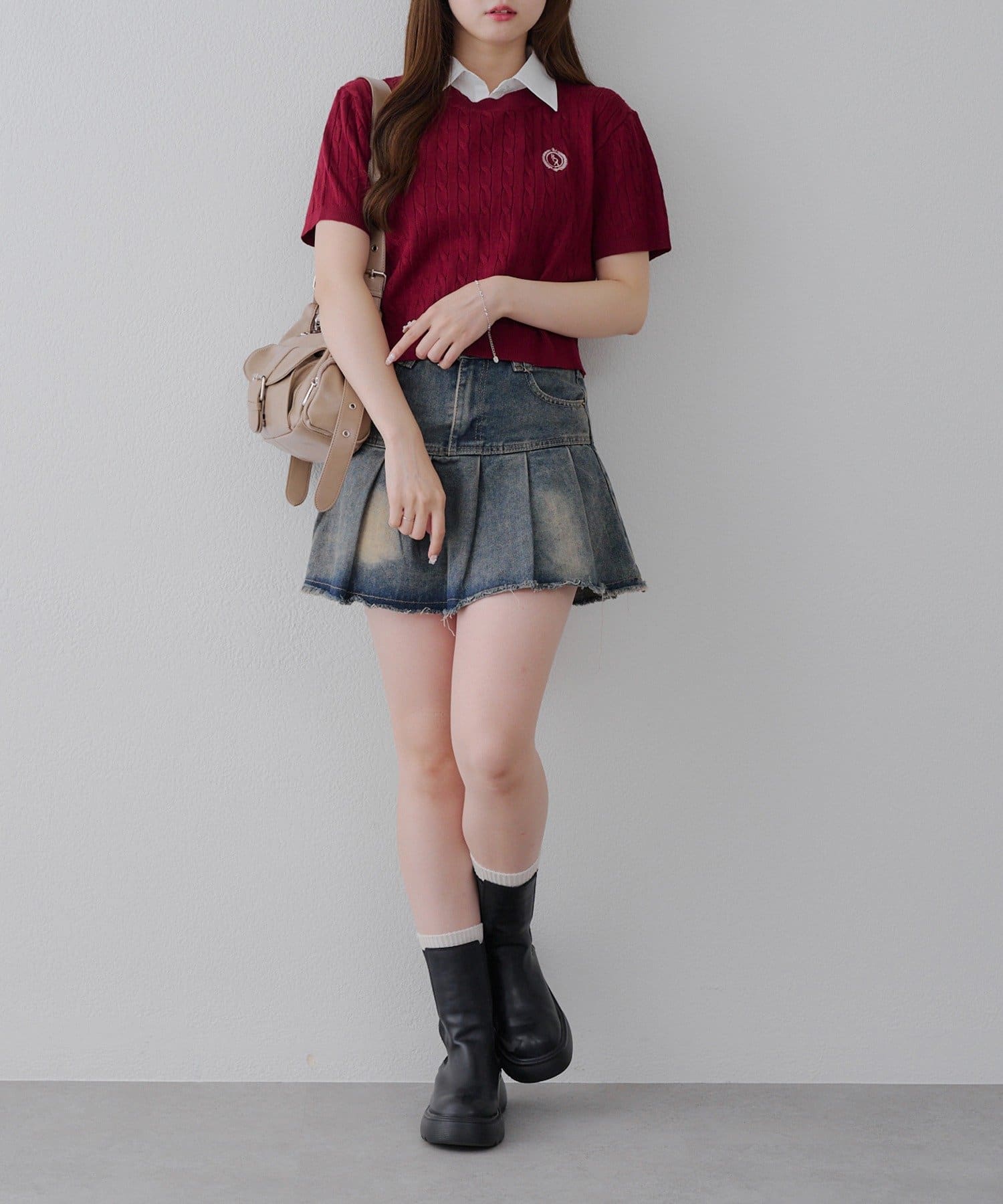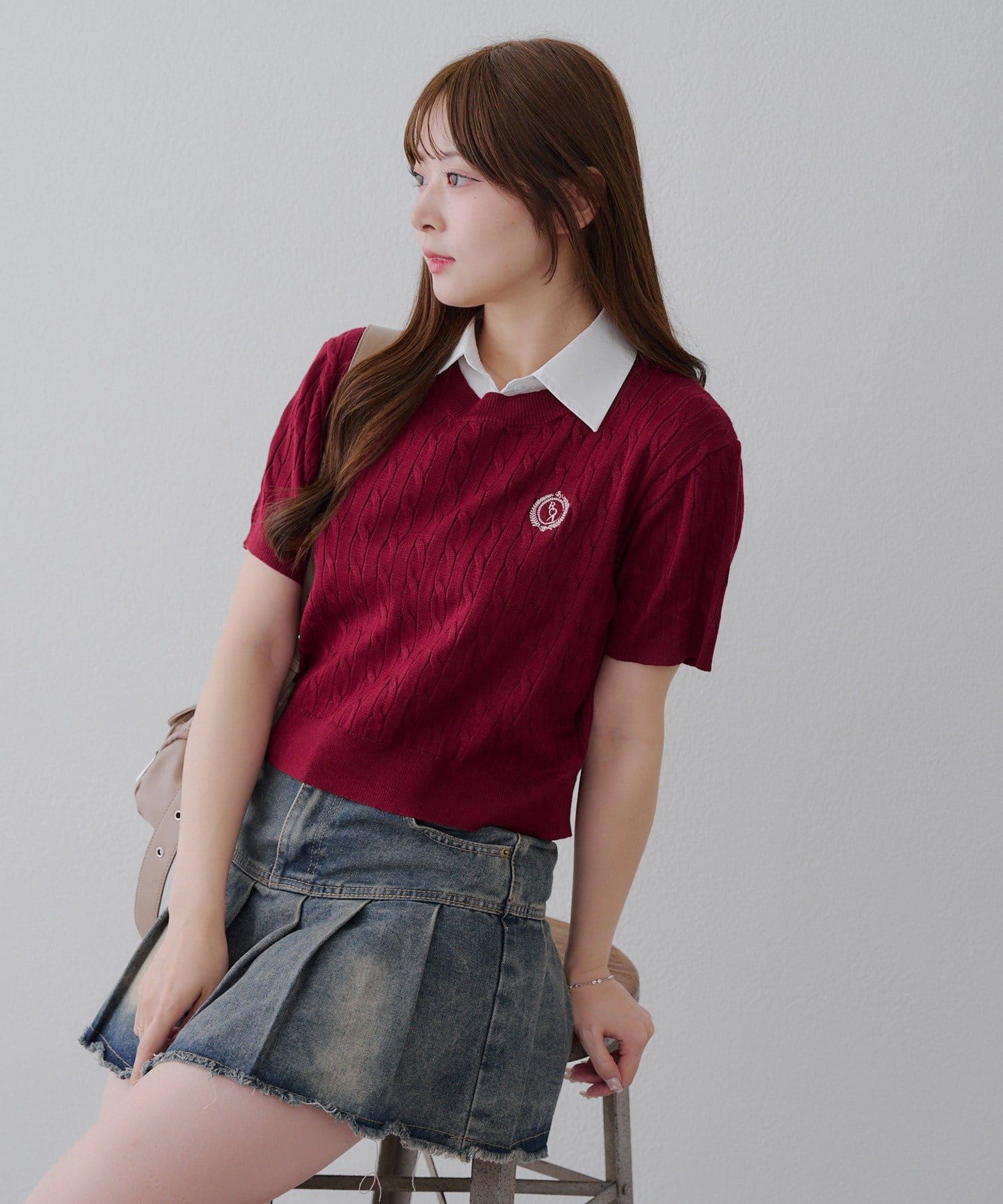 ・セットの衿の付け替えでさらに着こなしの幅が広がるケーブルニット