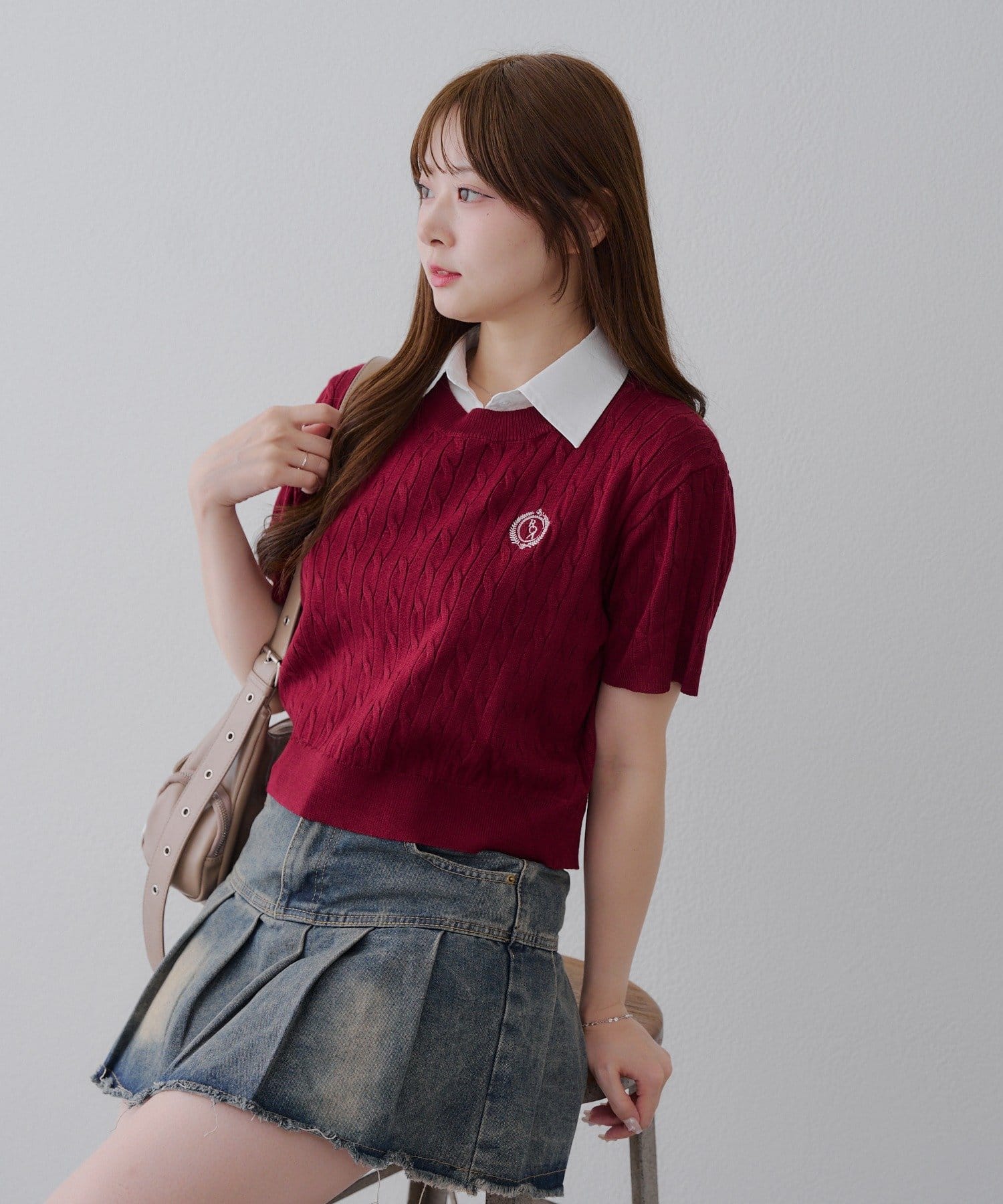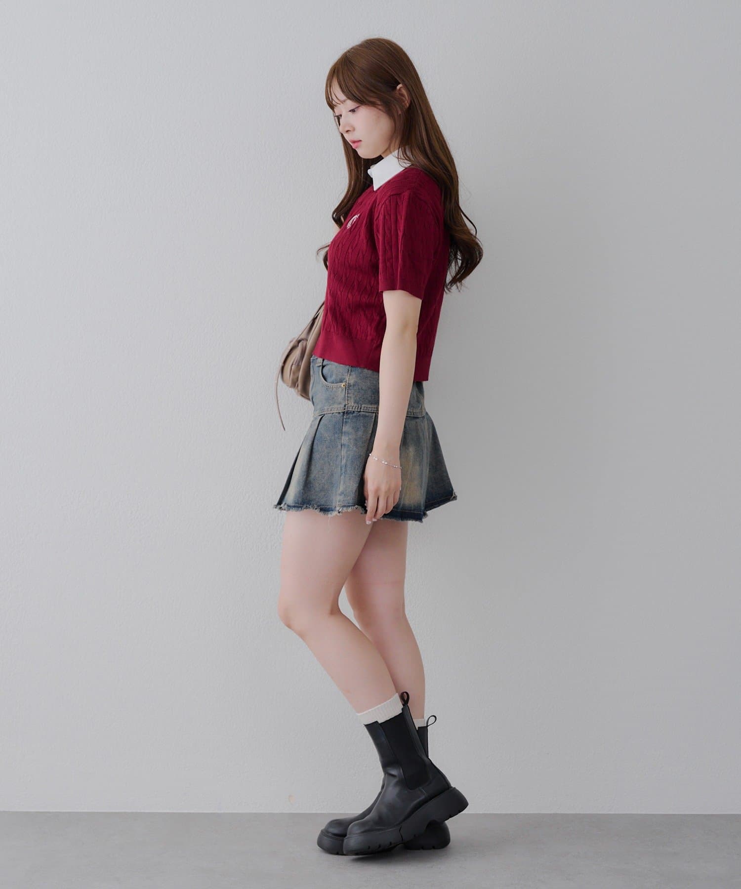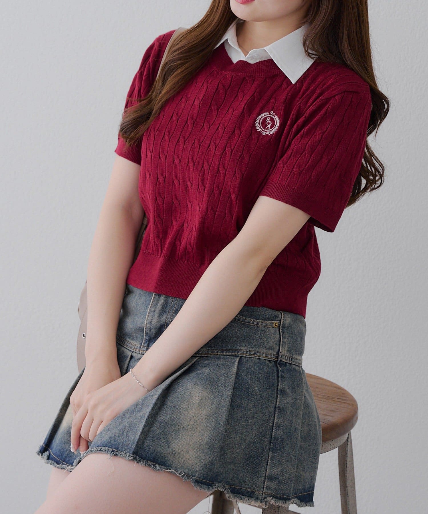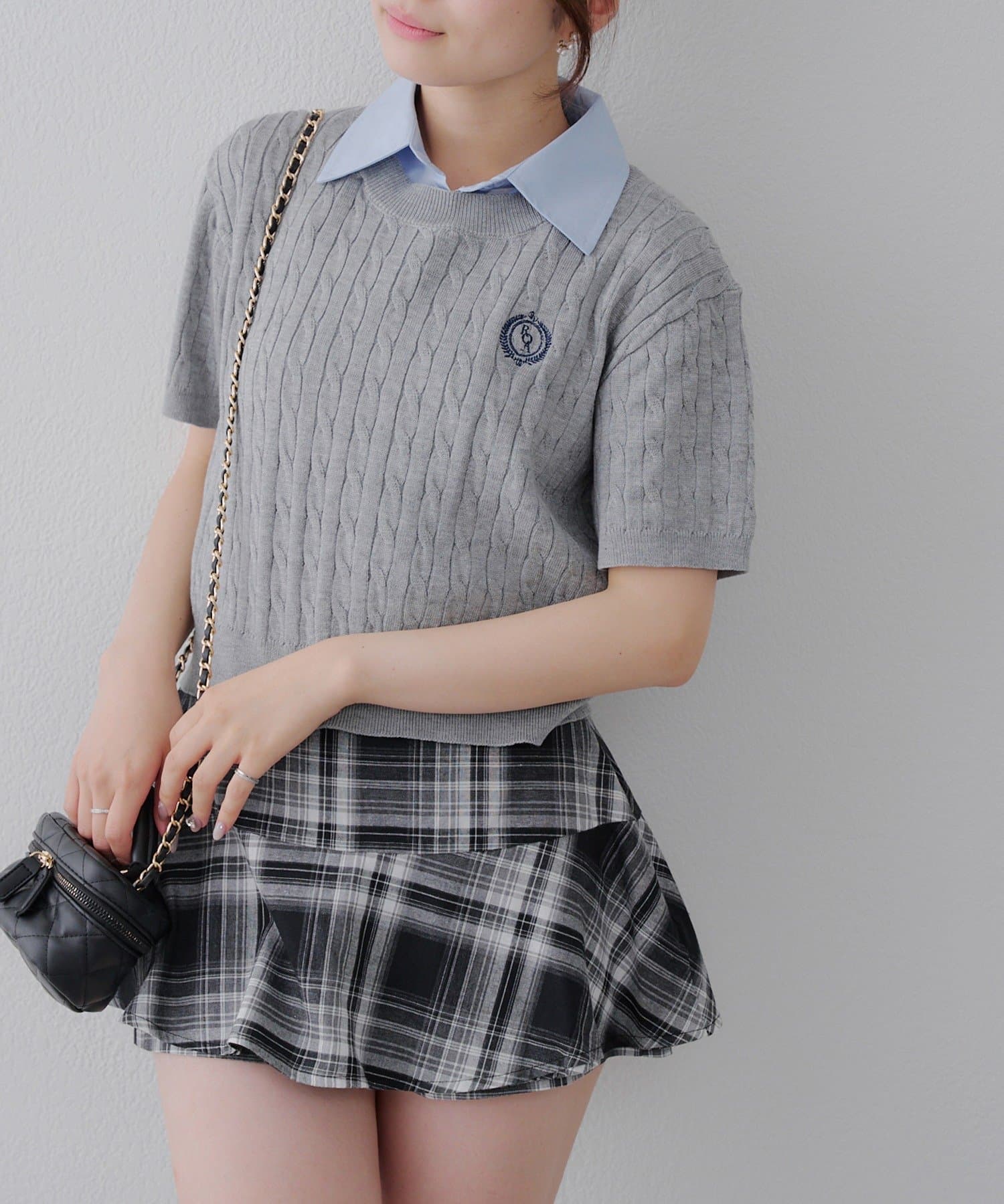 ・セットの衿の付け替えでさらに着こなしの幅が広がるケーブルニット