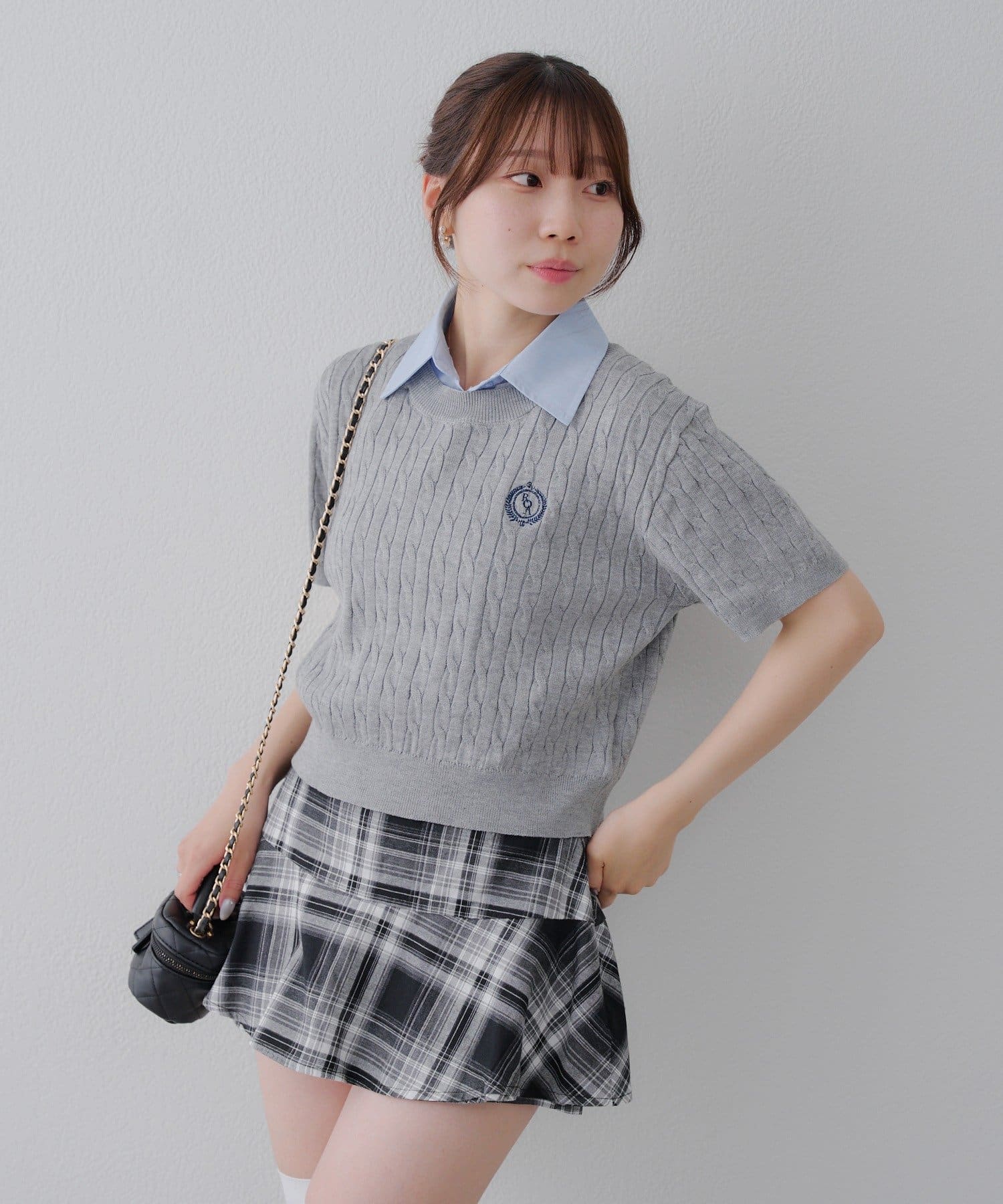 品番 6052050360e 素材 【ニット本体部分】レーヨン69% ポリエステル31% 【チェック衿】ポリエステル80% レーヨン20%