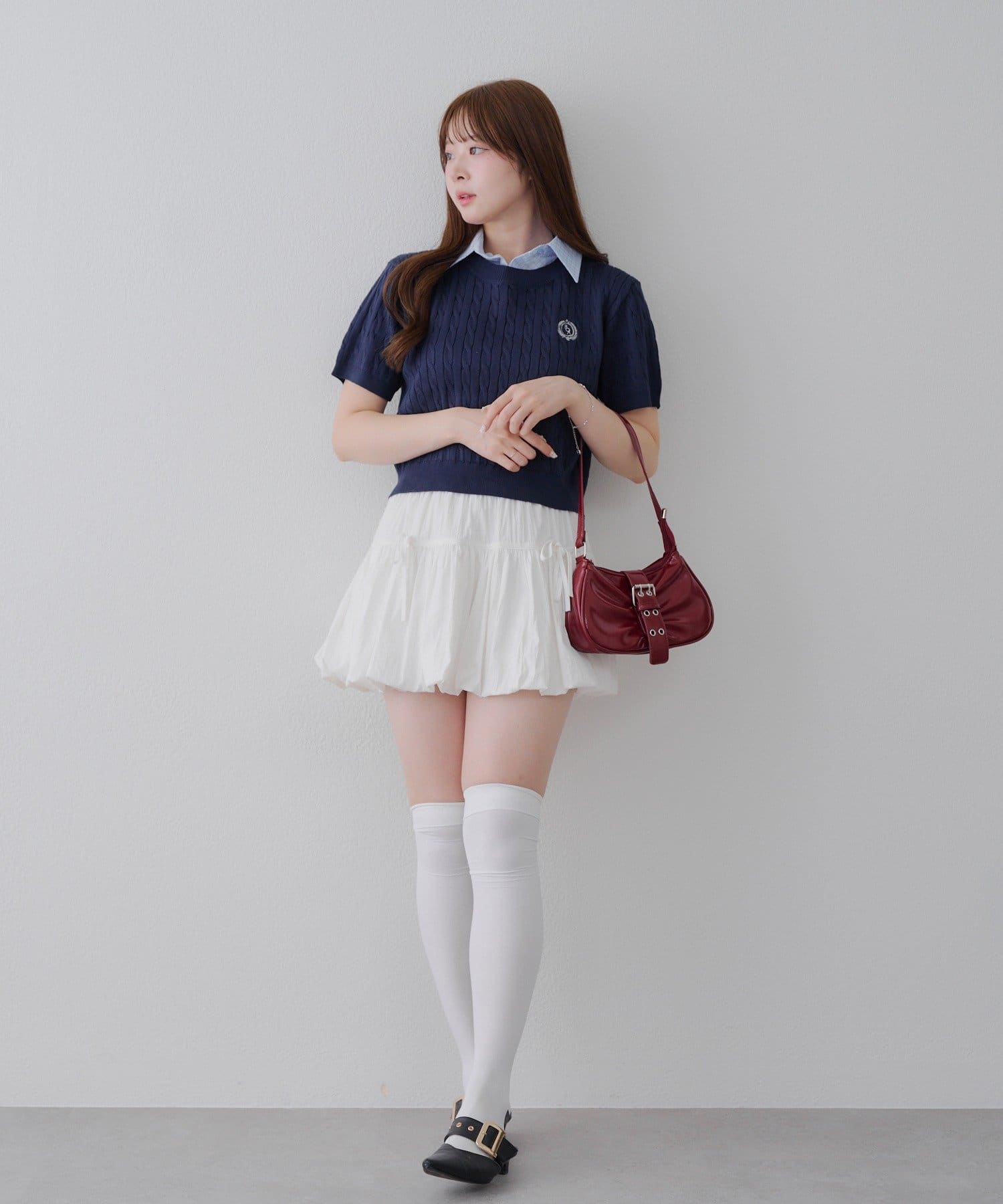 ・ミニ丈のボトム合わせでガーリーな着こなしがオススメ