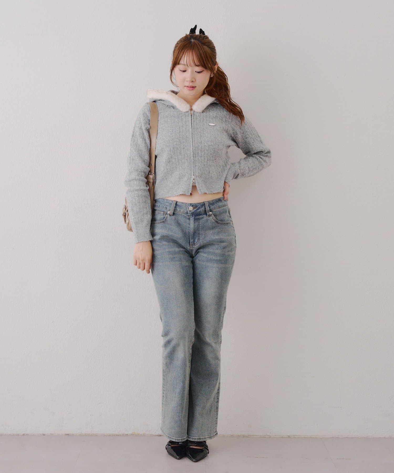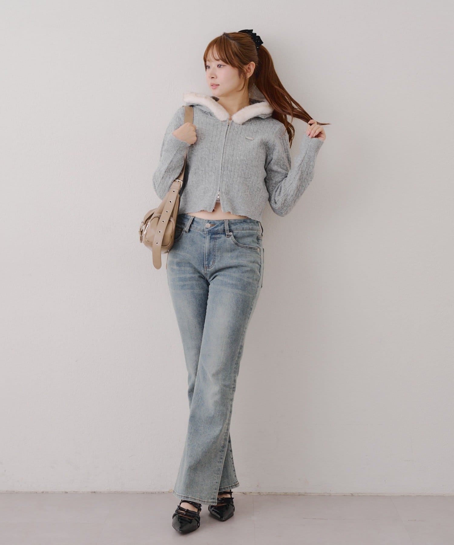 ・ボトムはトレンド感のあるデニムフレアパンツを履いても可愛い!