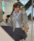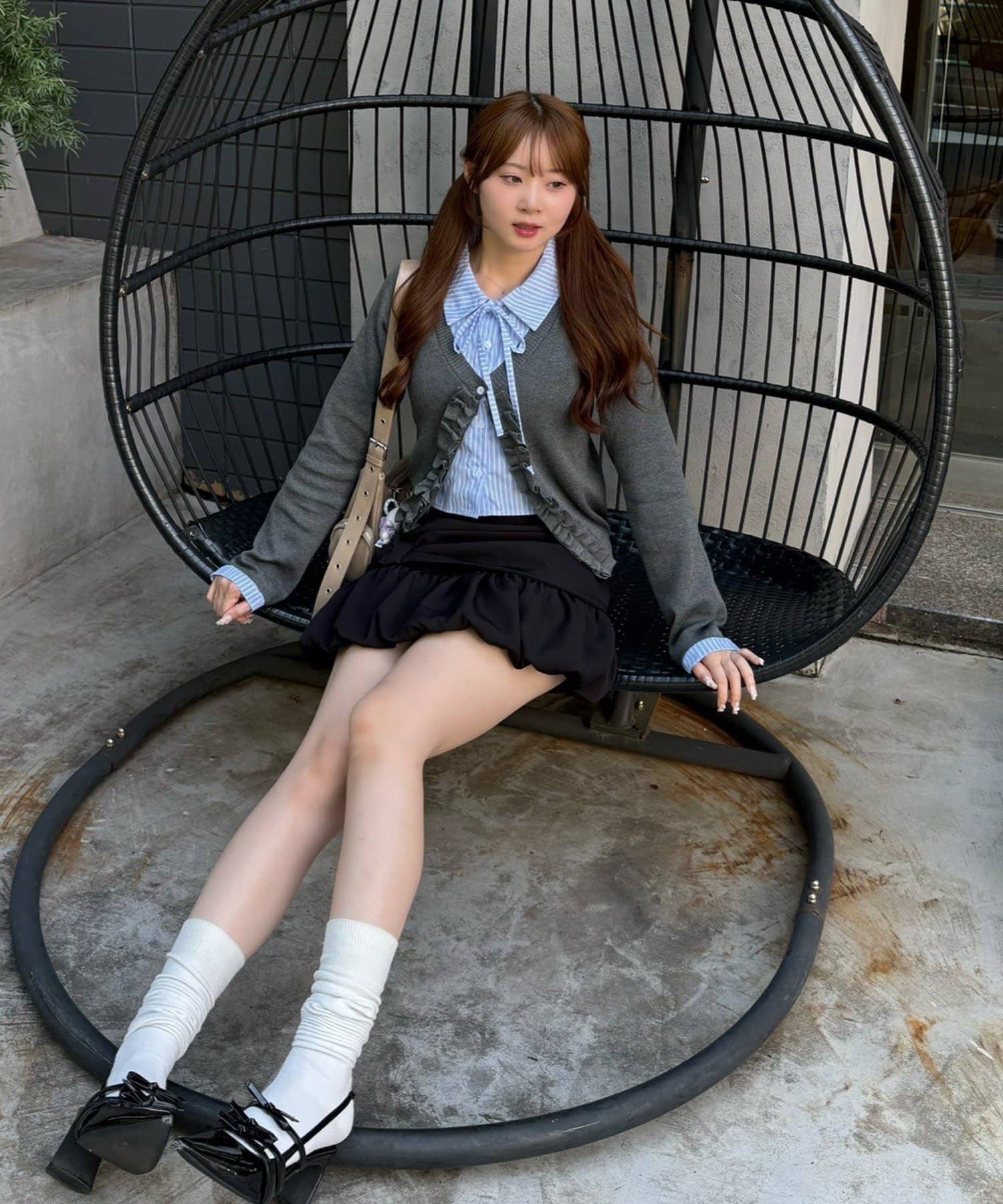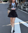 ・首元には大人っぽく見える紐リボンでガーリーさを演出♡