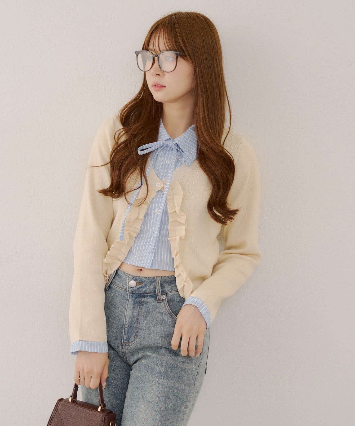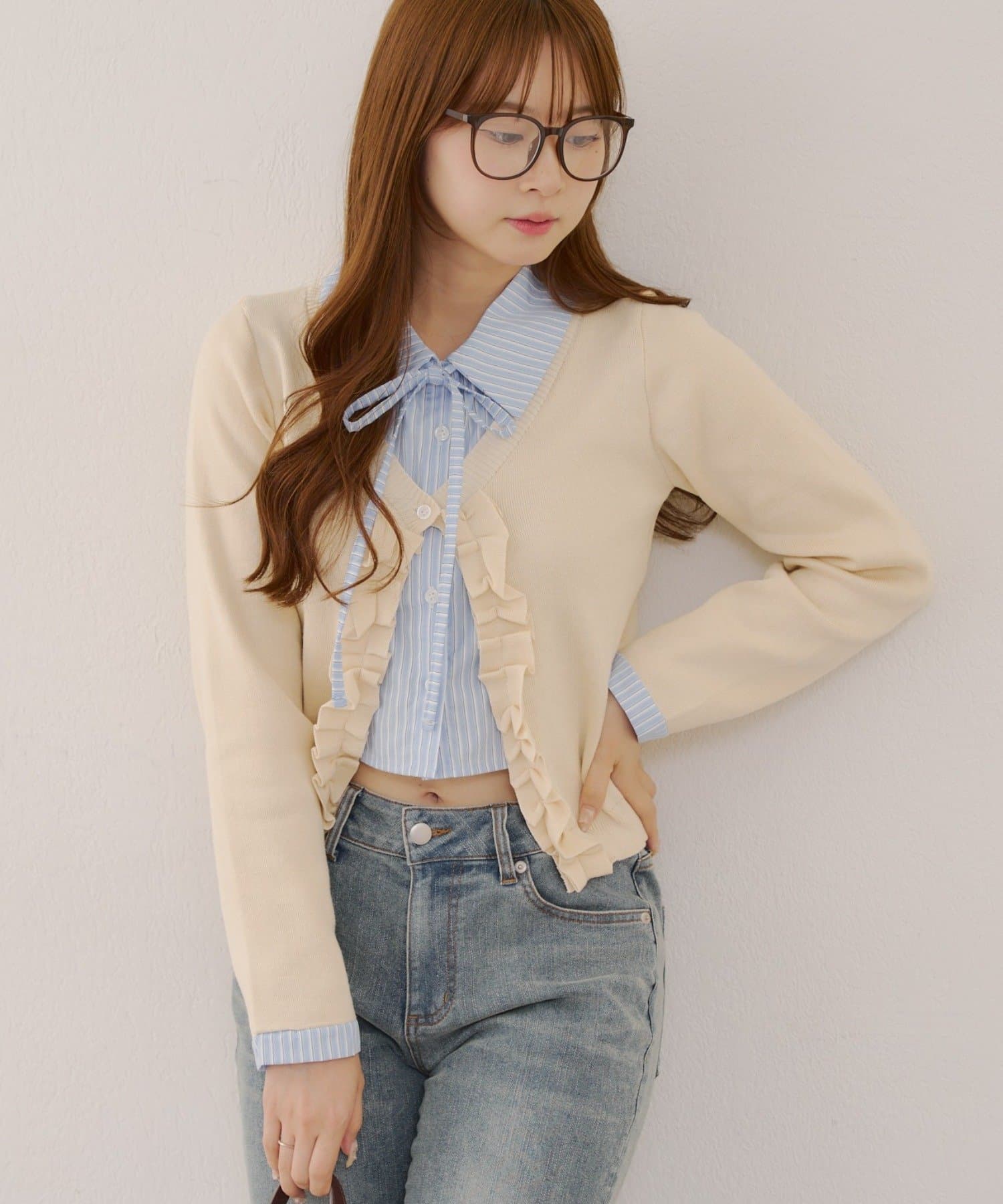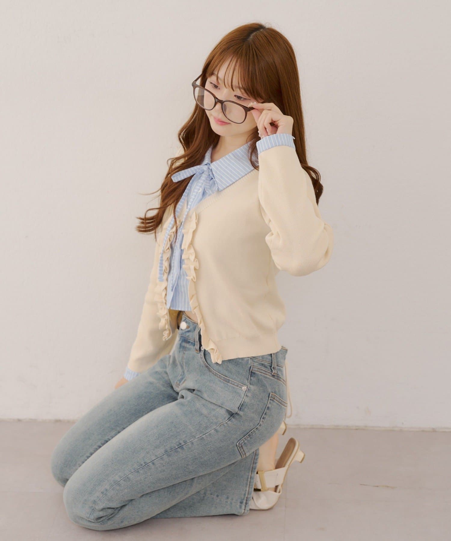 【れみ@re.__mi23セレクト】フリルドッキングカーディガン