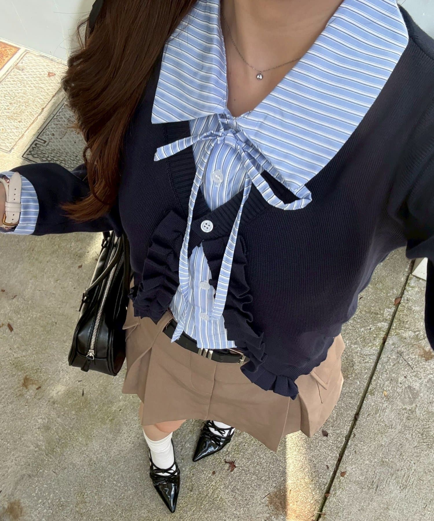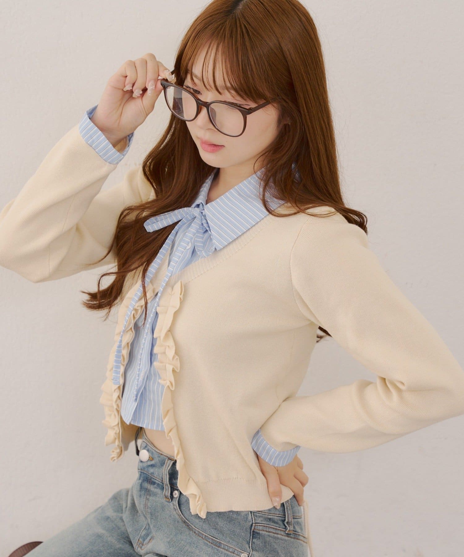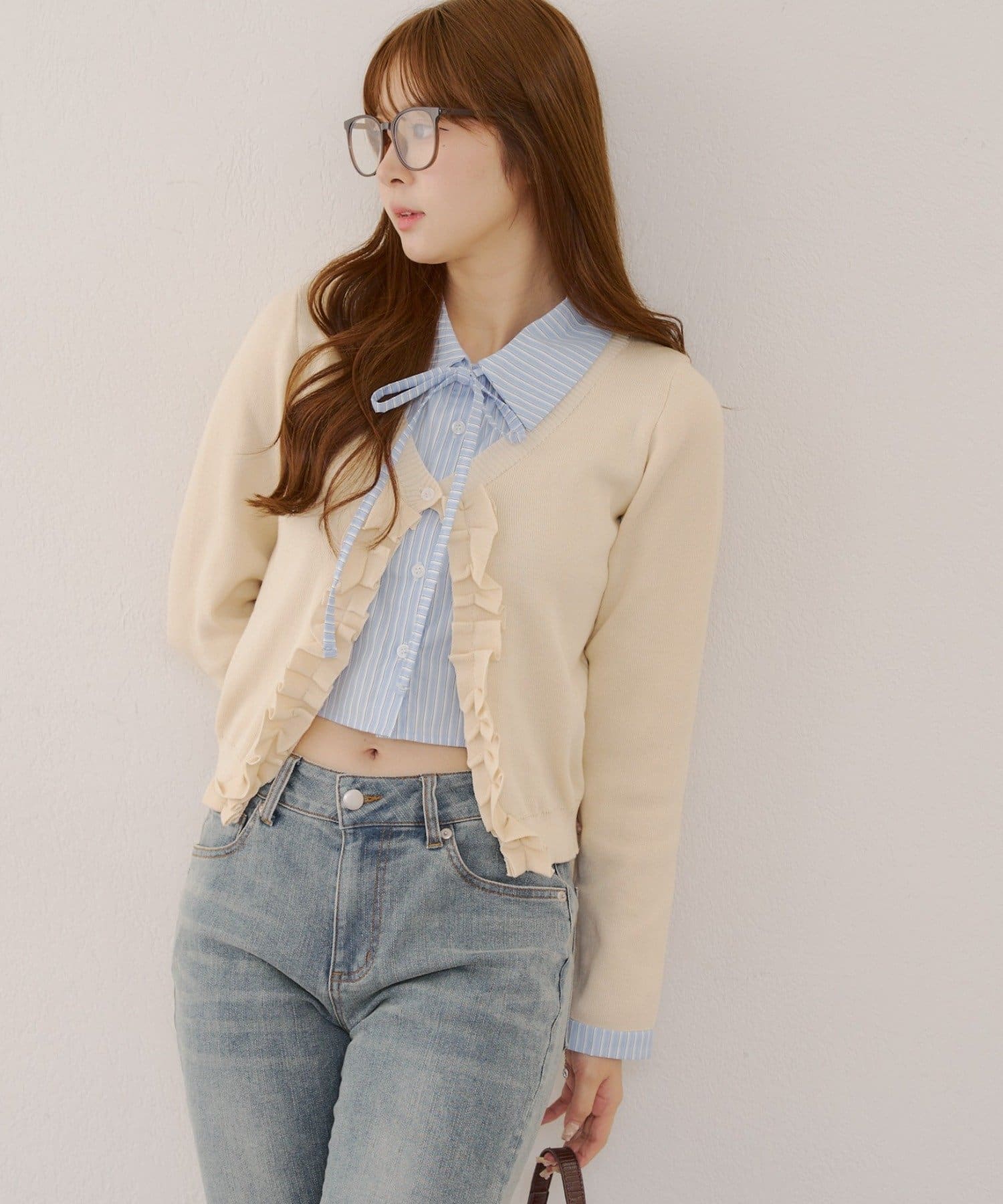 【れみ@re.__mi23セレクト】フリルドッキングカーディガン