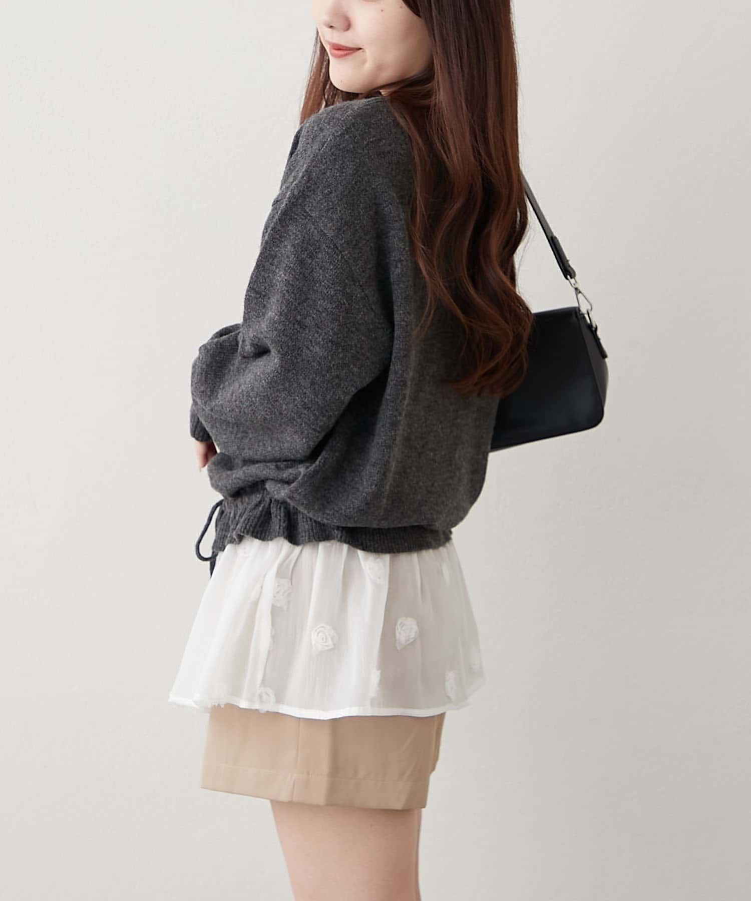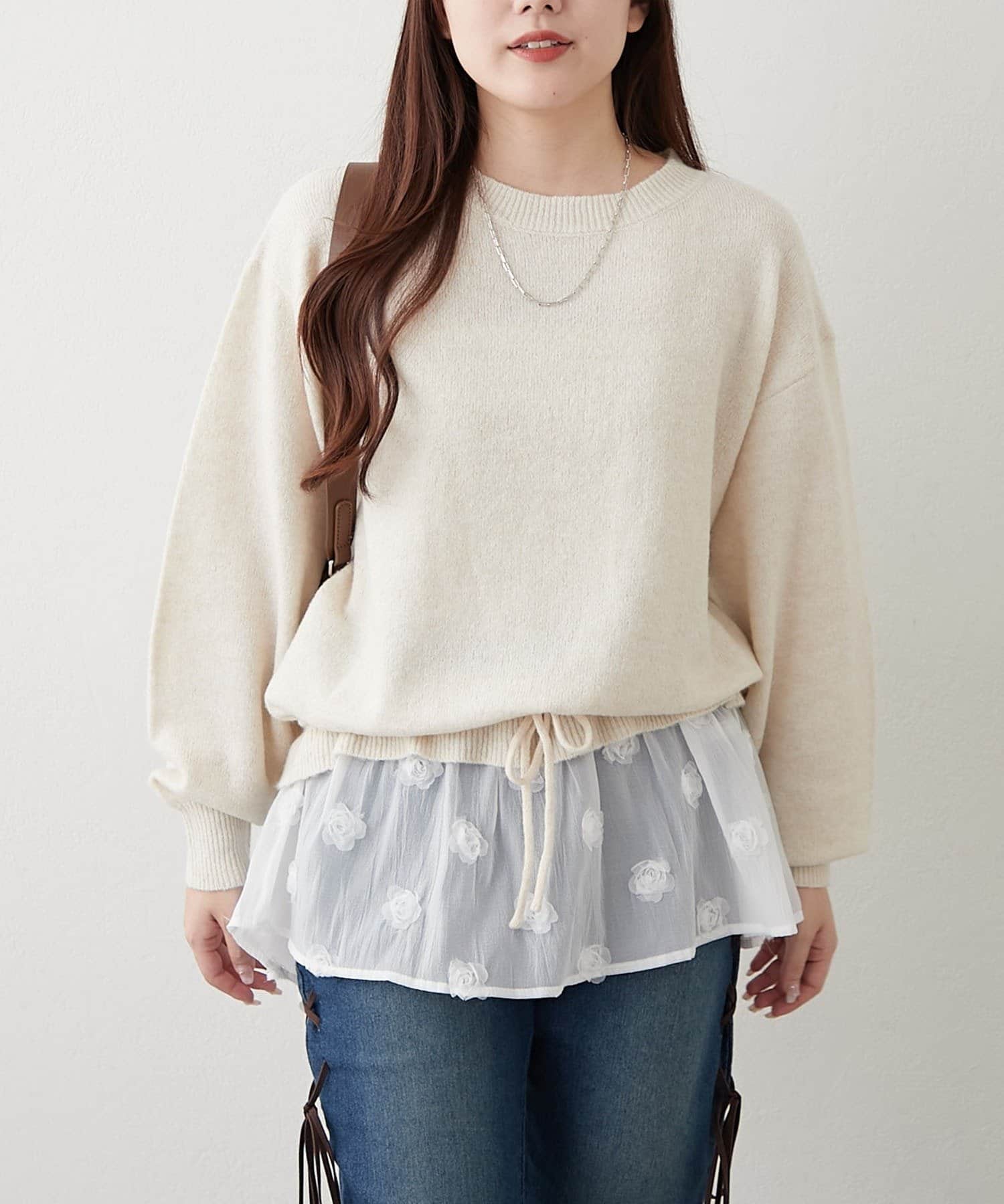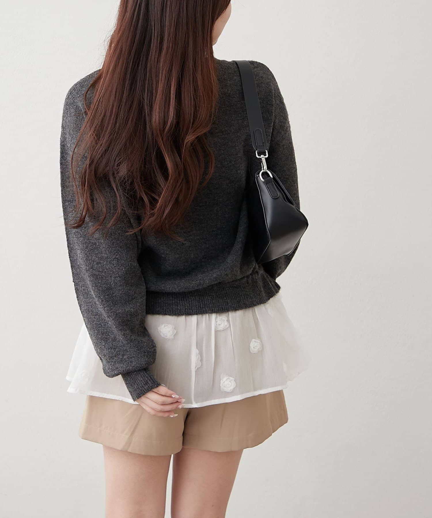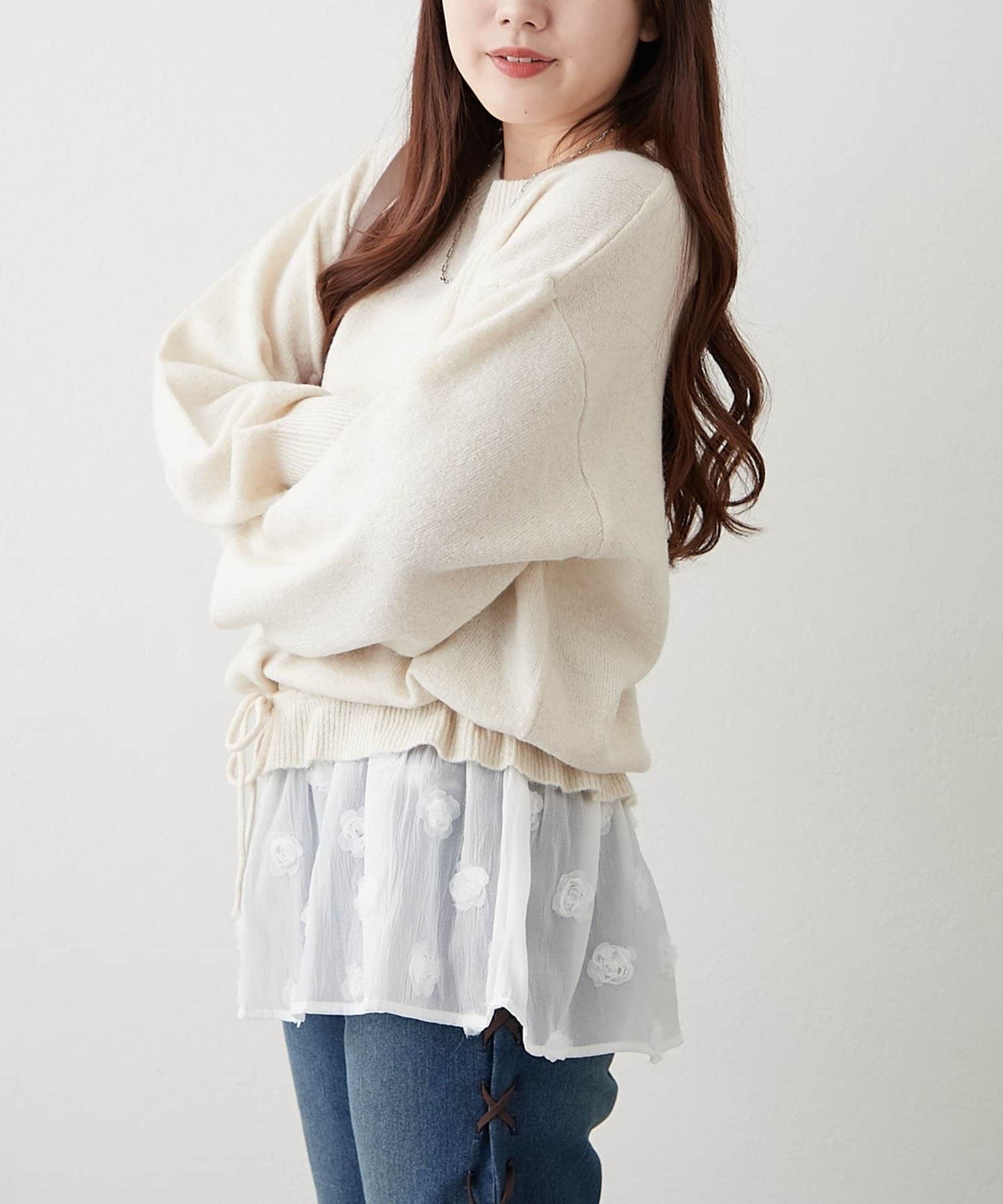 ・オーガンジー素材のフラワーモチーフがフェミニンなプルオーバー