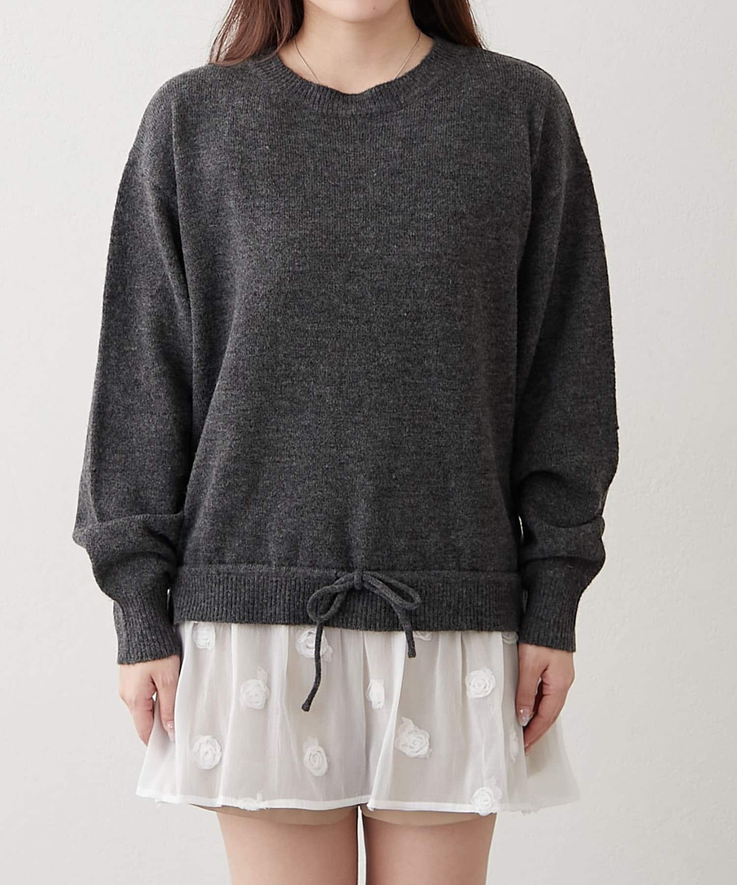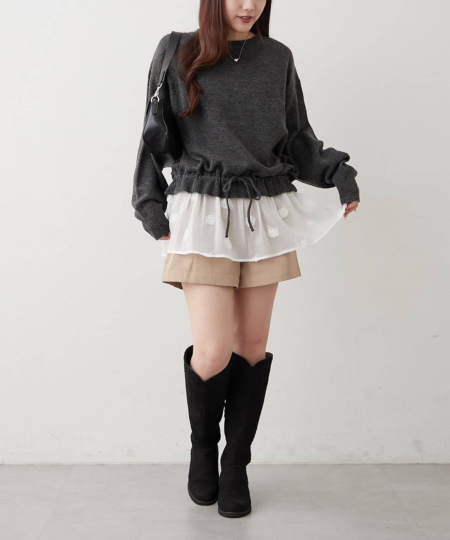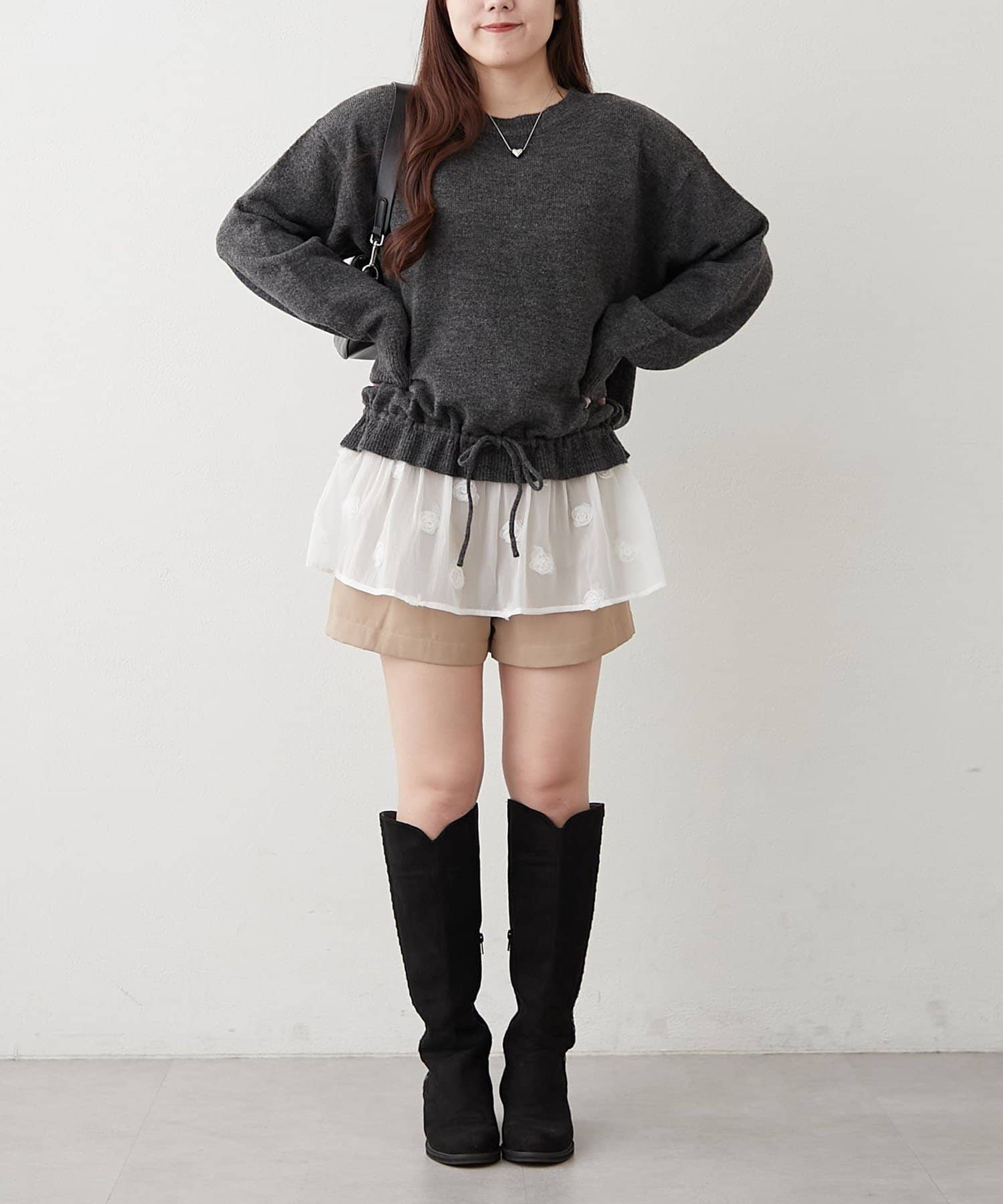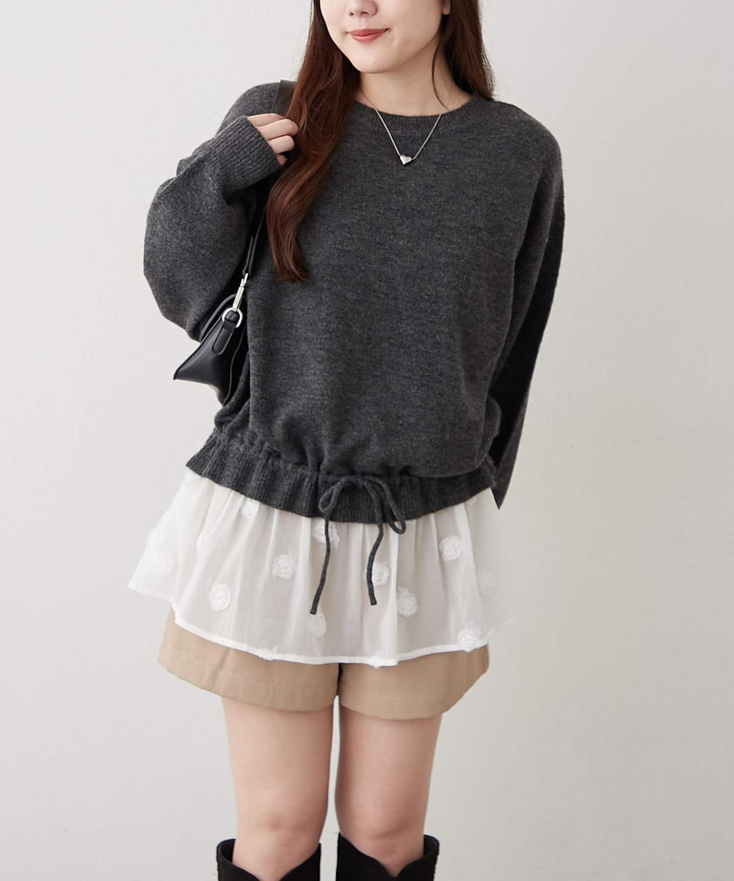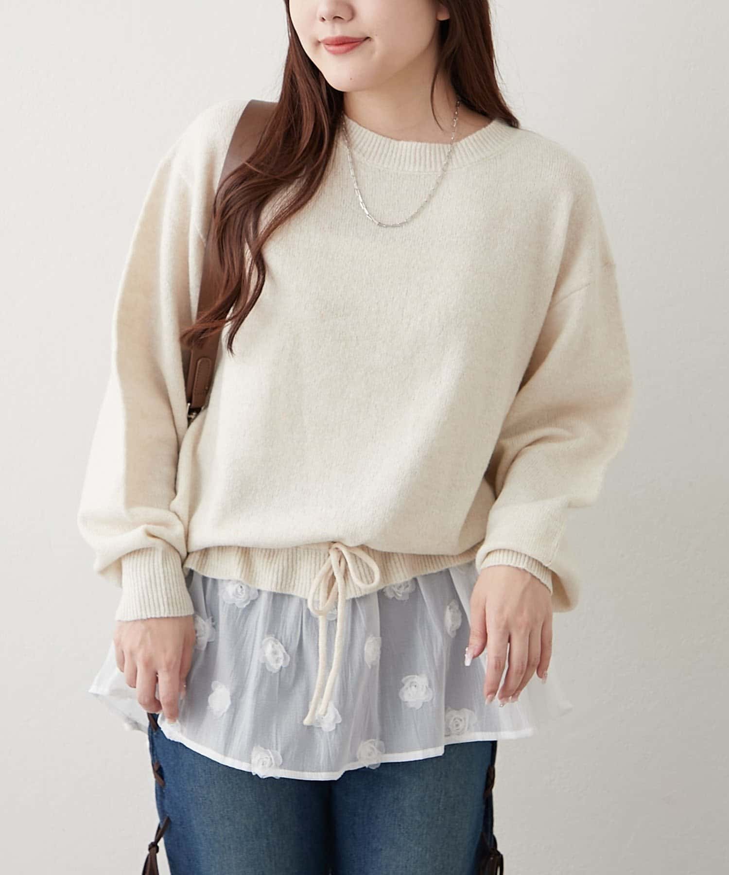 ・オーガンジー素材のフラワーモチーフがフェミニンなプルオーバー