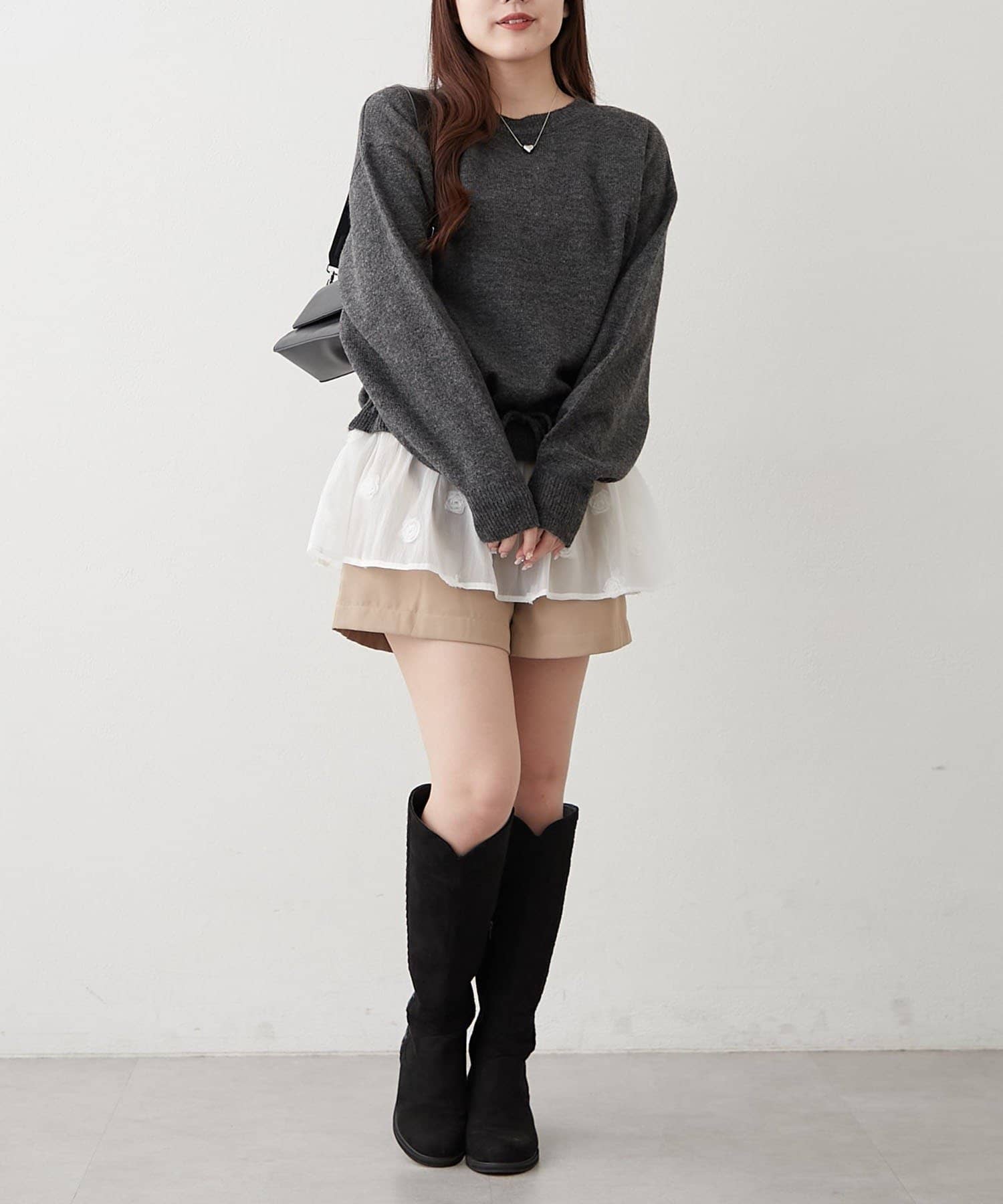 サイズ 着丈 袖丈 肩幅 胸囲 総丈 FREE 74 53 53 114 裾廻りニット部分106 布帛部分152 - ショッピングの気になる点はヘルプページをご確認ください