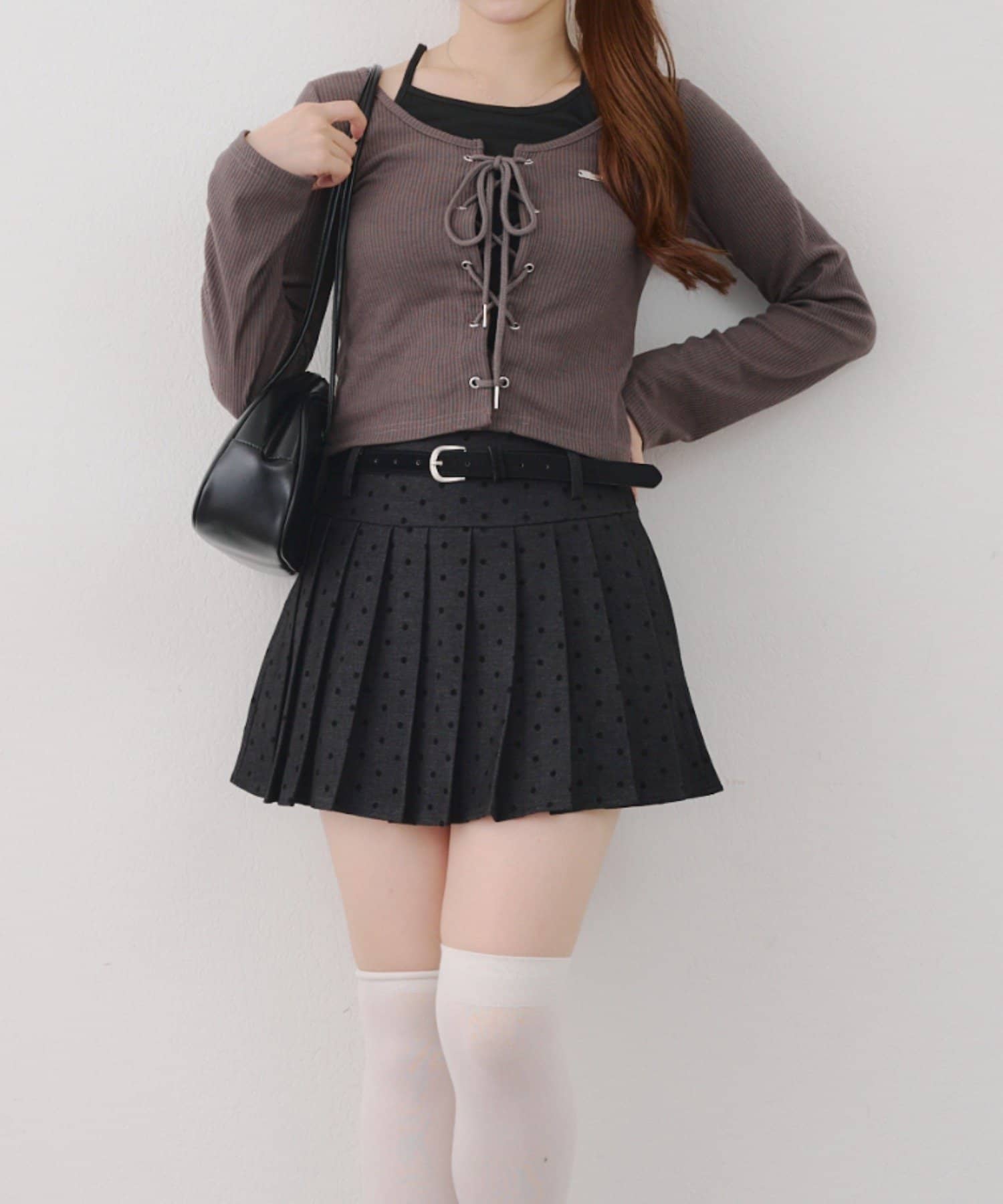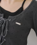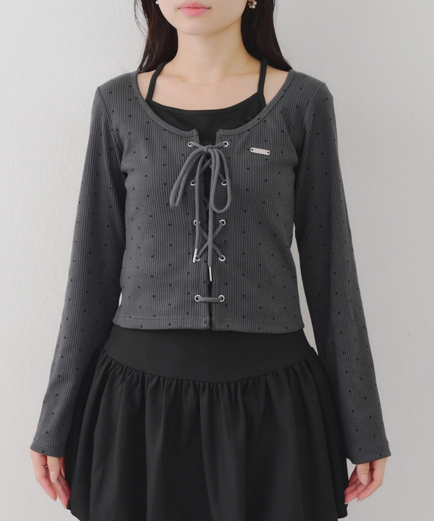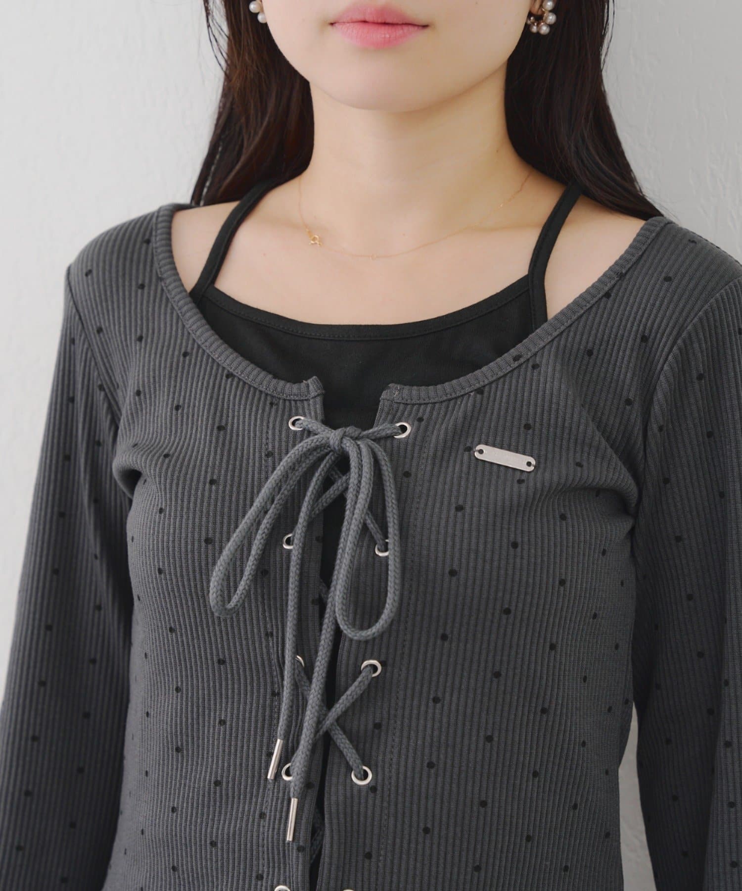 トレンドのドット柄あり【RMAF】レースUPテレコトップス