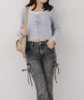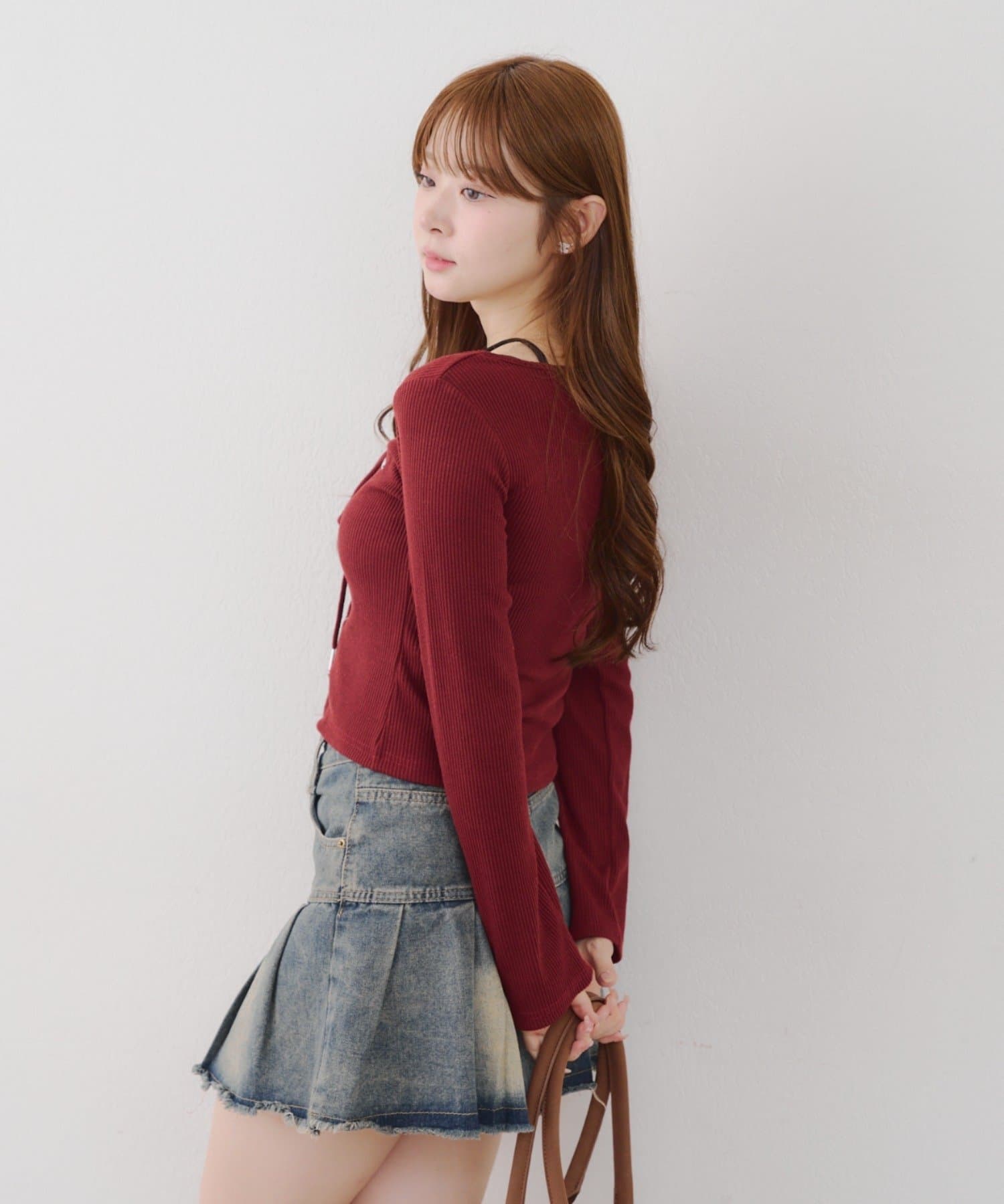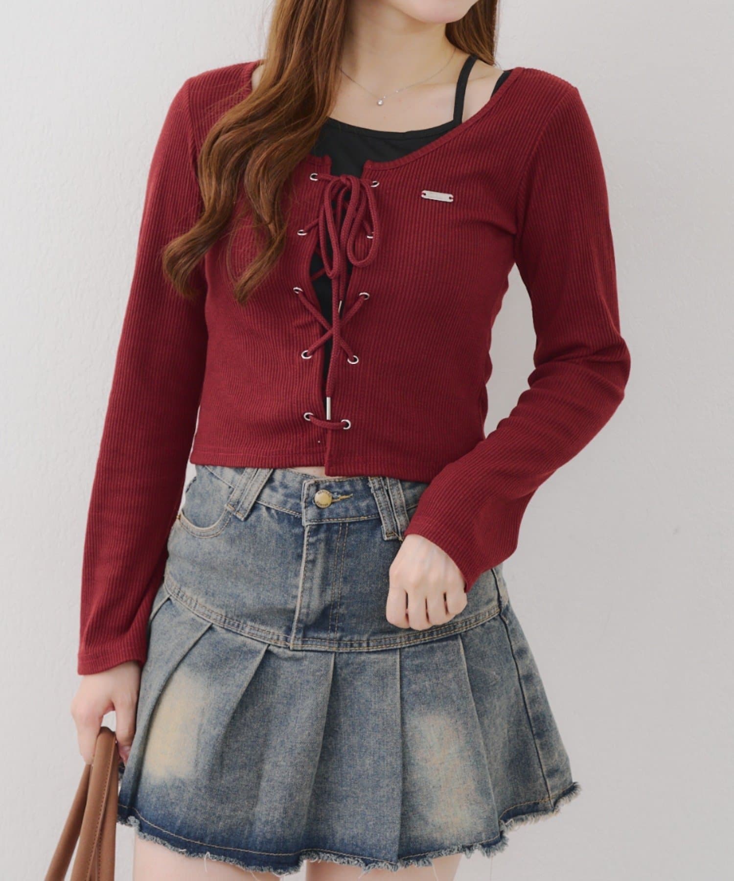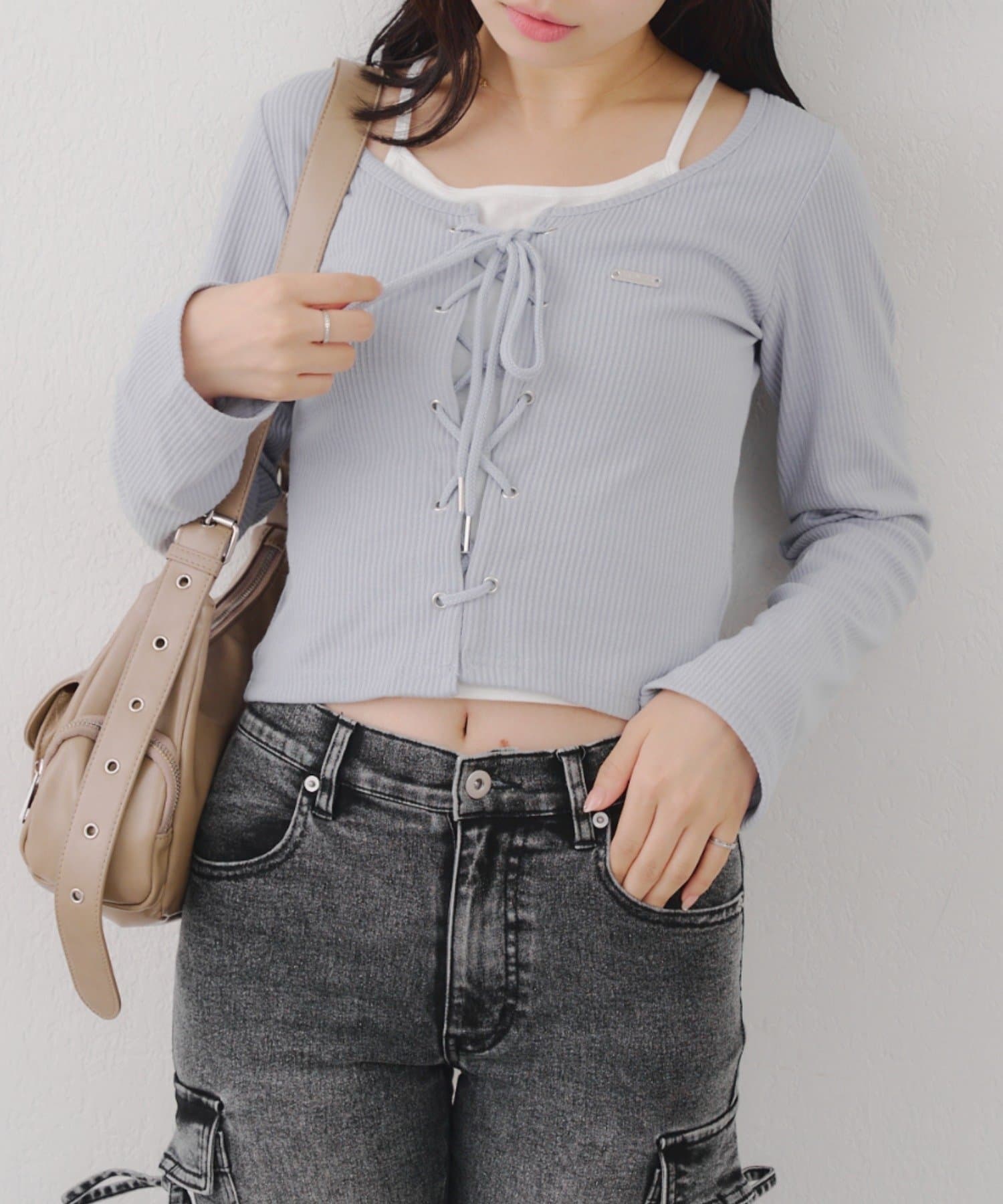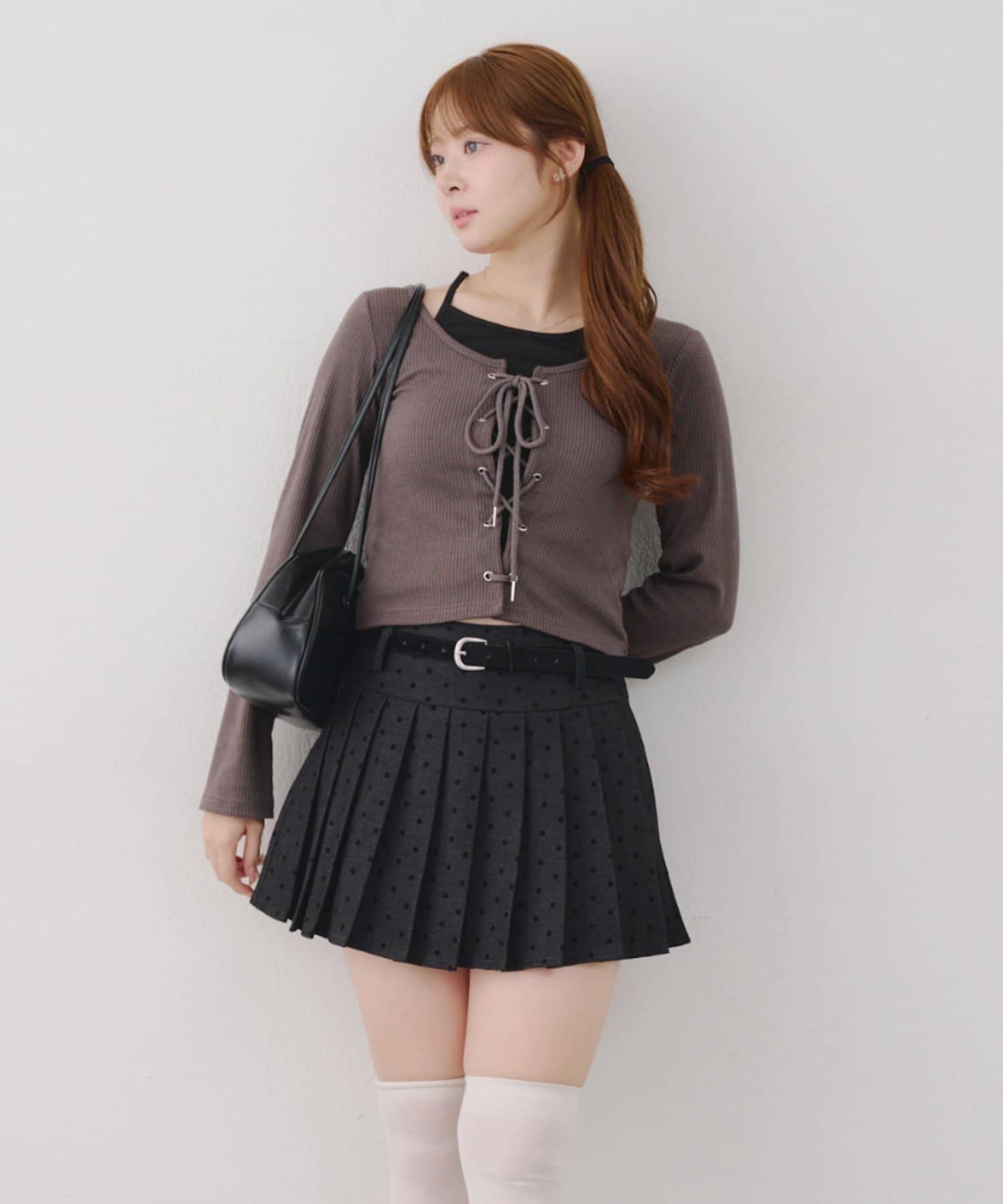 トレンドのドット柄あり【RMAF】レースUPテレコトップス