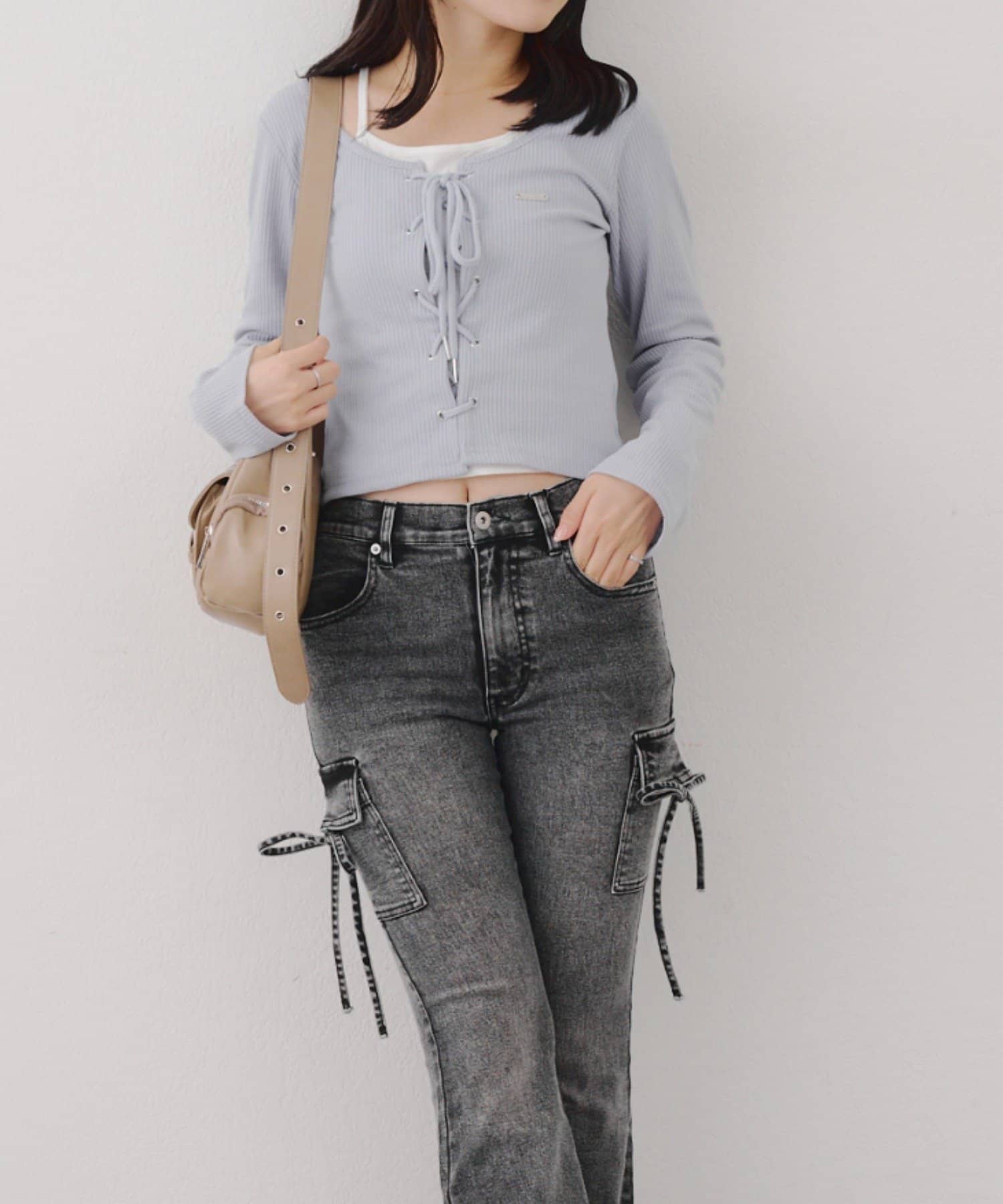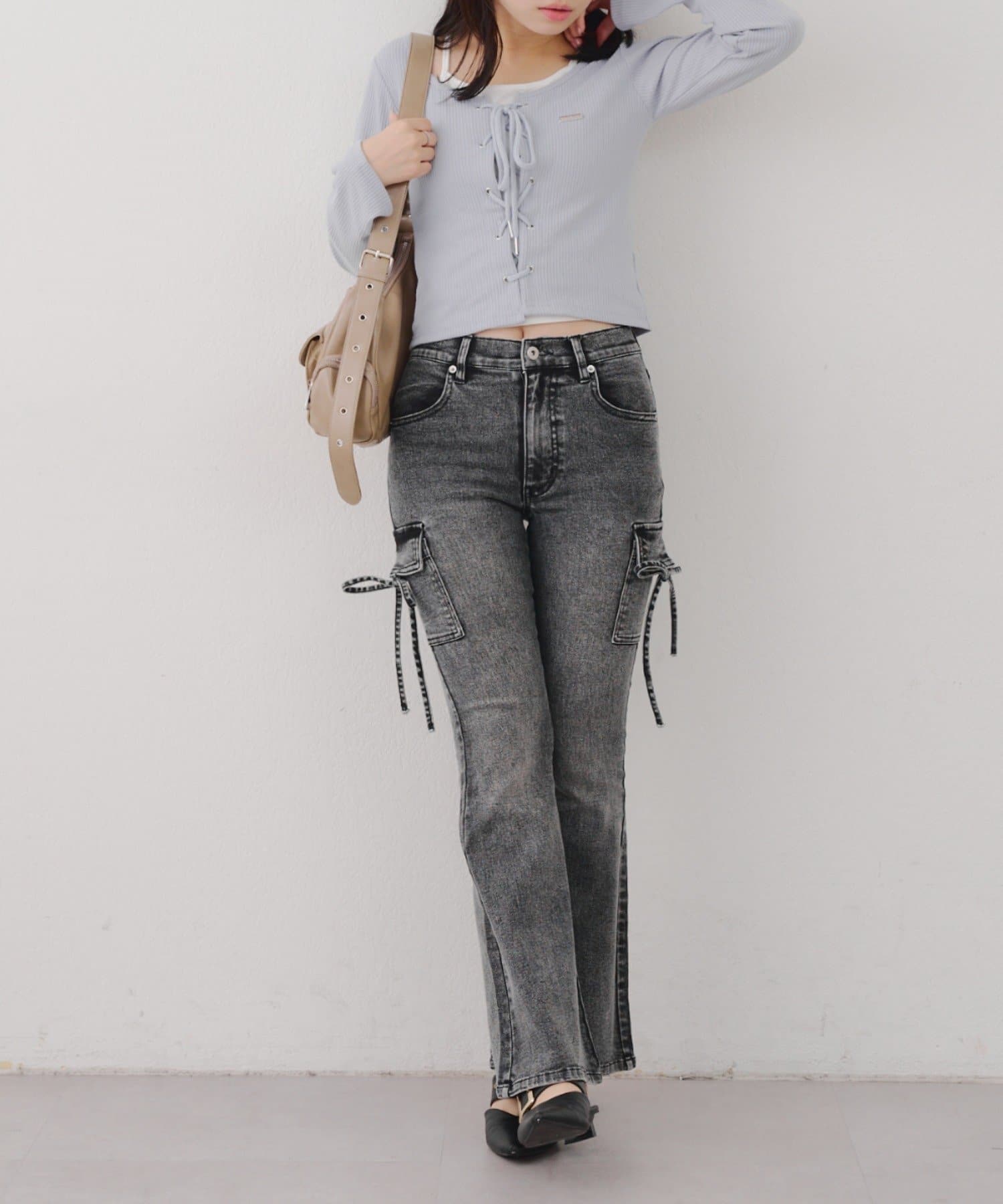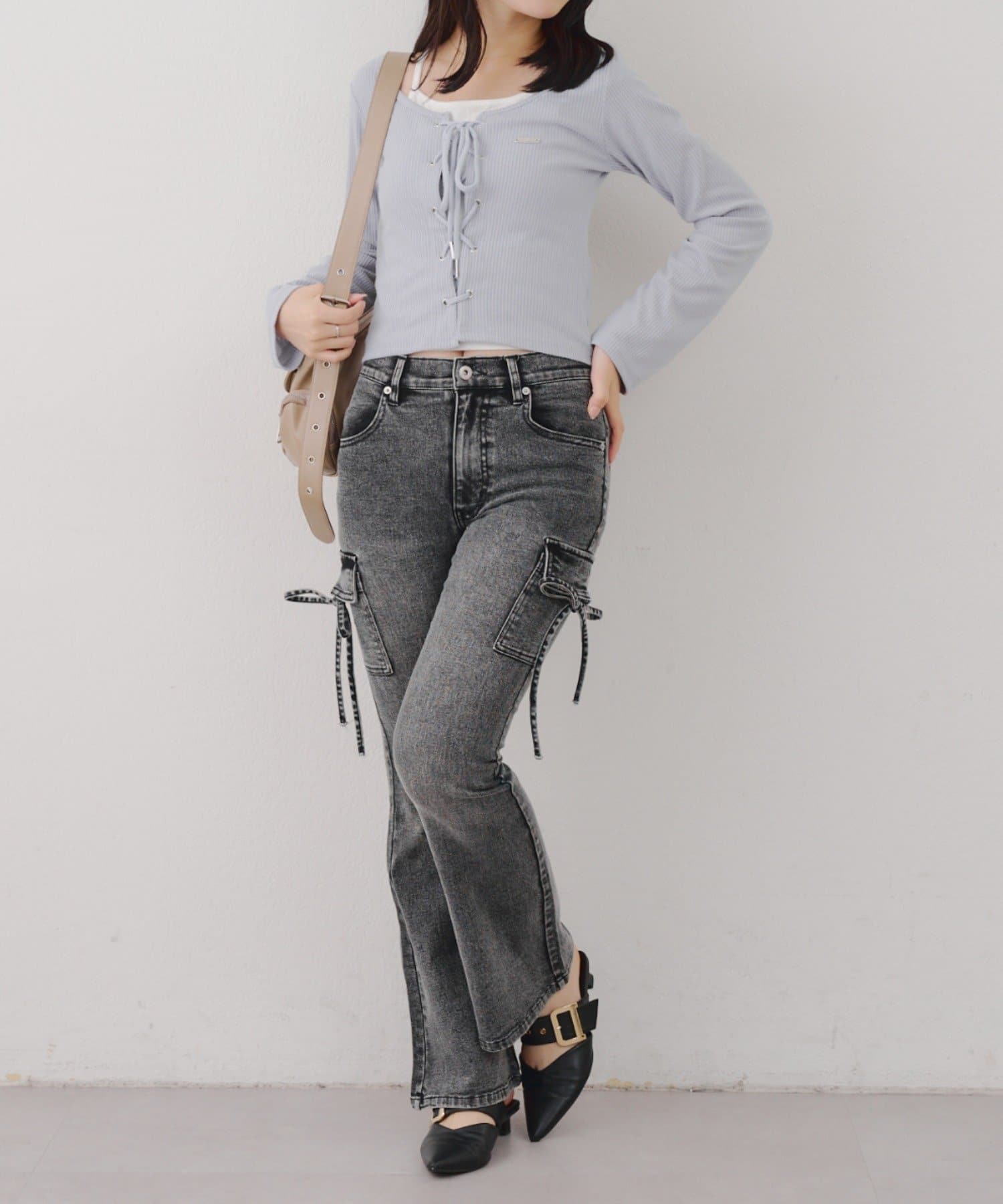 ・フレアデニムパンツでレディライクなカジュアルコーデを楽しむのも◎