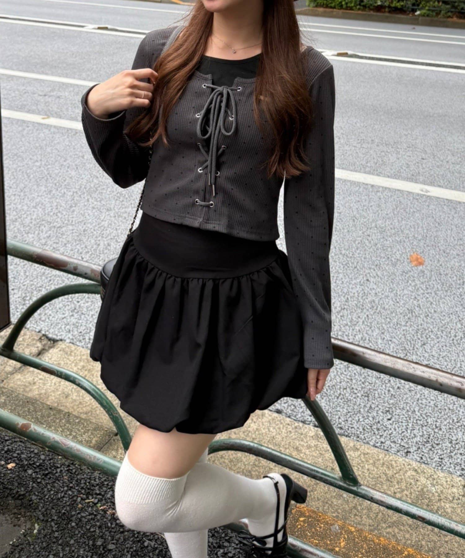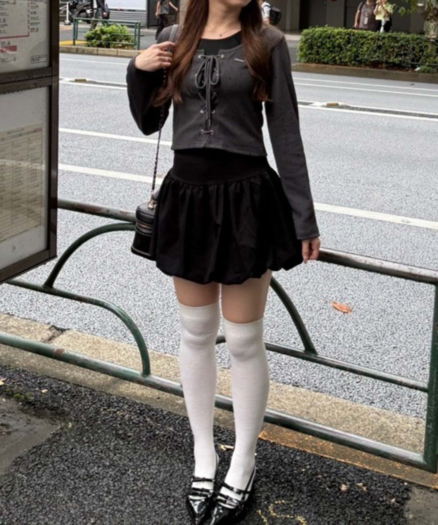 ・バルーンスカートにニーハイでガーリーにまとめるのがオススメ