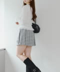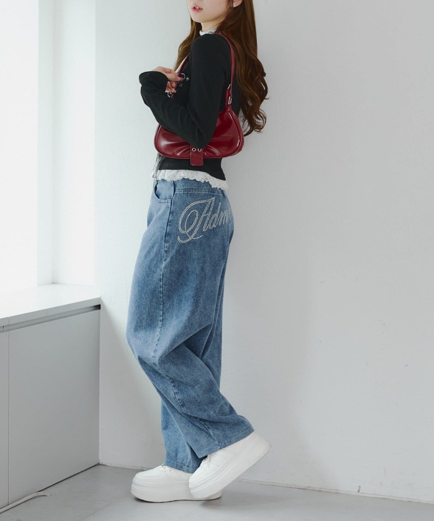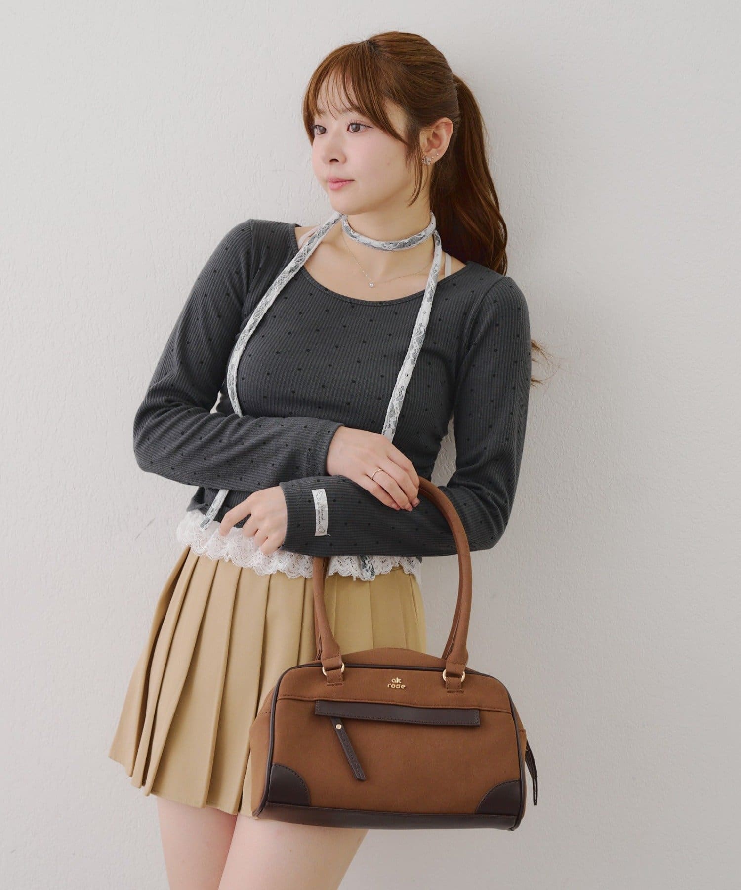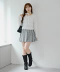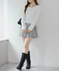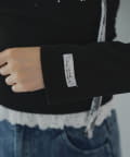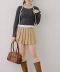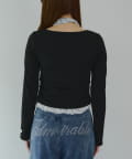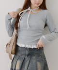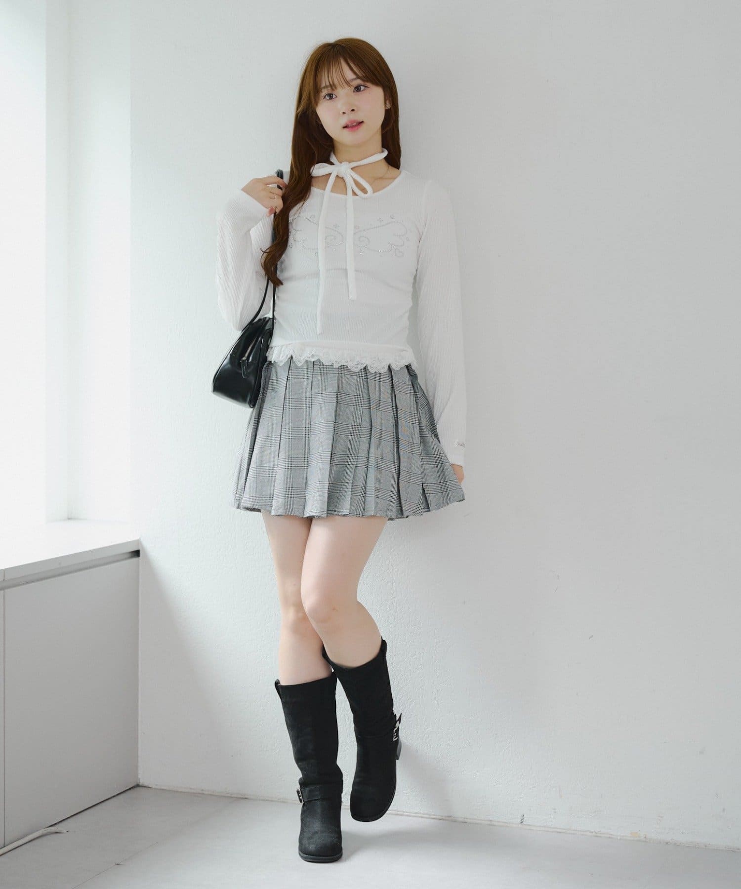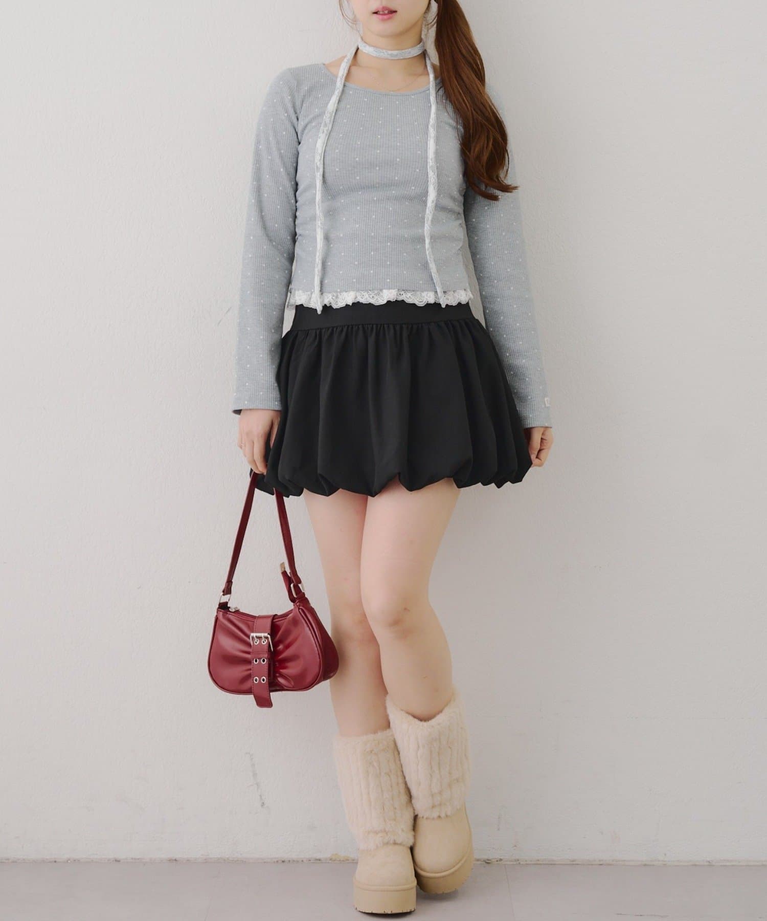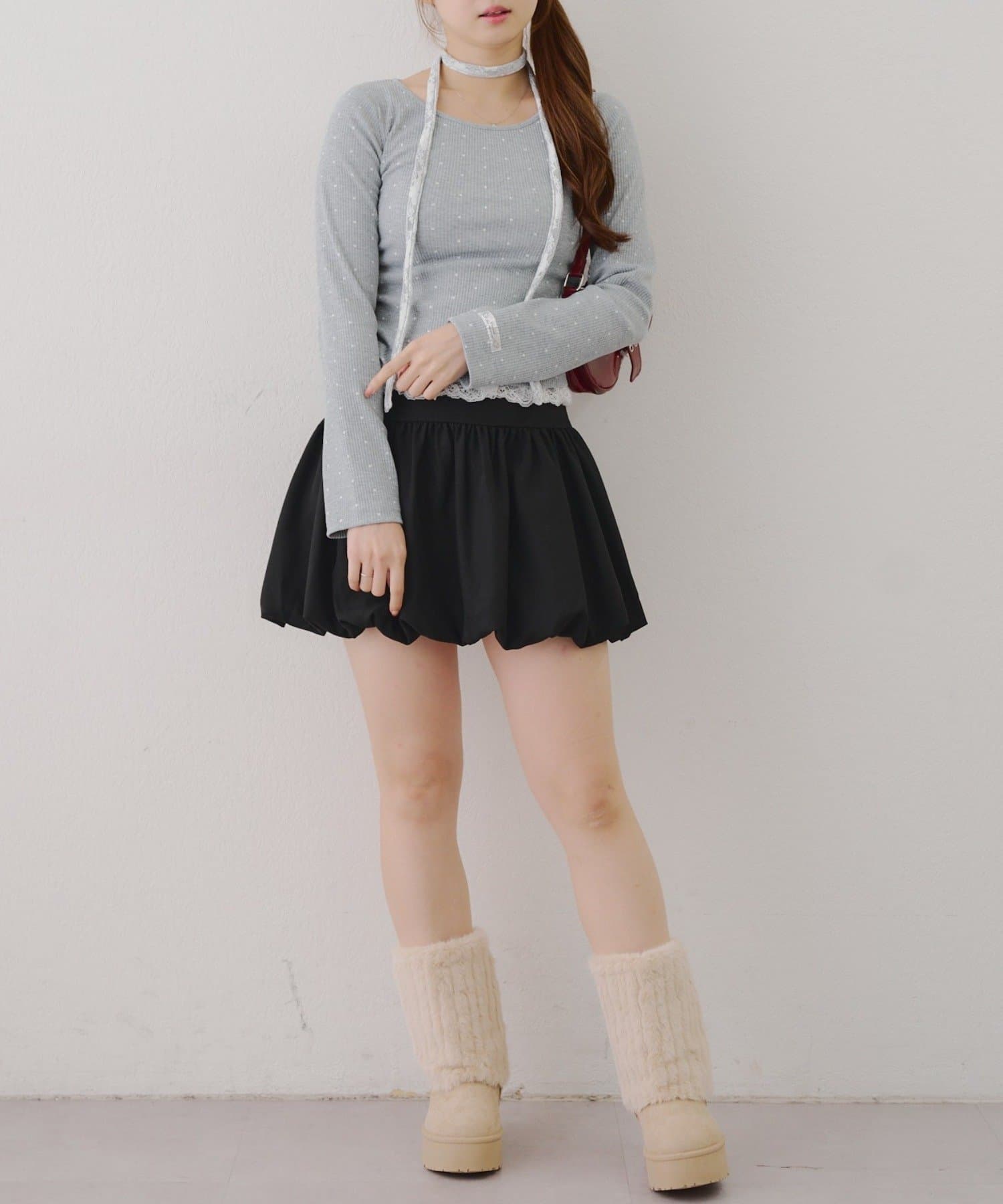 ・胸元の繊細なビジューが目を惹く、大人可愛いリブトップス
