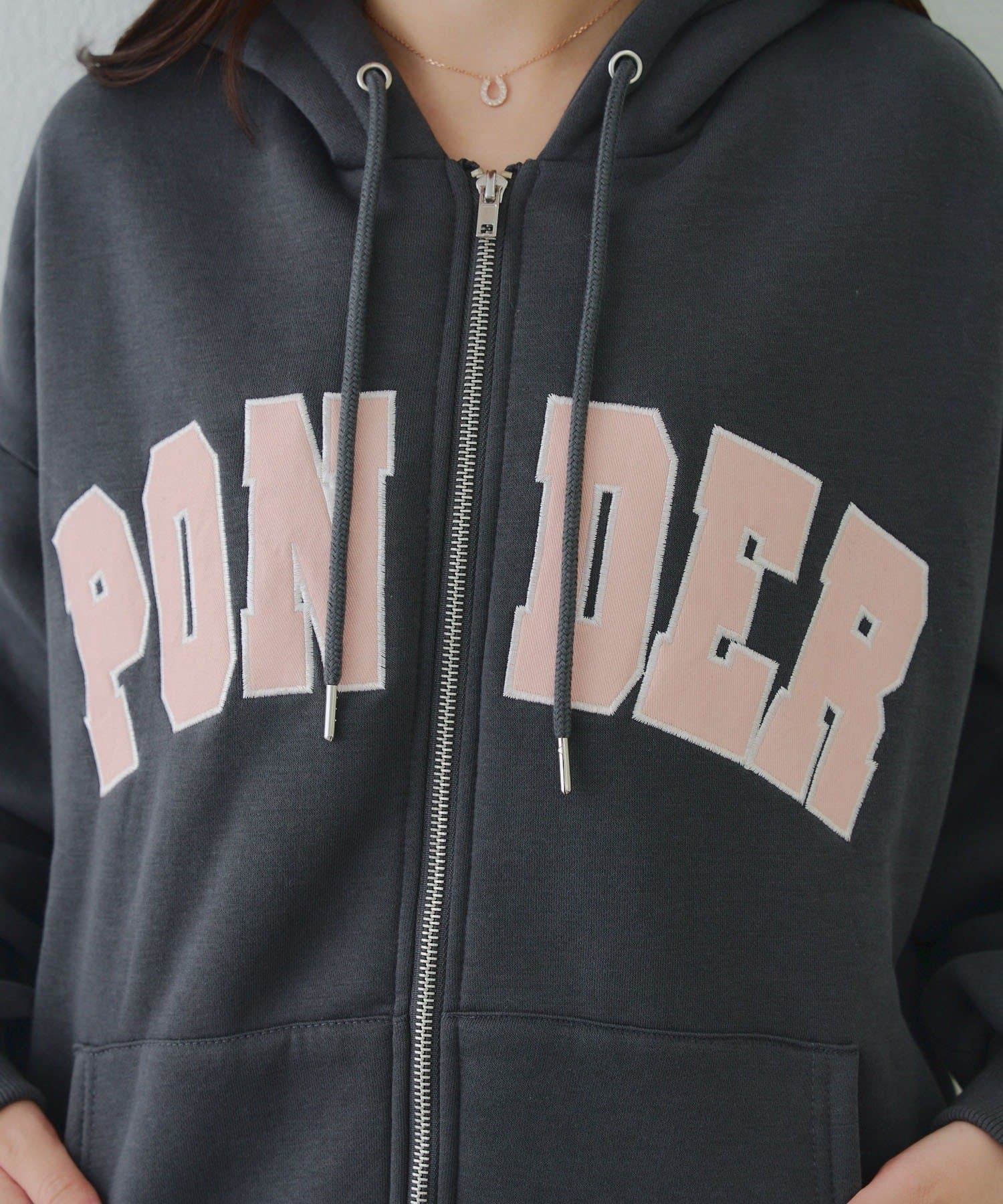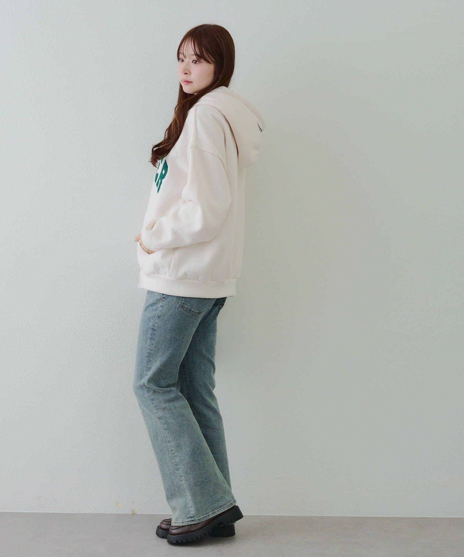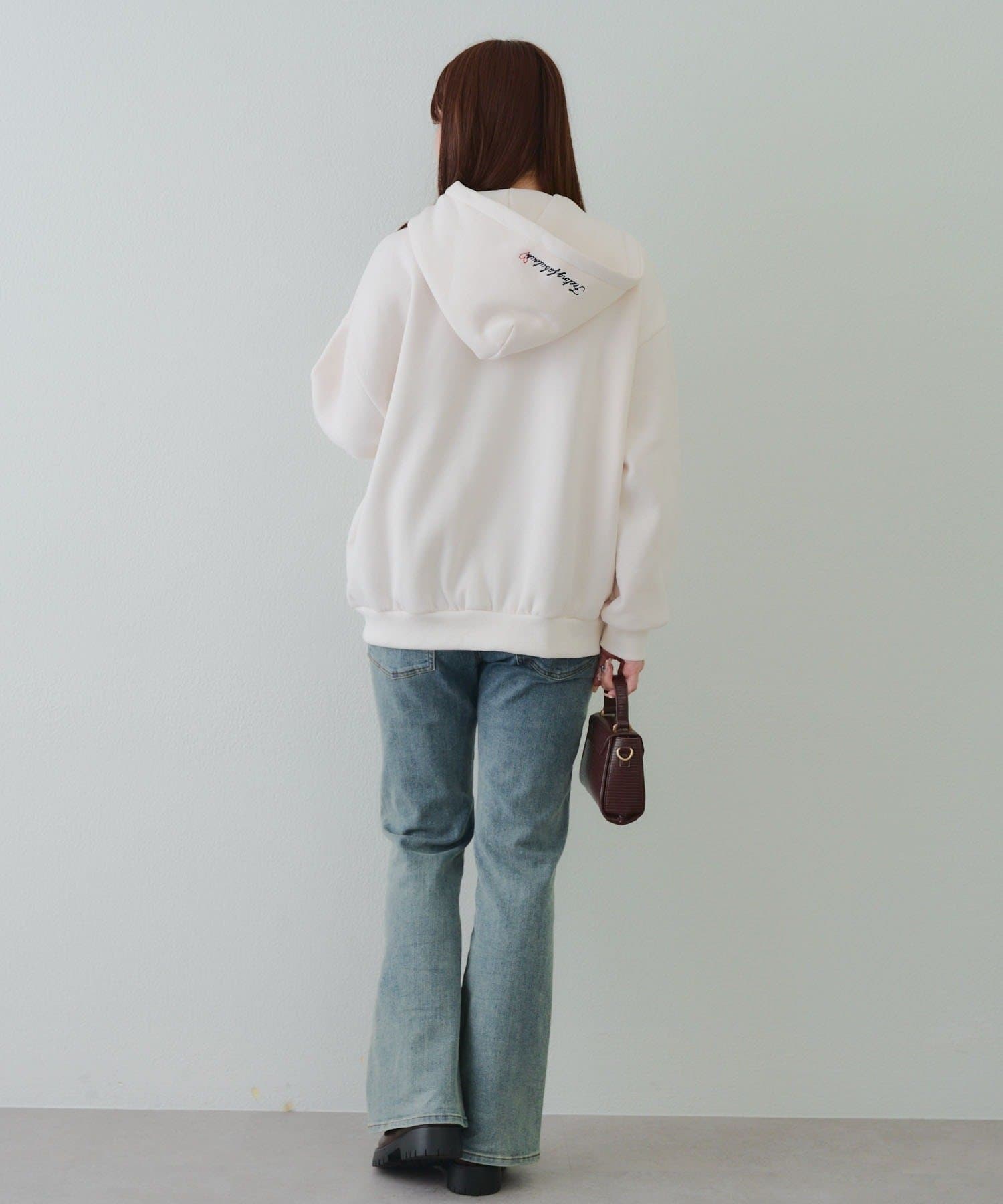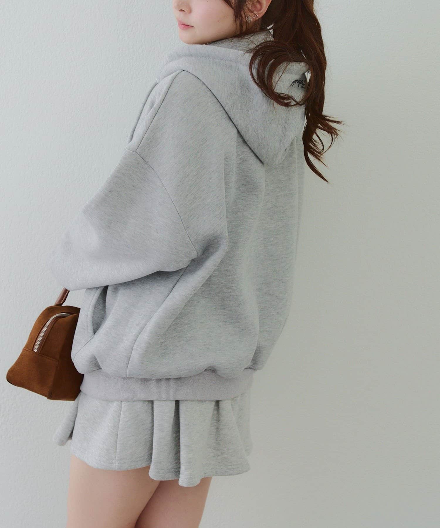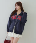 ・存在感のあるロゴデザインが目を惹くジップアップパーカー