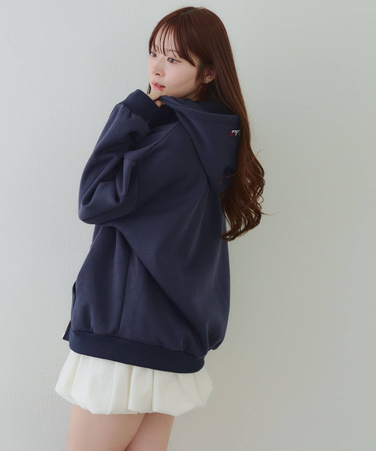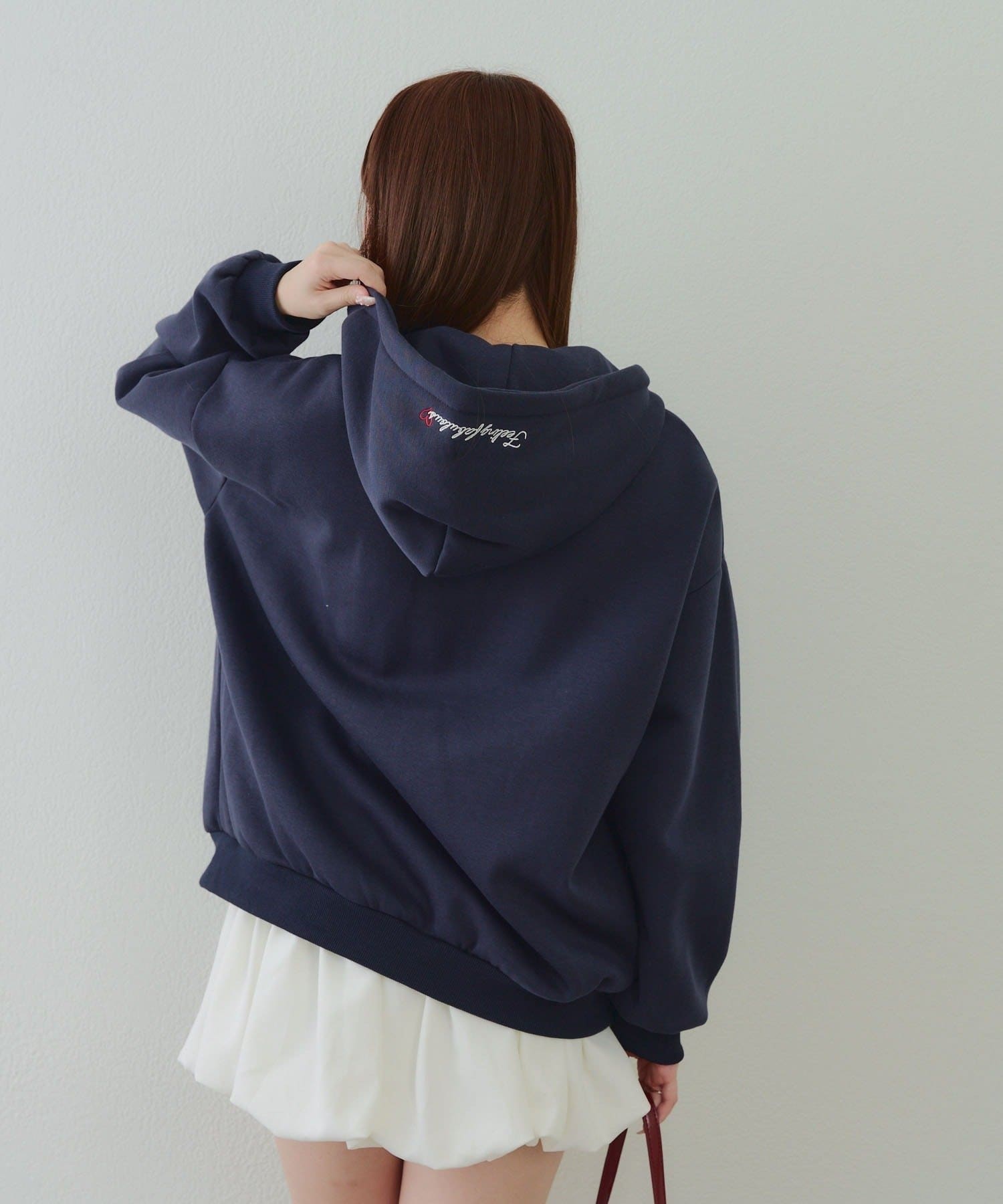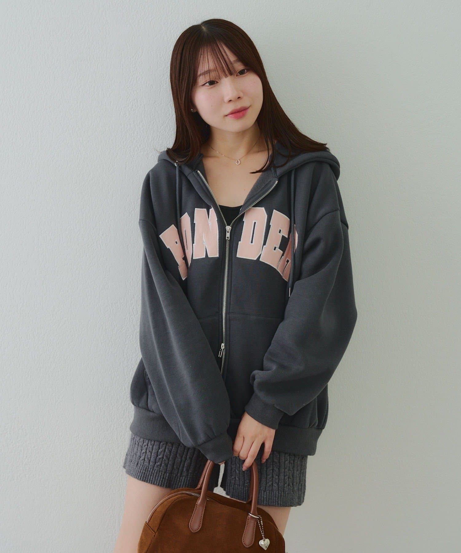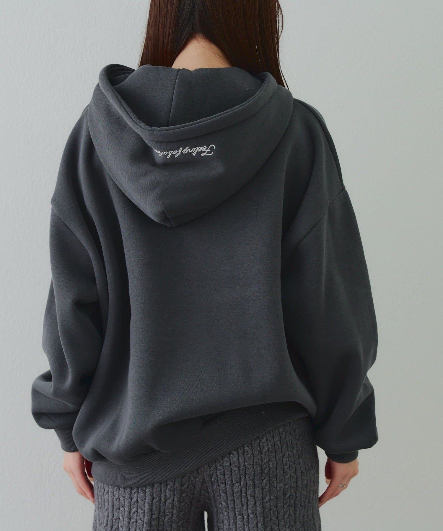 ・存在感のあるロゴデザインが目を惹くジップアップパーカー
