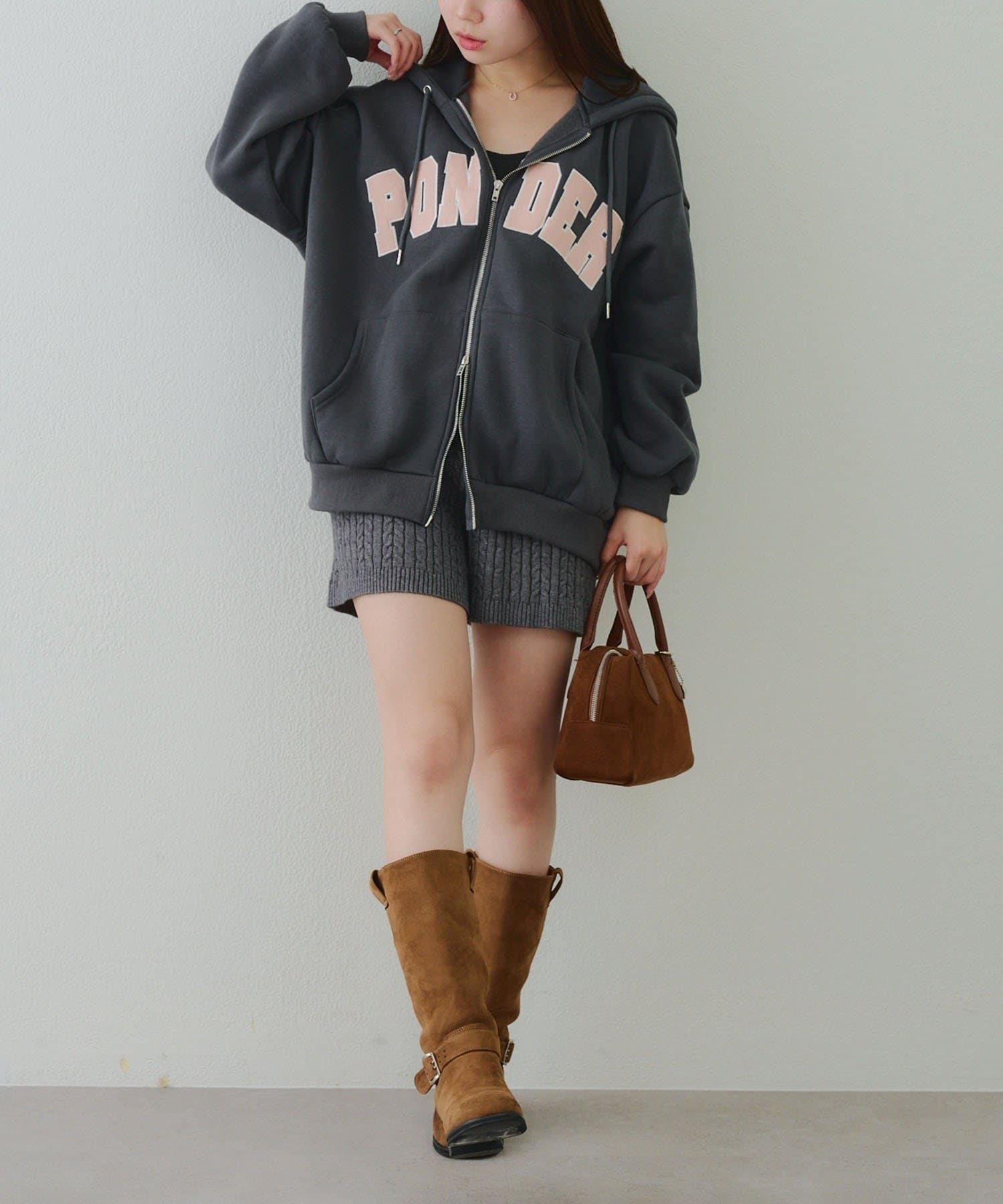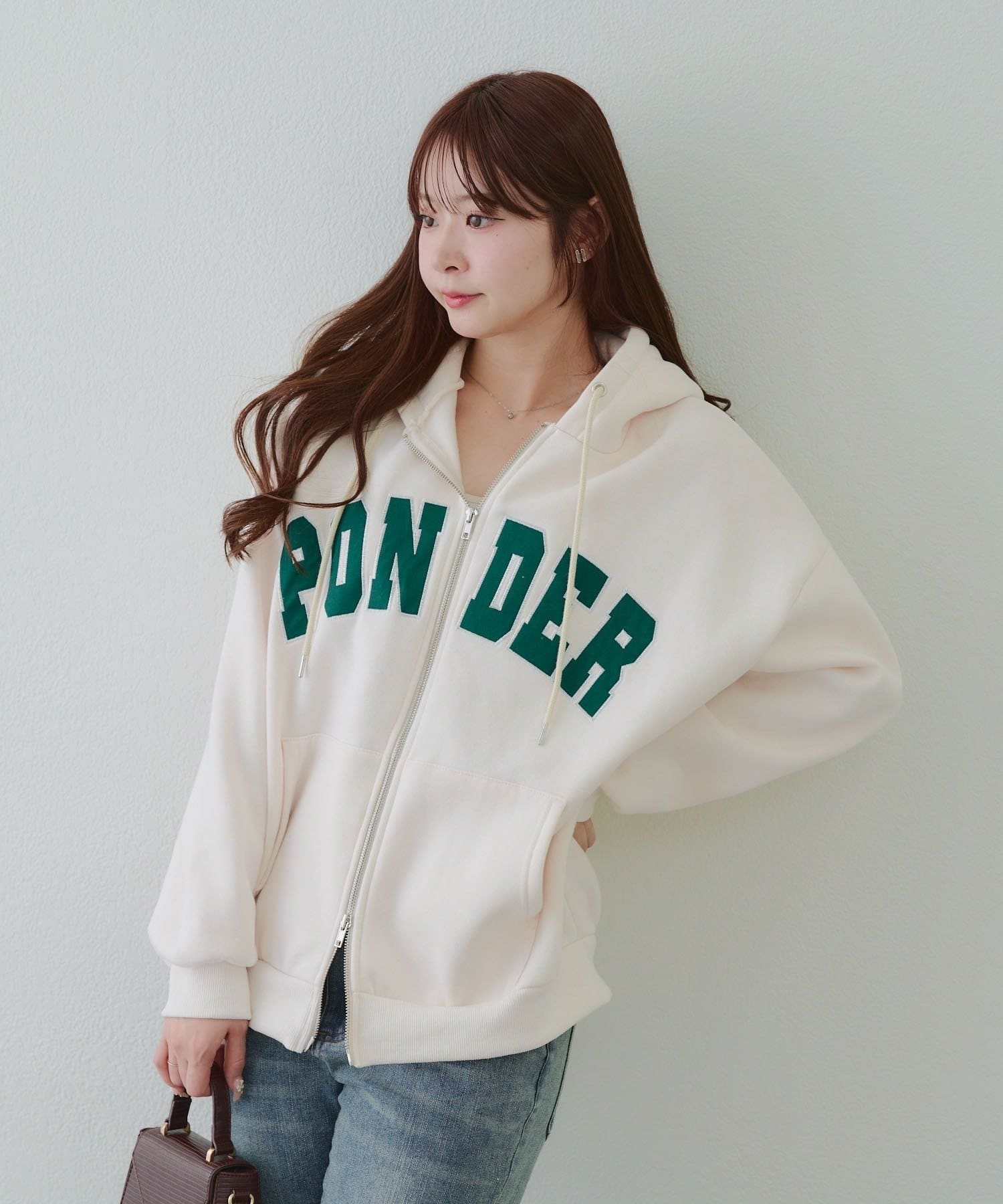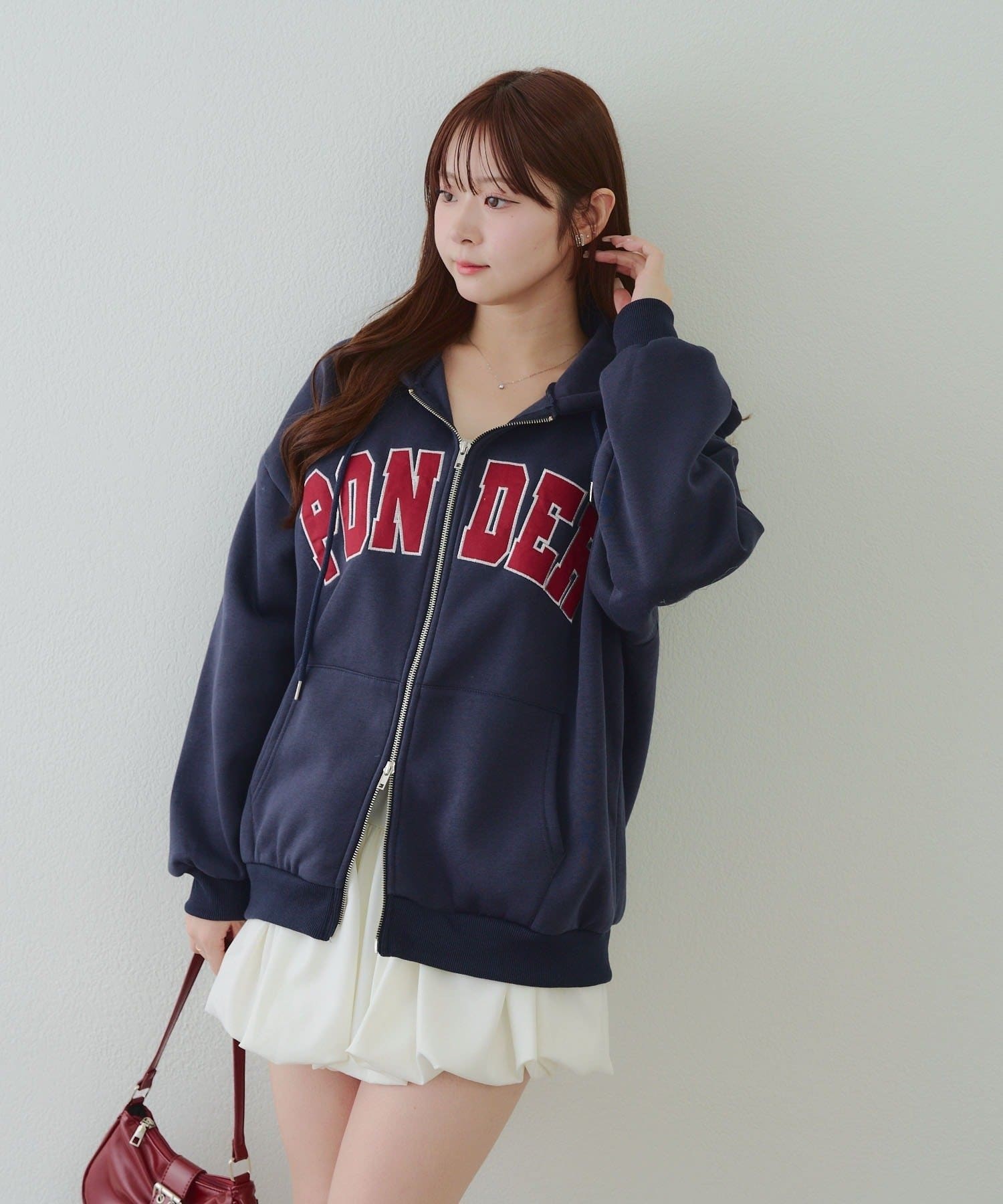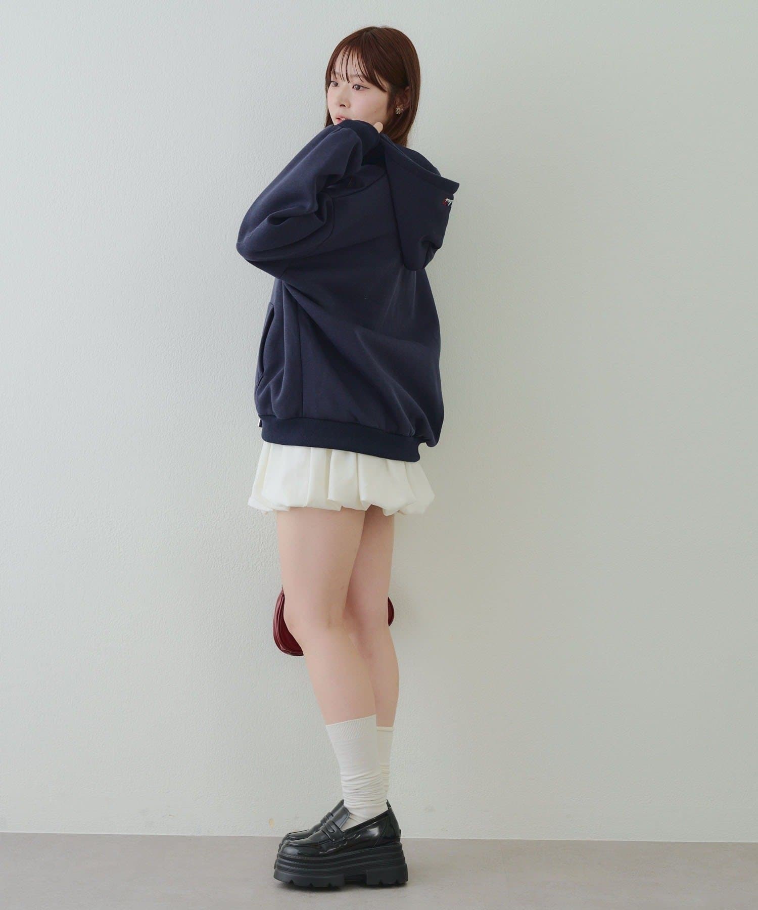 ・存在感のあるロゴデザインが目を惹くジップアップパーカー