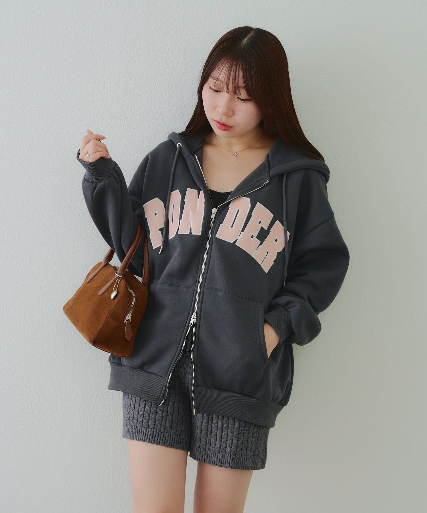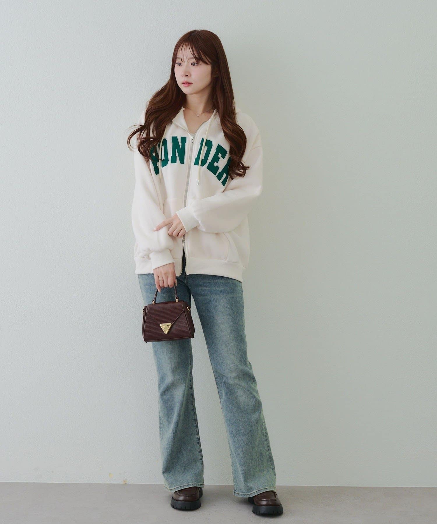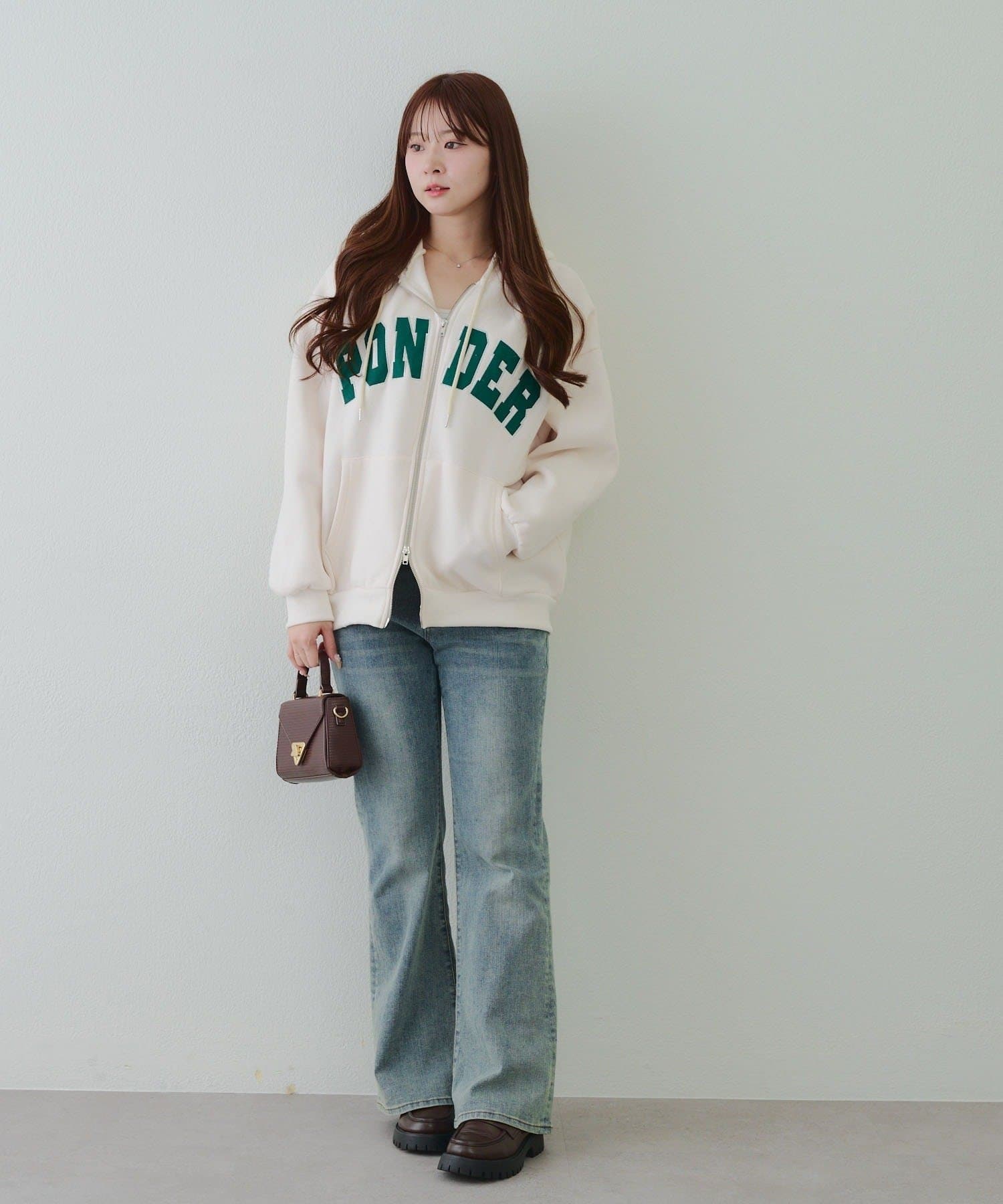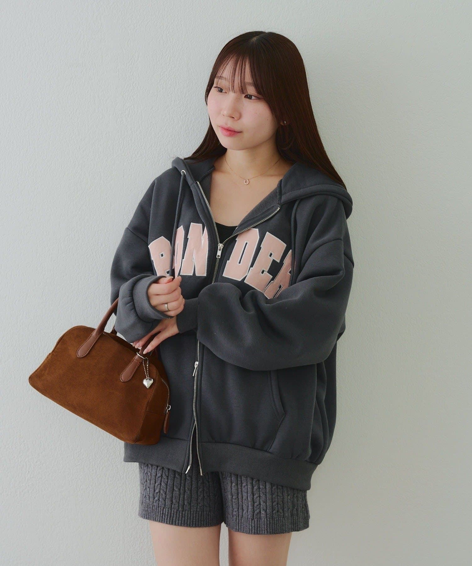 ・存在感のあるロゴデザインが目を惹くジップアップパーカー