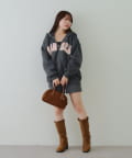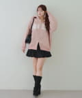 ・バルーンミニスカートにボアサンダルのトレンドライクな着こなしがイチオシ!