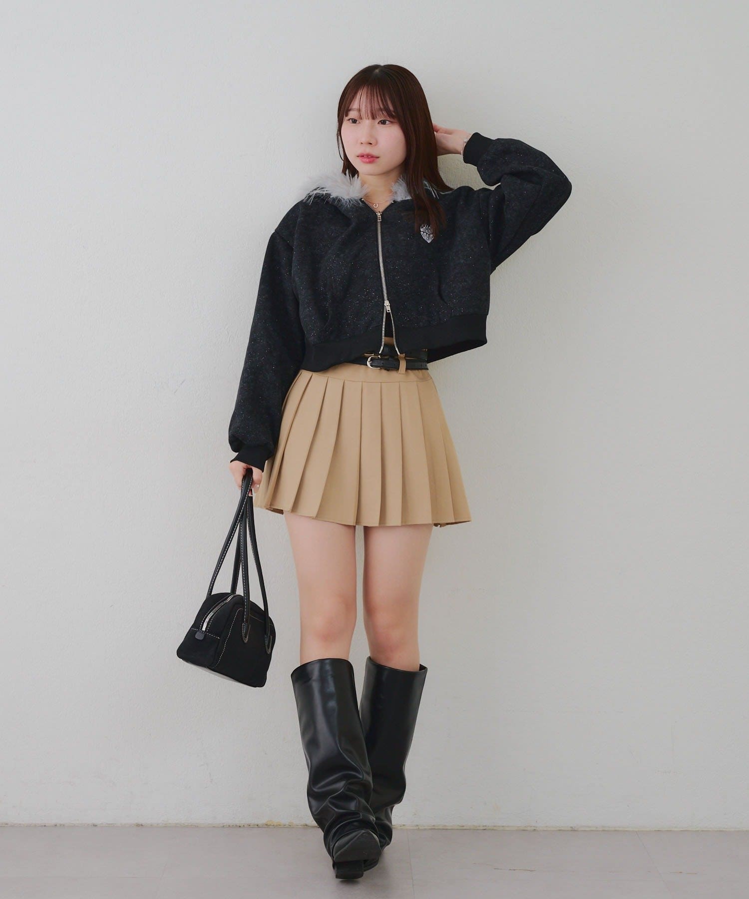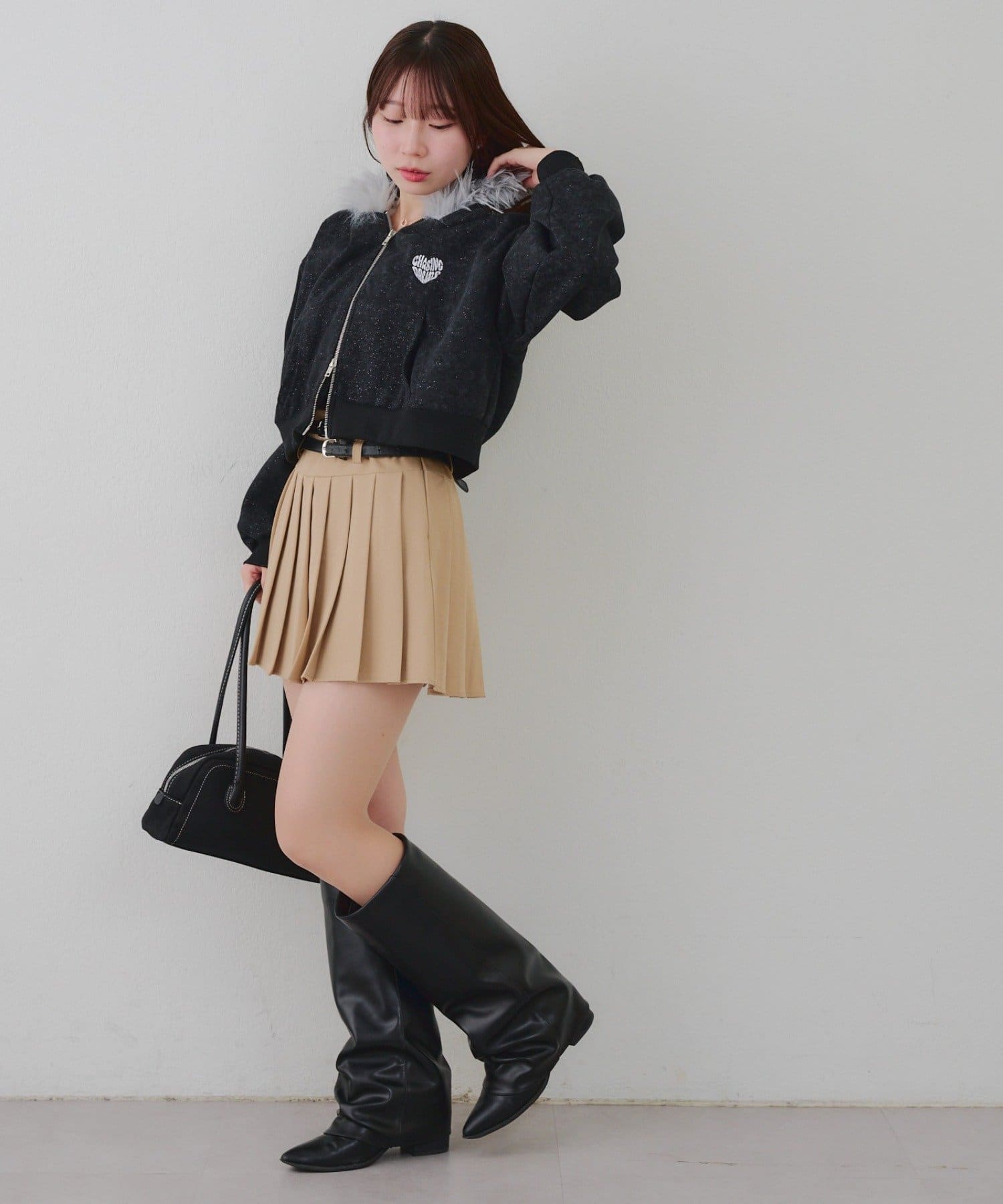 ・プリーツやティアードミニスカにロングブーツの王道カジュアルガーリーコーデ♪