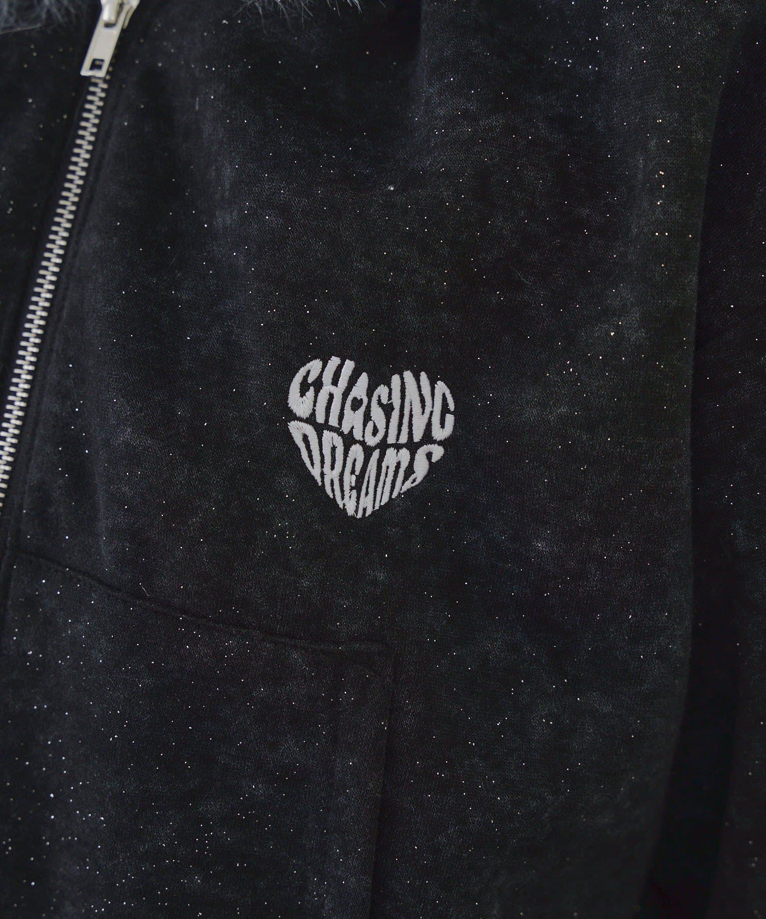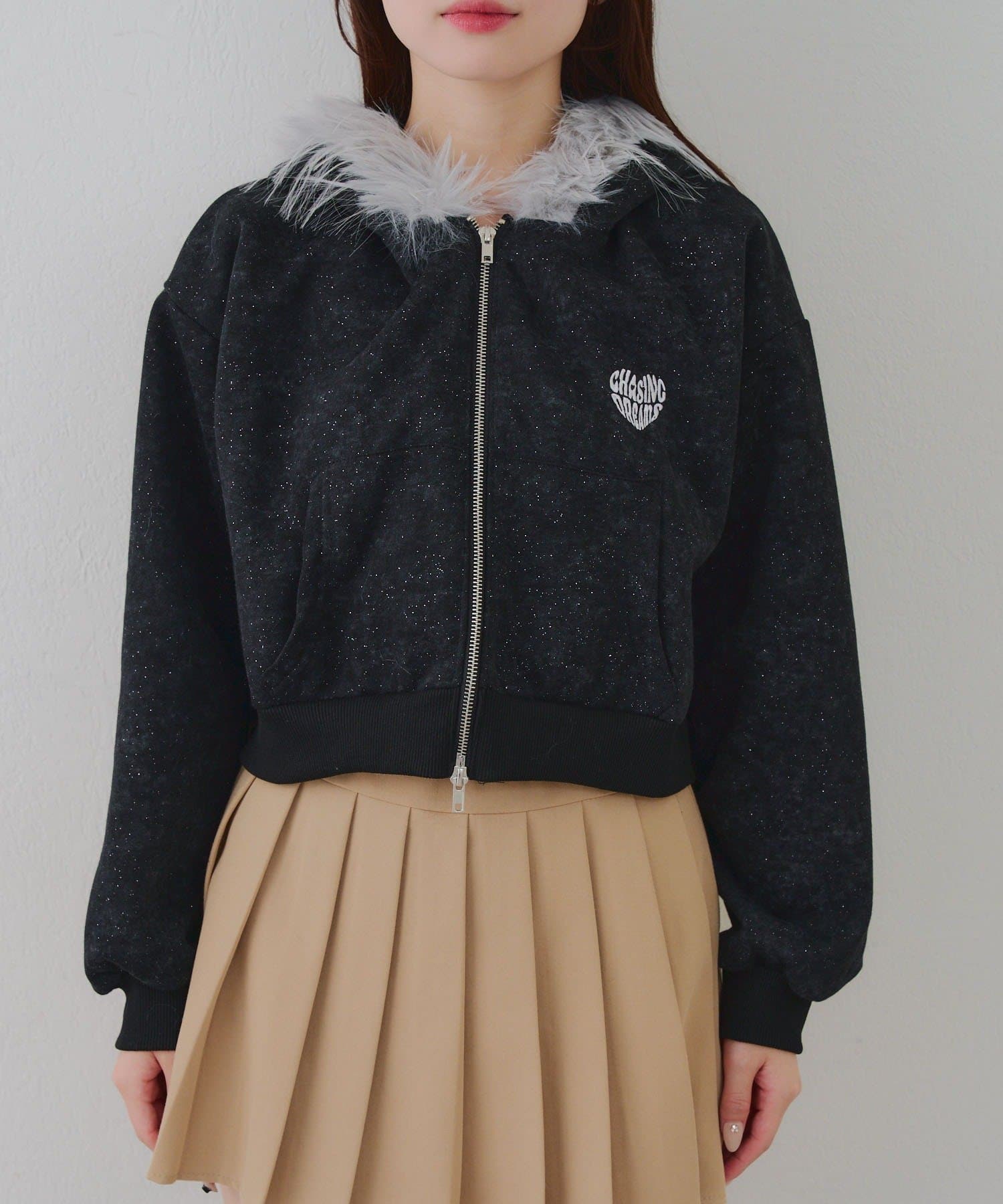 ・キラキラ素材が華やかなトレンド感満載のパーカー