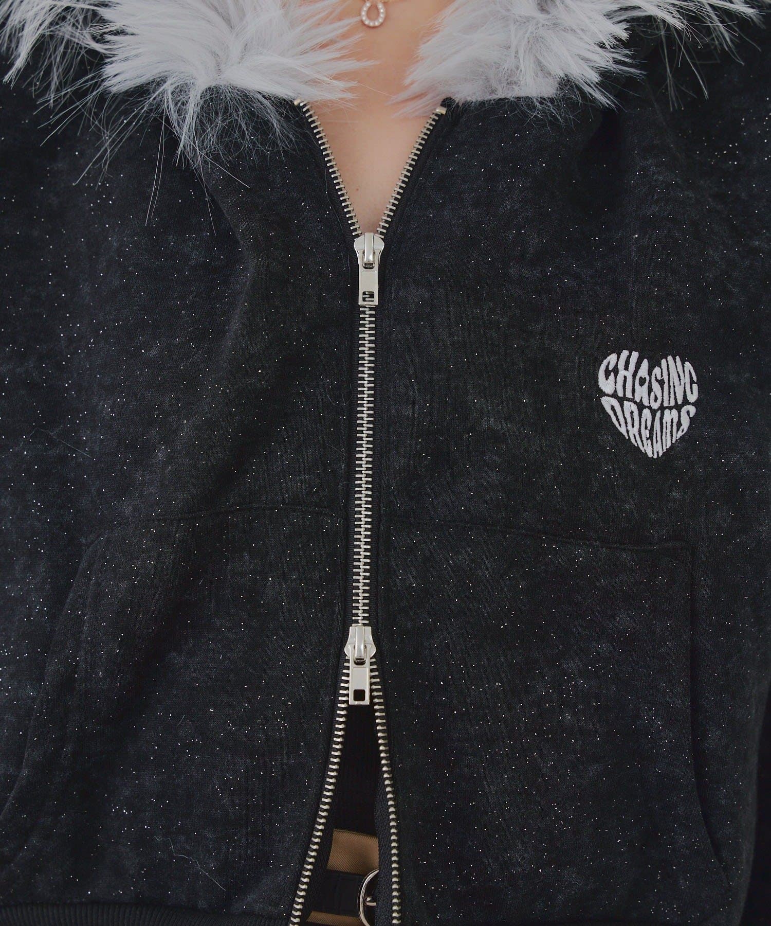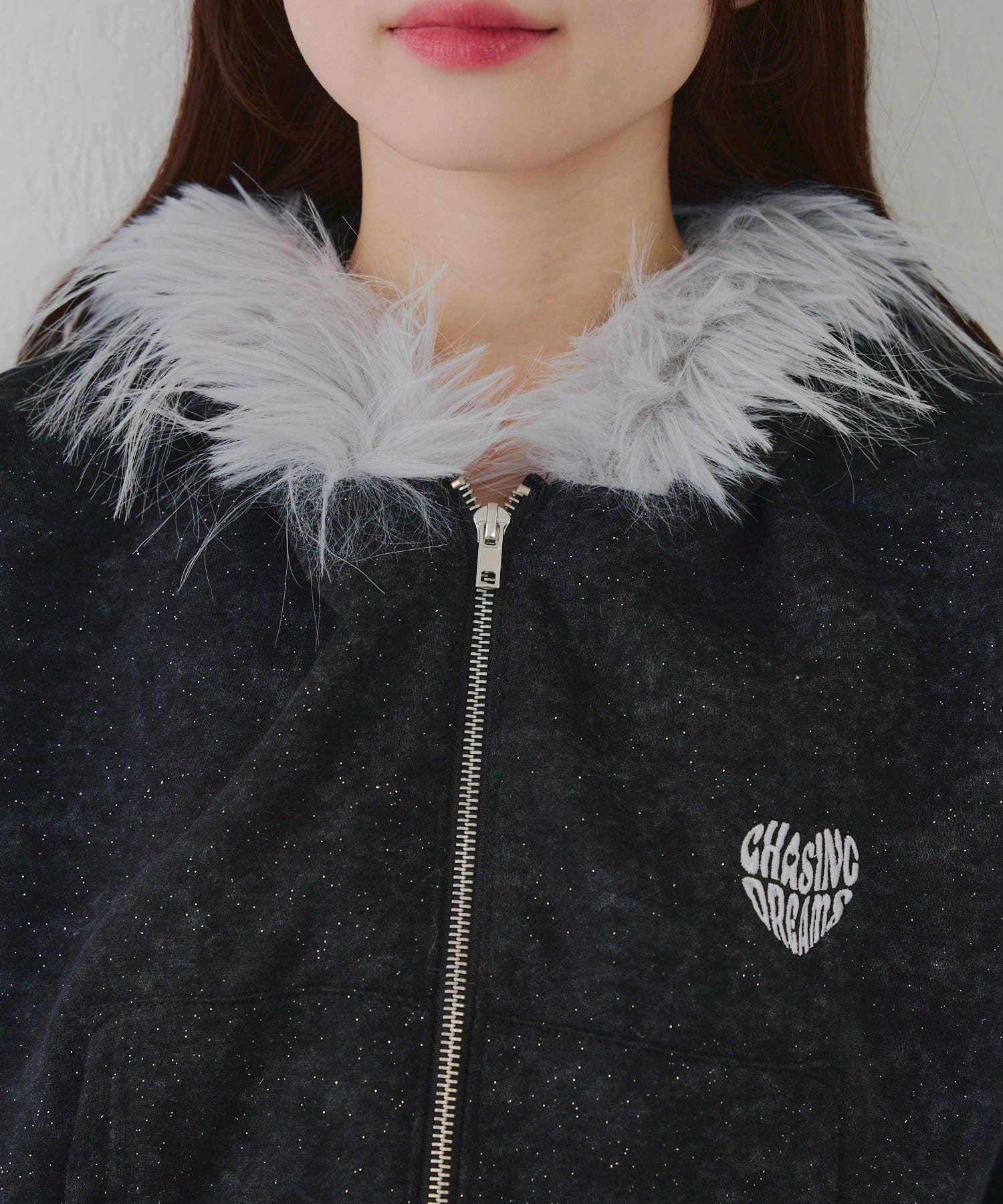 TOP > NICE CLAUP / OLIVE des OLIVE OUTLET > レディース > トップス > パーカー/アノラック > 【RMAF】フードファー付キラキラパーカー