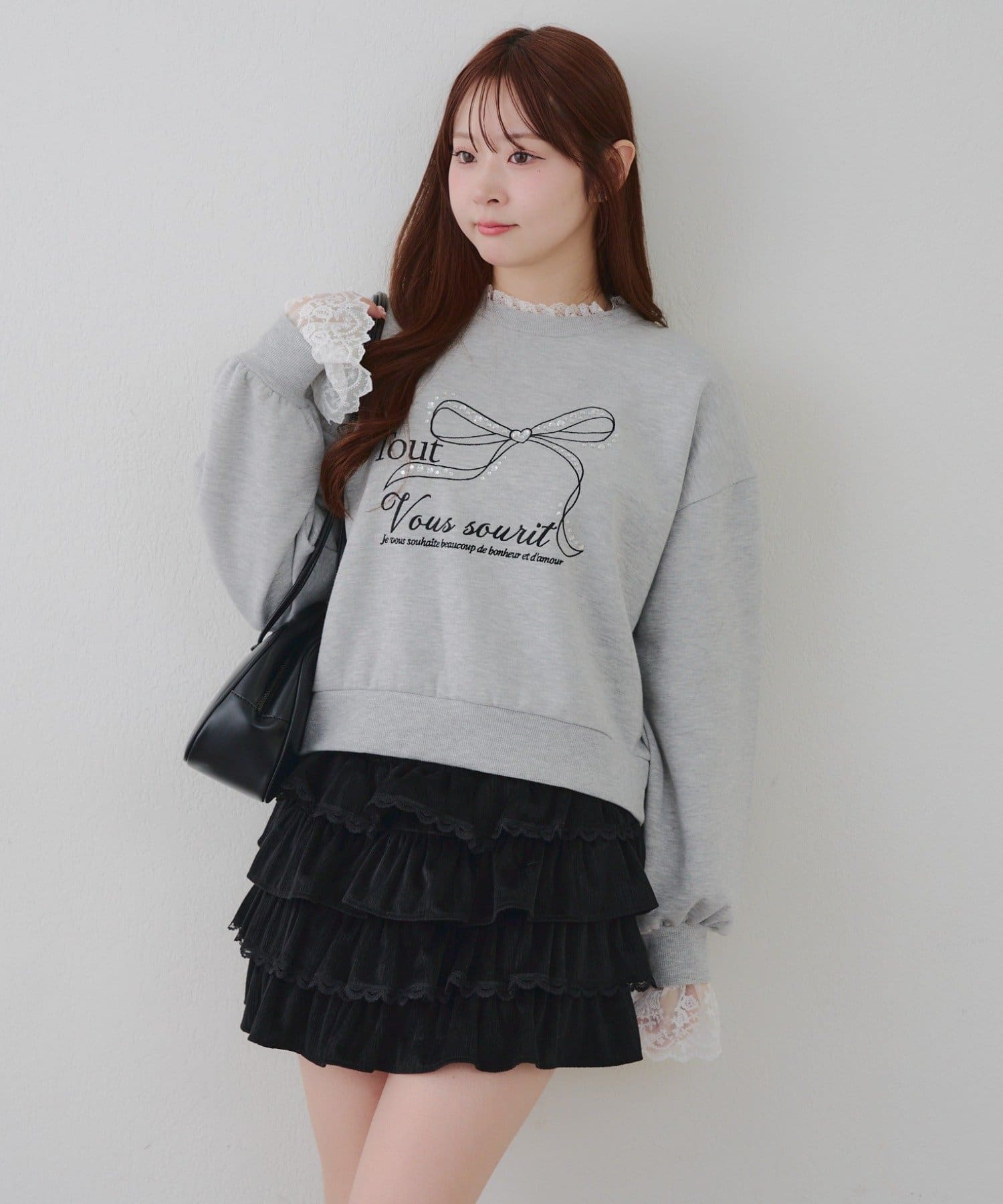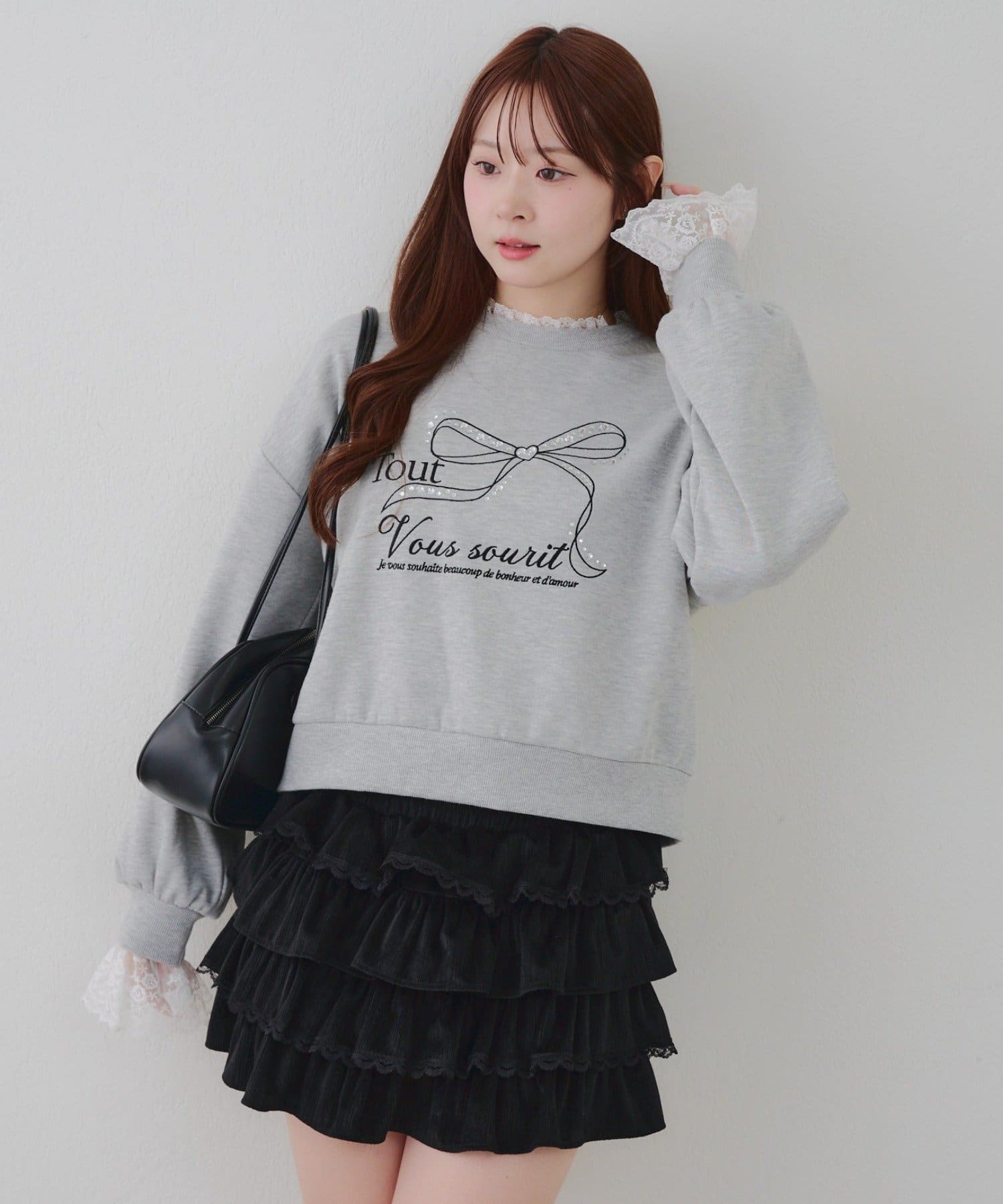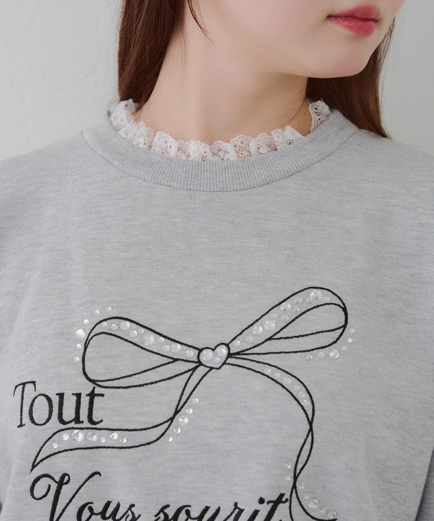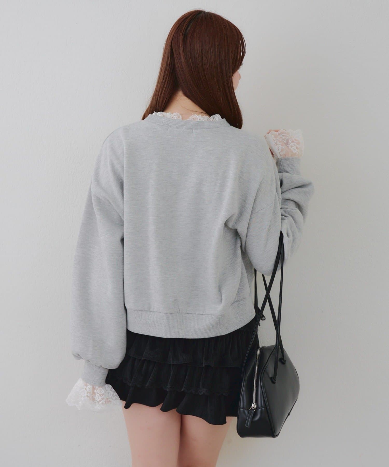 TOP > NICE CLAUP / OLIVE des OLIVE OUTLET > レディース > トップス > Tシャツ/カットソー > 【RMAF】レース付ビジュースウェット