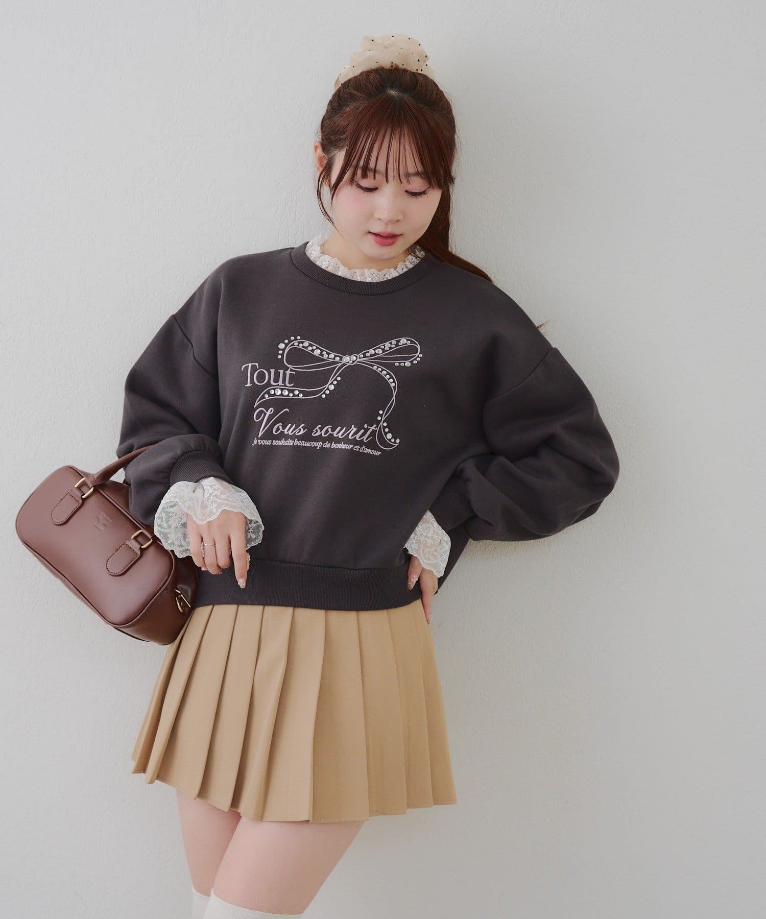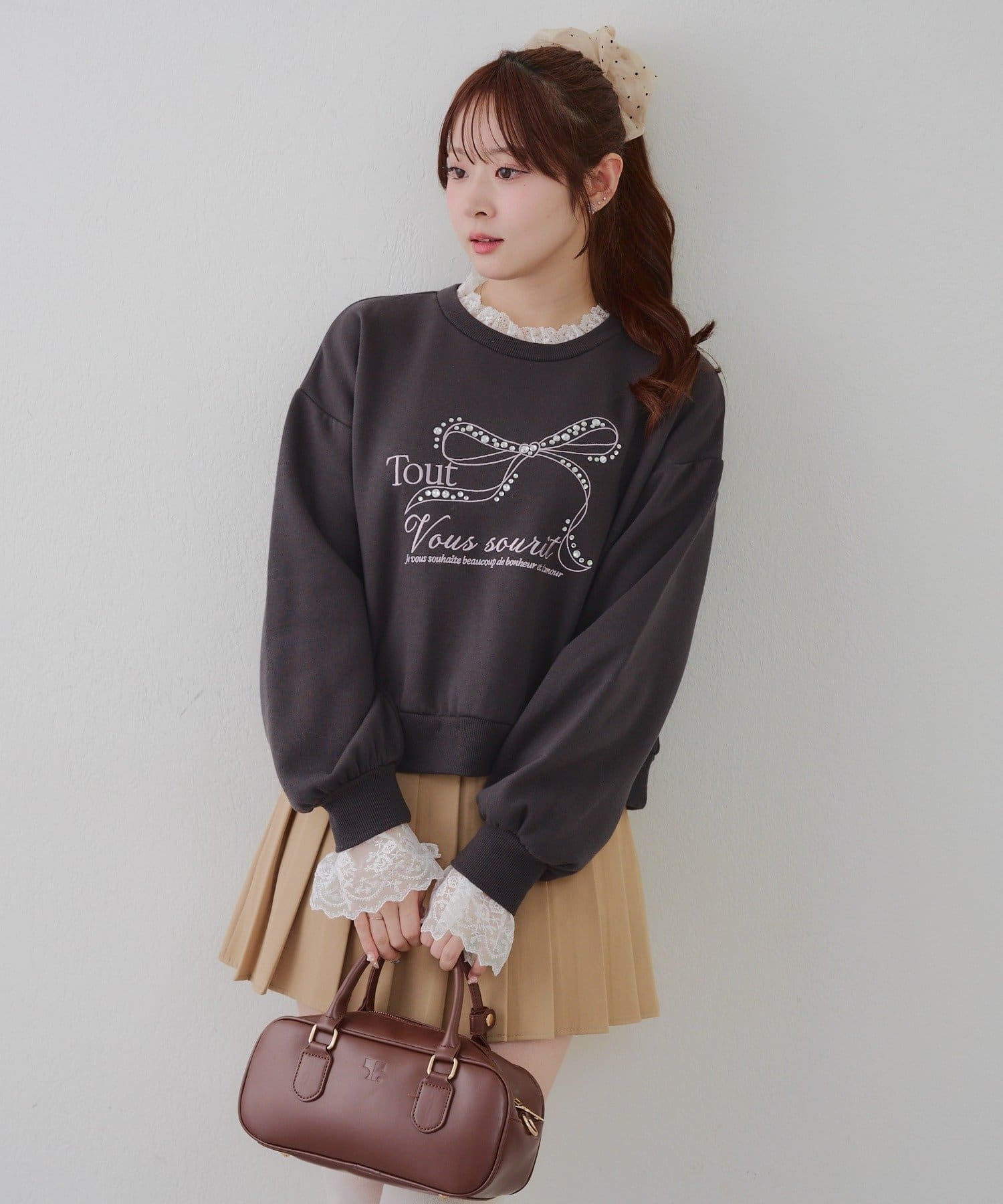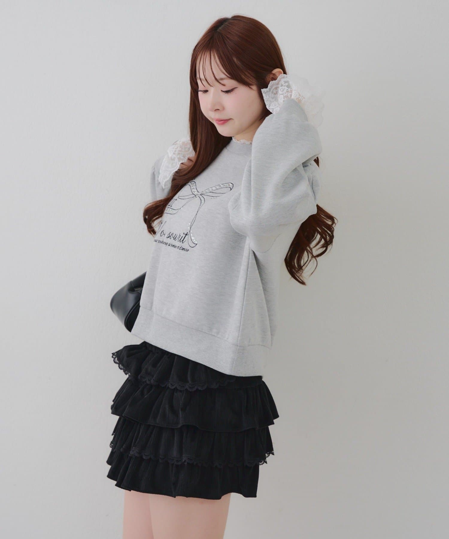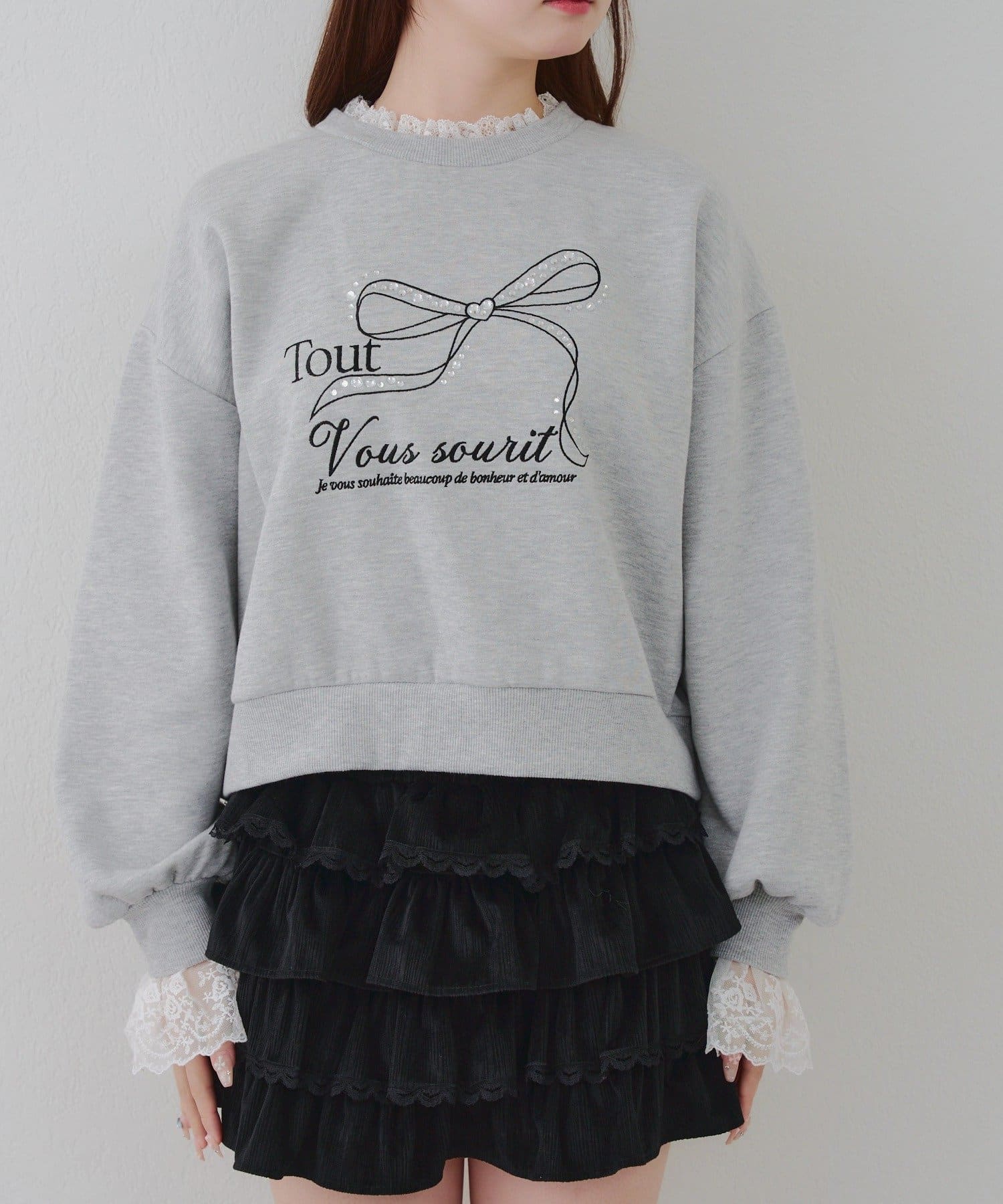 TOP > NICE CLAUP / OLIVE des OLIVE OUTLET > レディース > トップス > Tシャツ/カットソー > 【RMAF】レース付ビジュースウェット