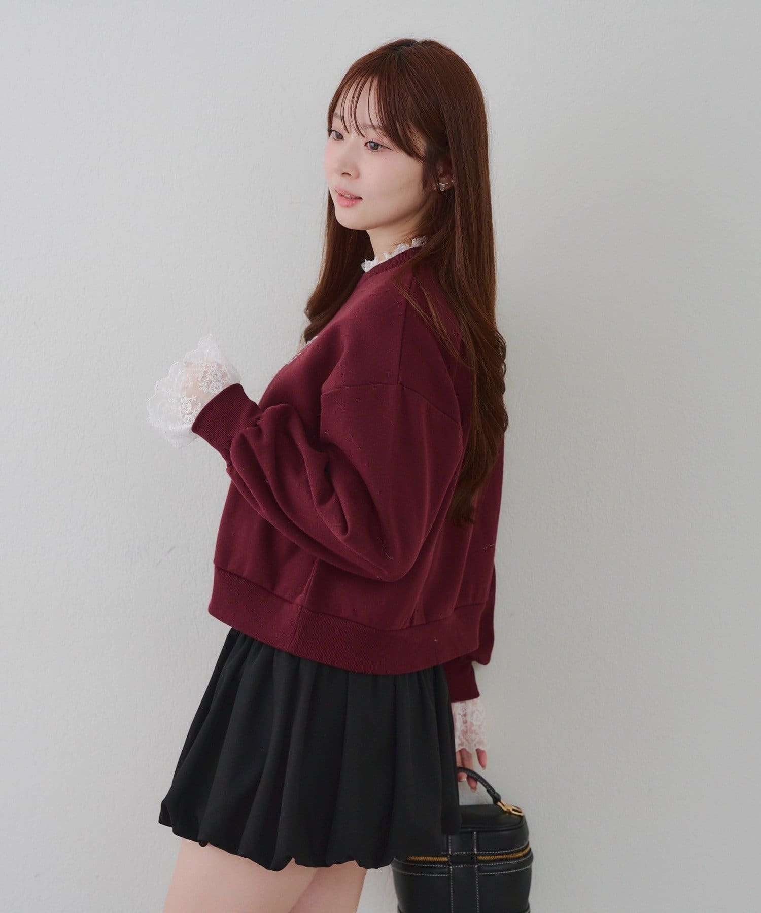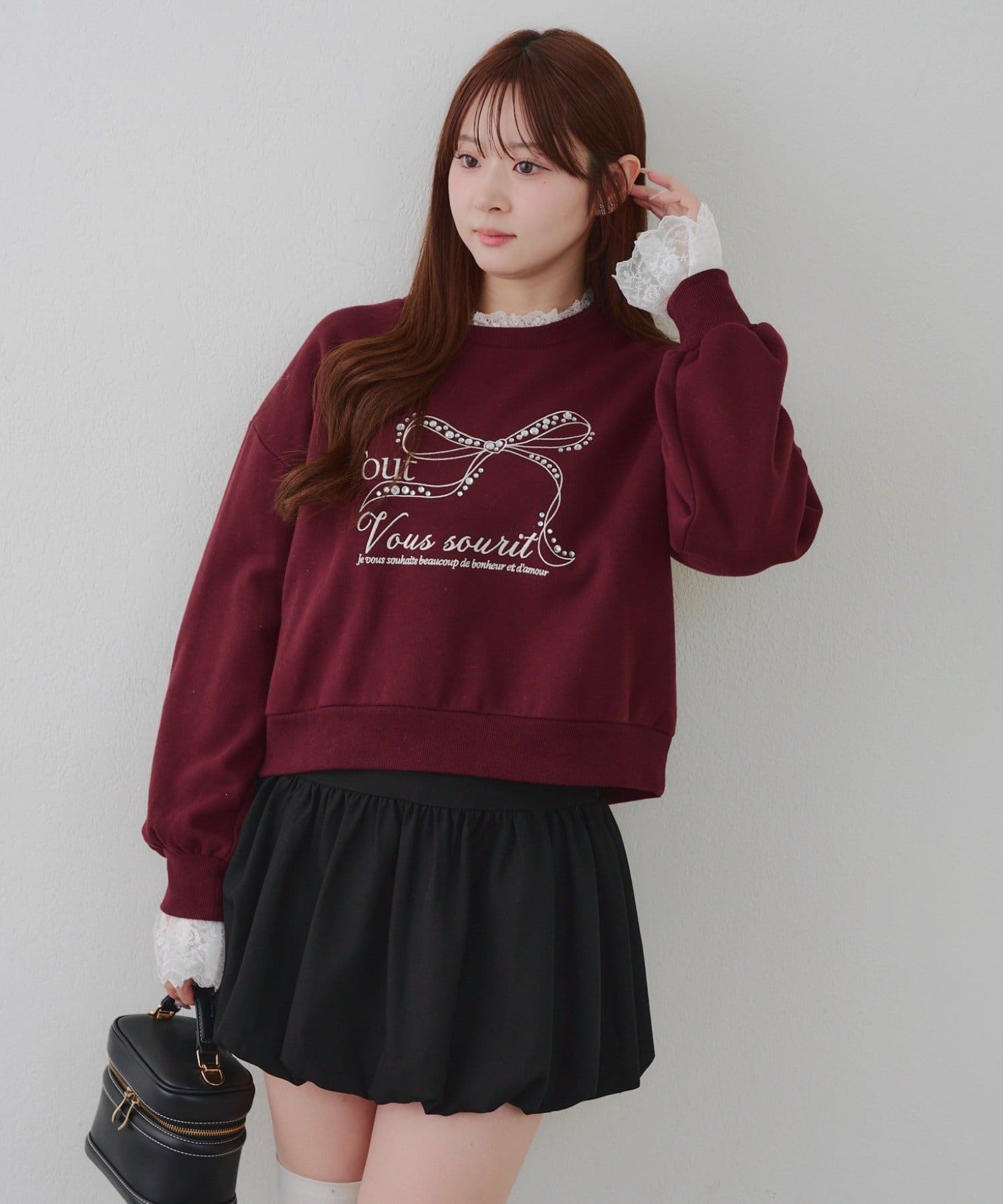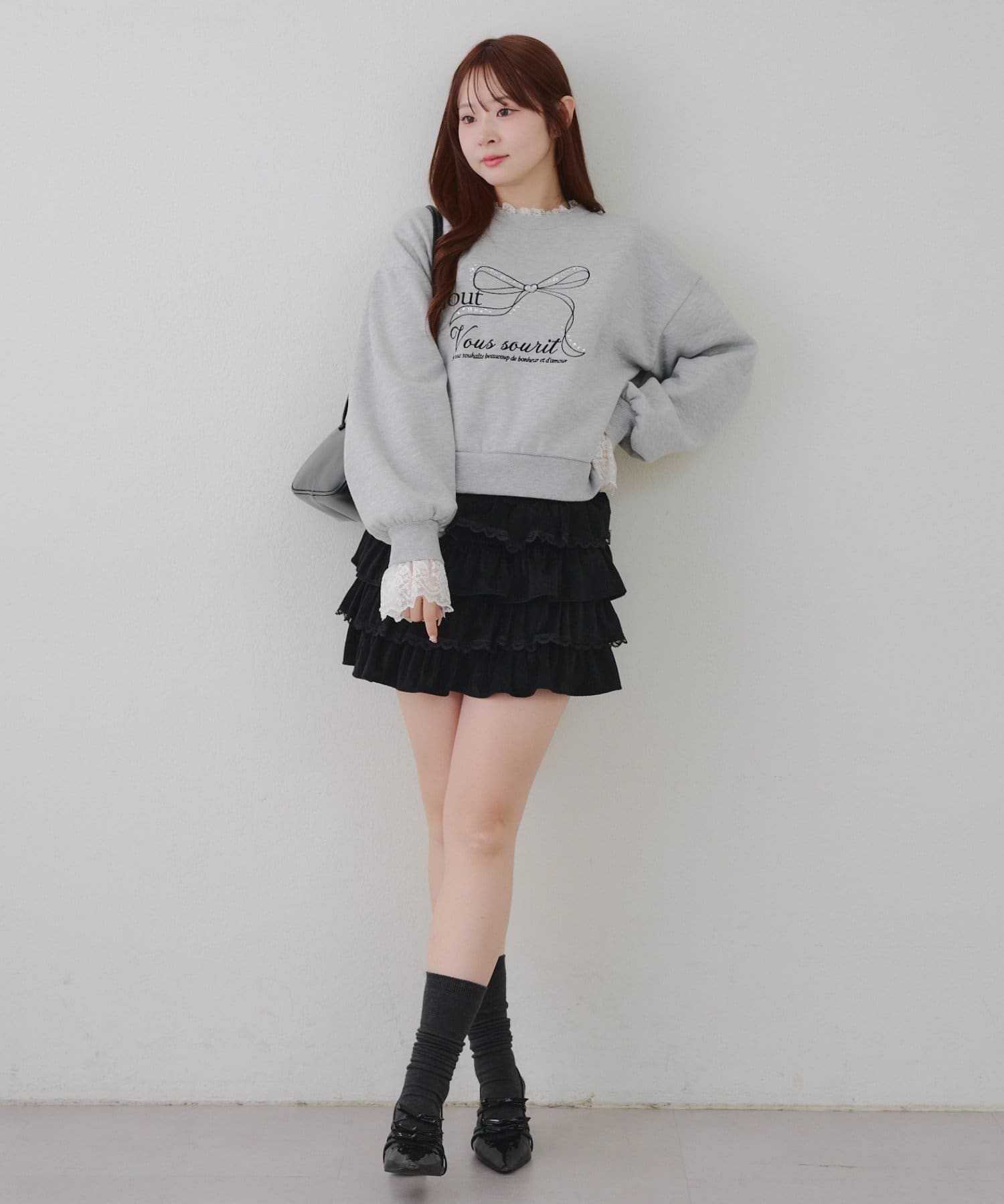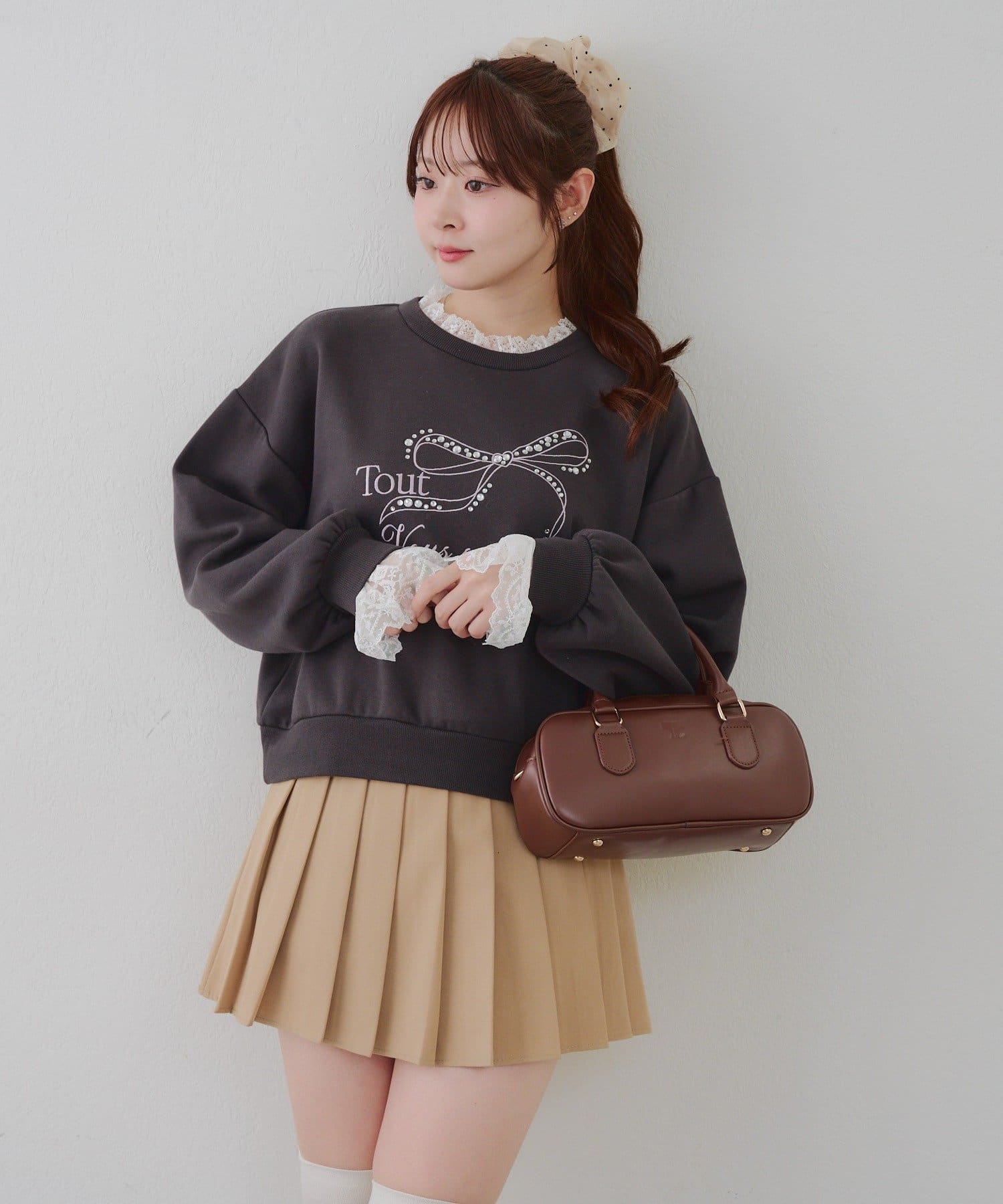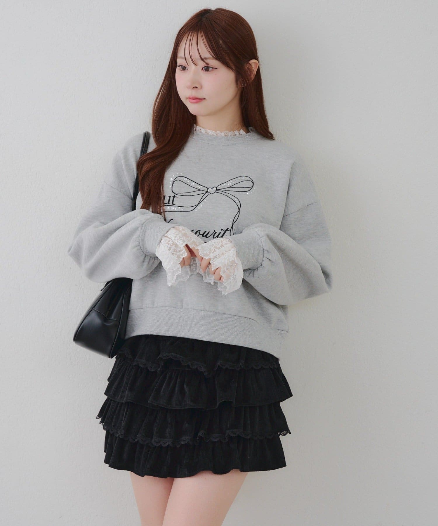 TOP > NICE CLAUP / OLIVE des OLIVE OUTLET > レディース > トップス > Tシャツ/カットソー > 【RMAF】レース付ビジュースウェット