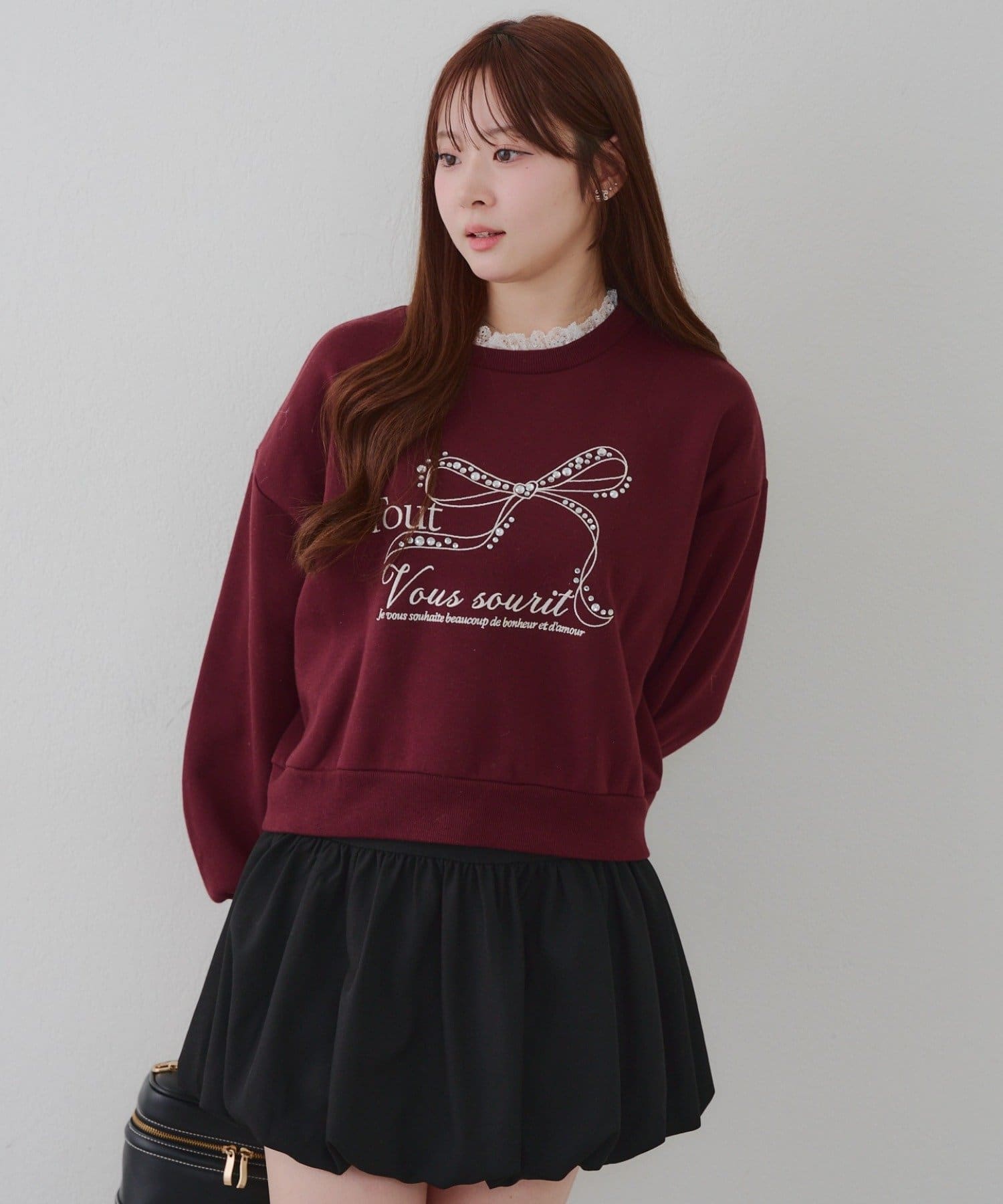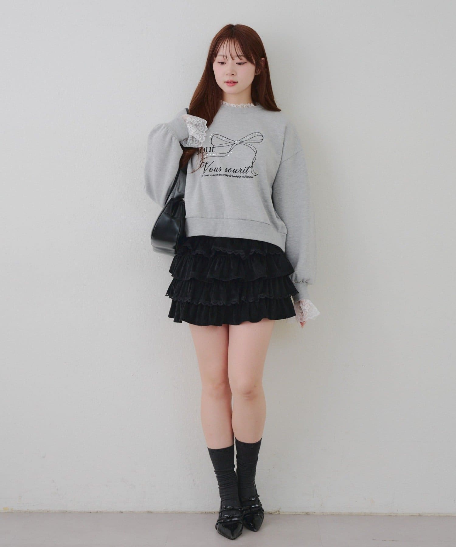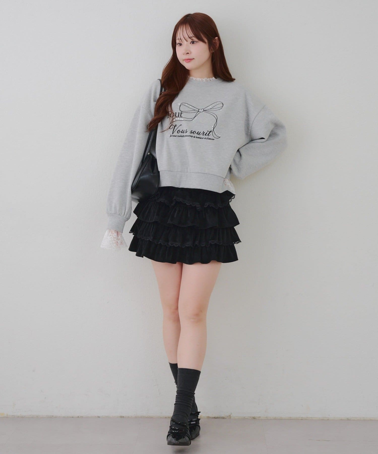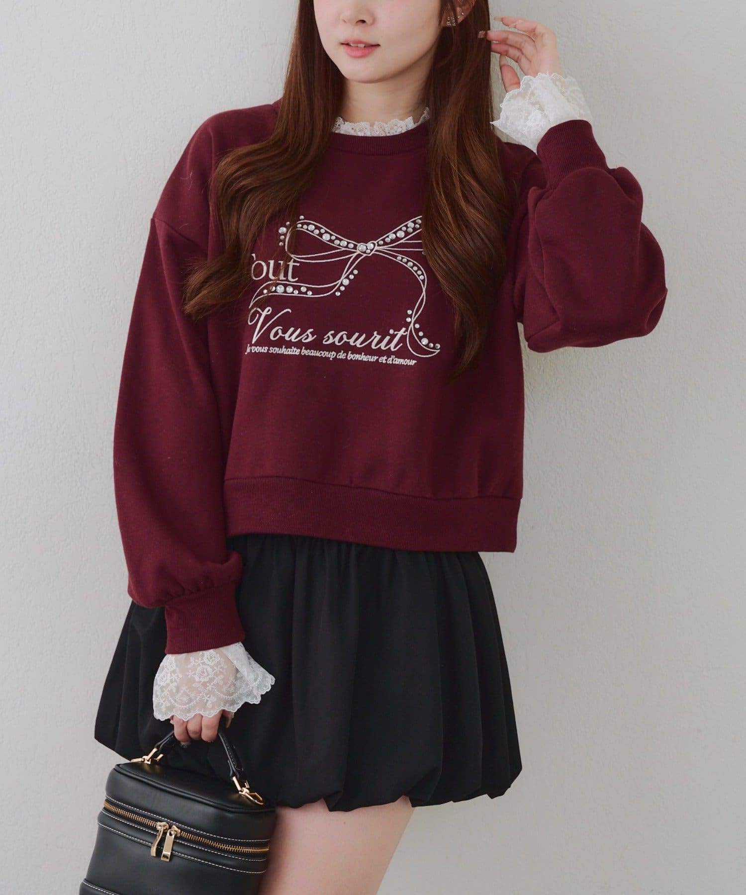 TOP > NICE CLAUP / OLIVE des OLIVE OUTLET > レディース > トップス > Tシャツ/カットソー > 【RMAF】レース付ビジュースウェット