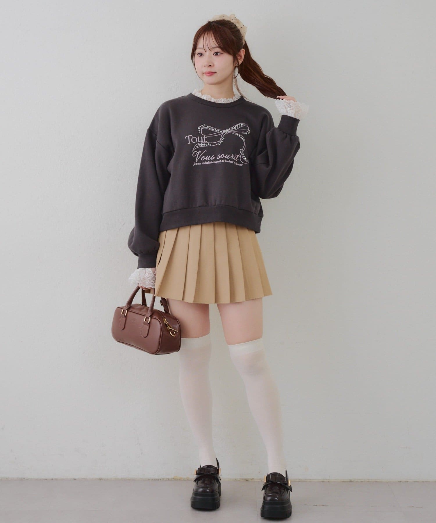 ・ミニスカート合わせでガーリーなカジュアルコーデ