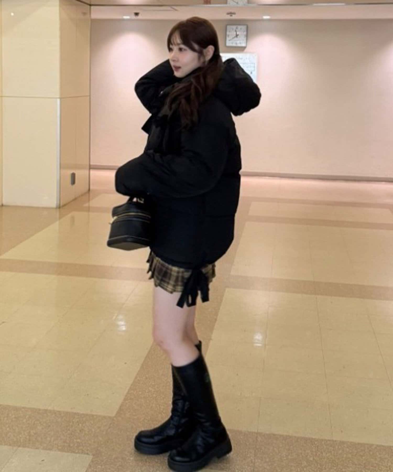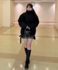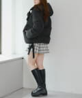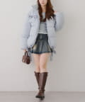 ・ミニスカートとロングブーツを合わせて、トレンド感のあるガーリースタイルに