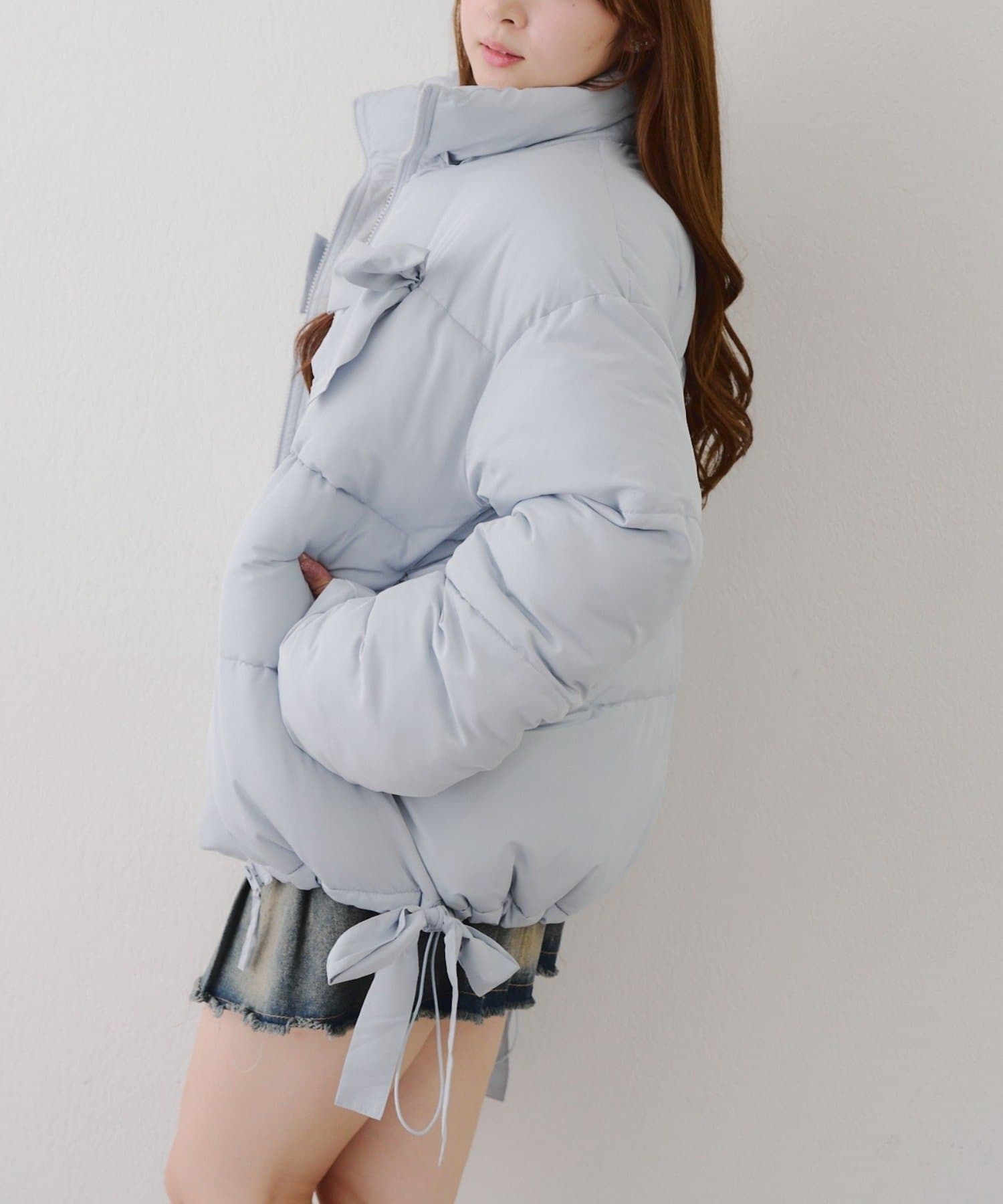 • NICE CLAUP / OLIVE des OLIVE OUTLET(ナイスクラップ  / オリーブ デ オリーブ アウトレット) 冬無双できる♡【RMAF】2WAYリボン中綿ミドル丈ブルゾン