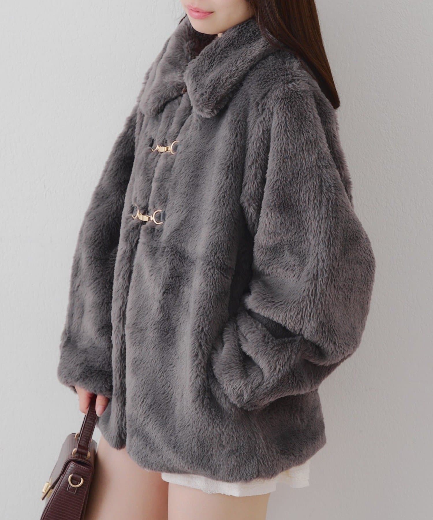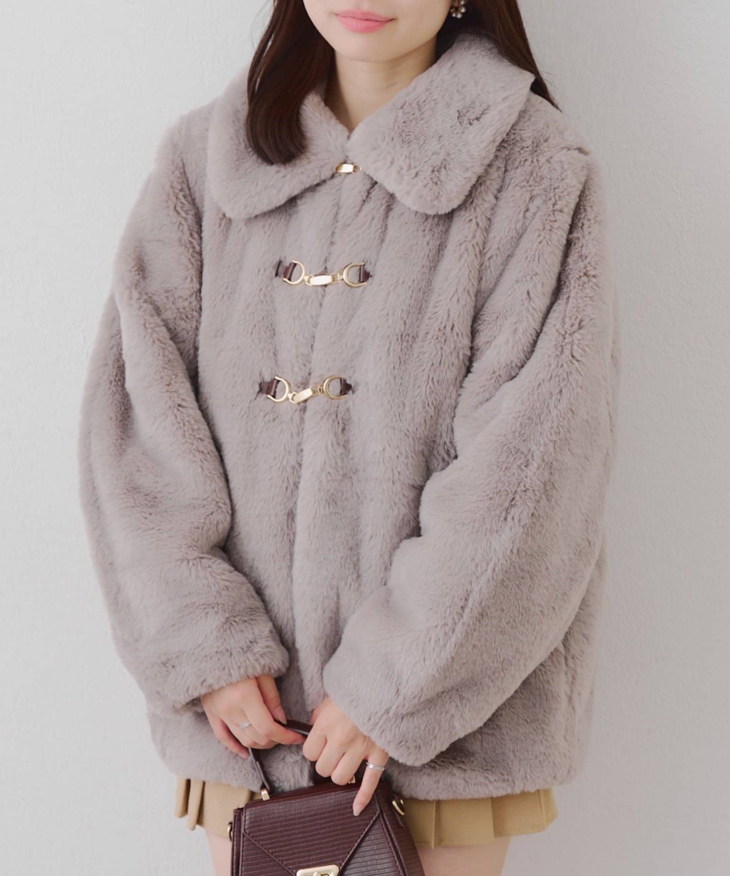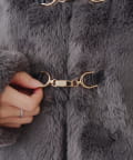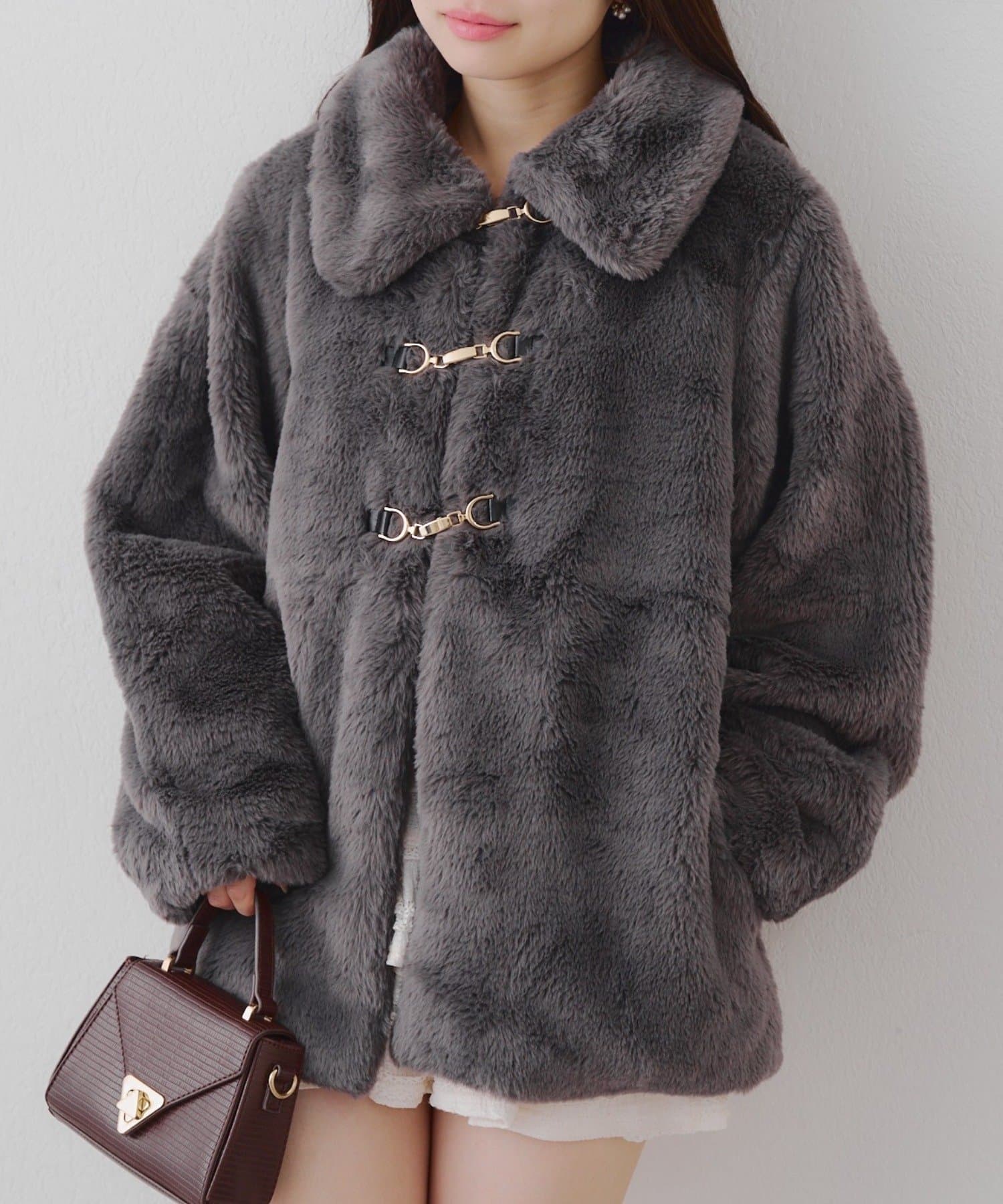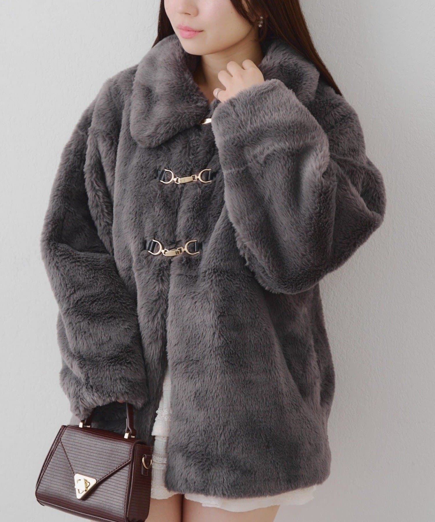 ・ビット付きデザインで高級感のあるフェイクファーコート