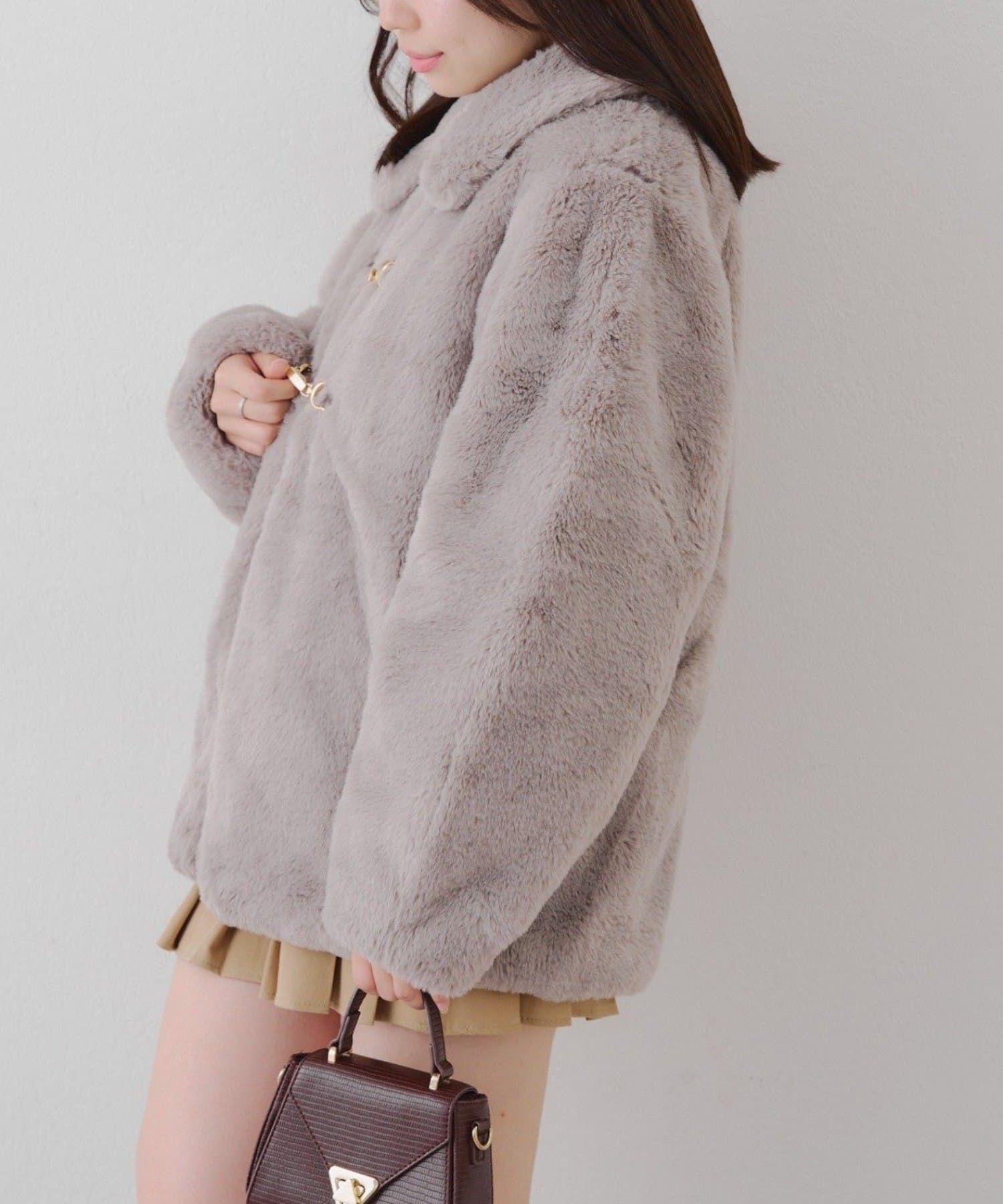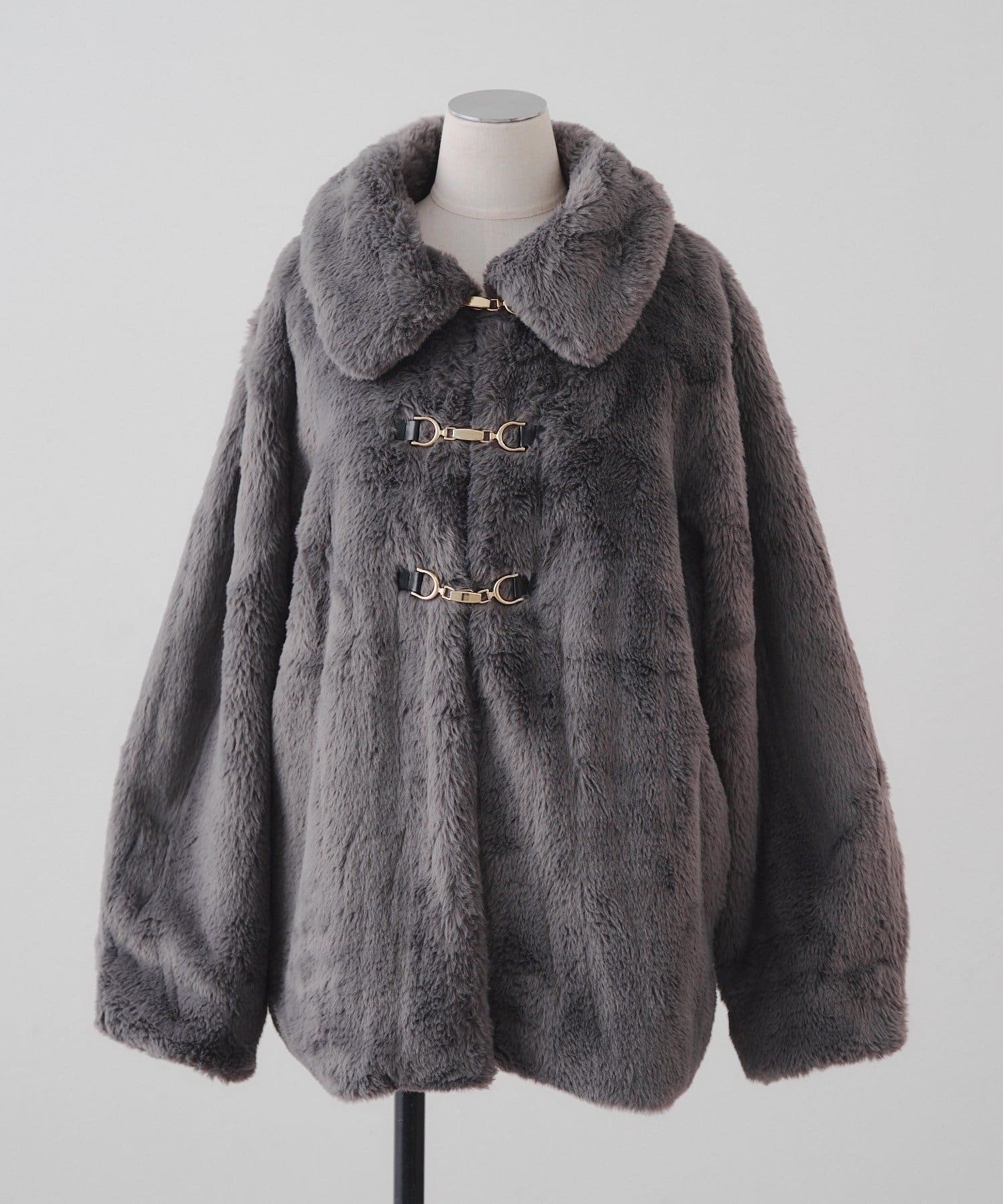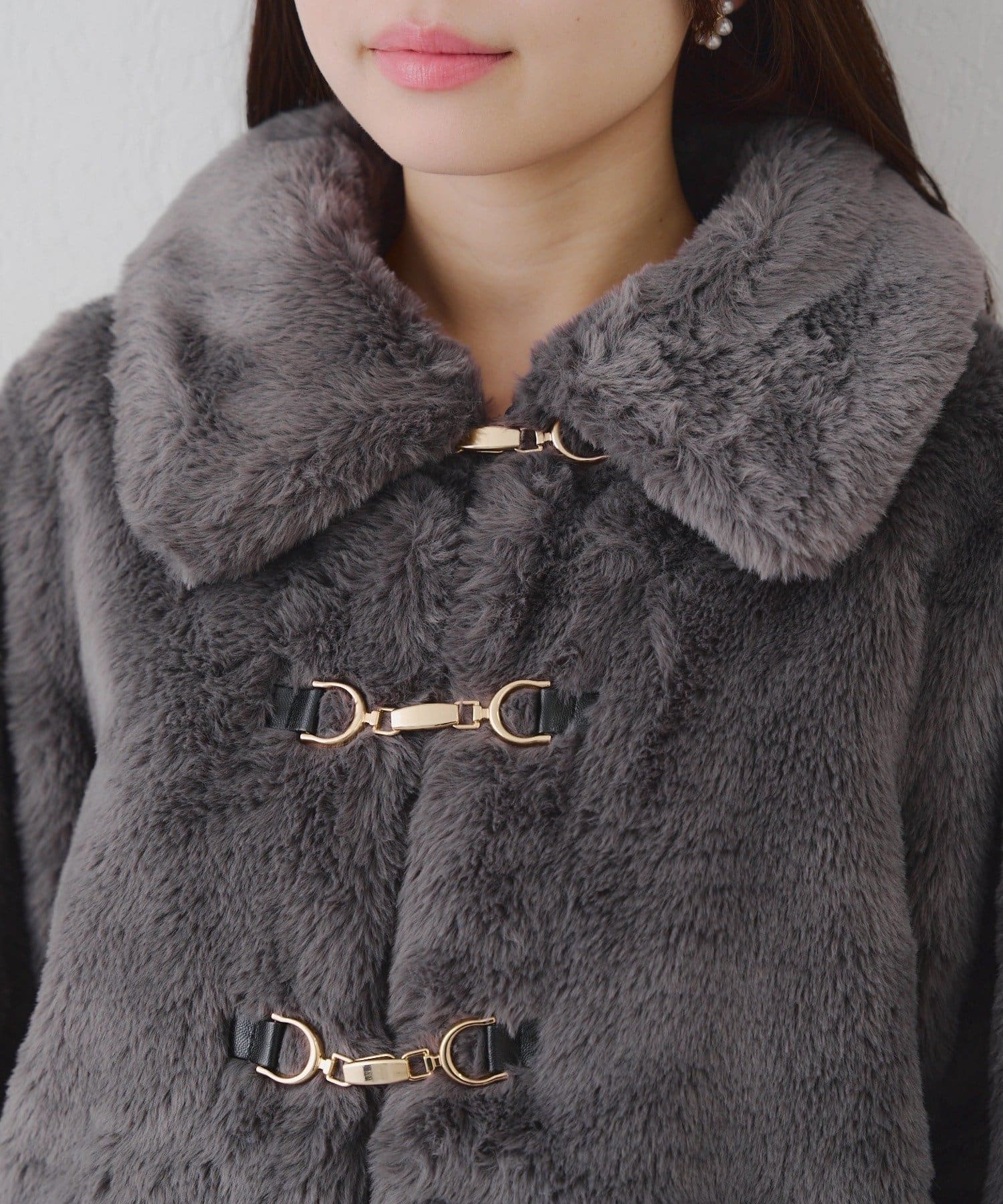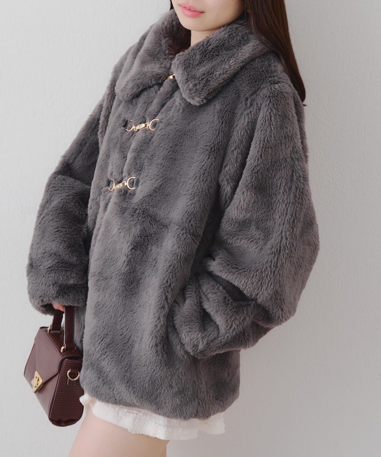・ビット付きデザインで高級感のあるフェイクファーコート