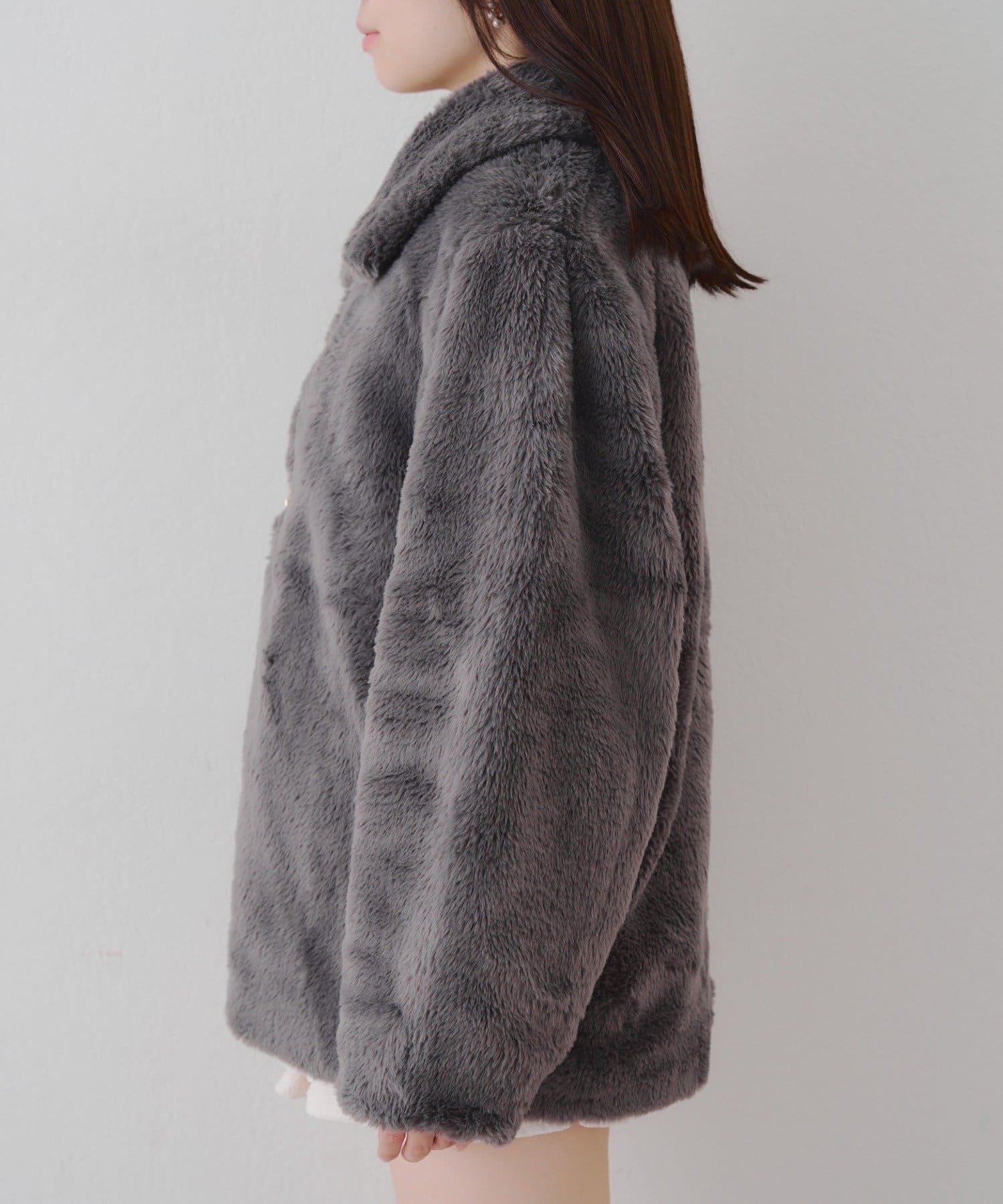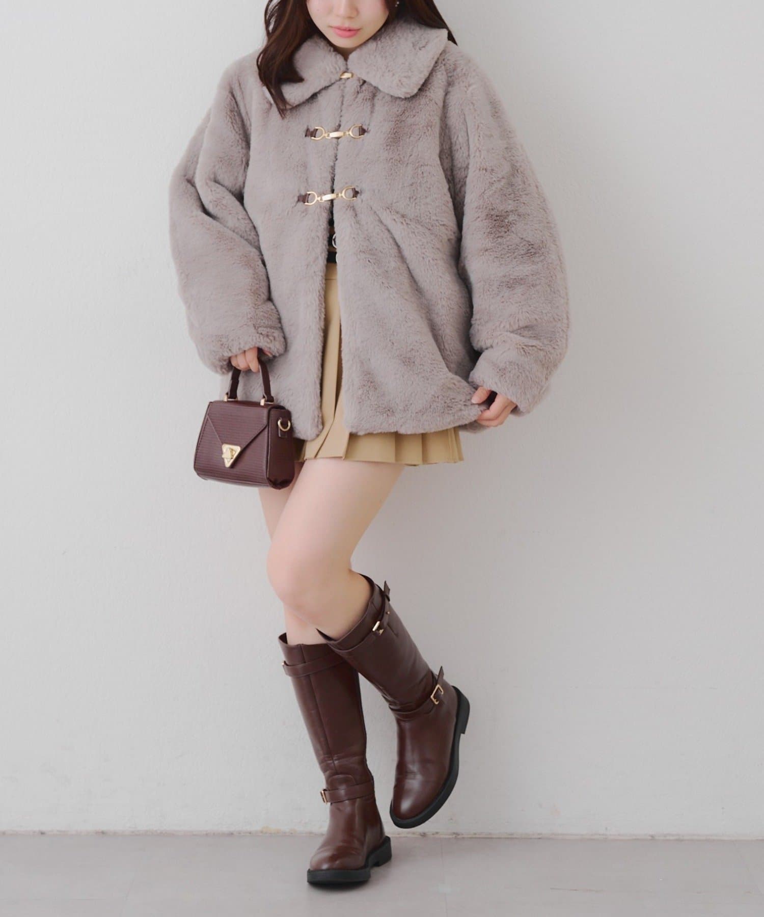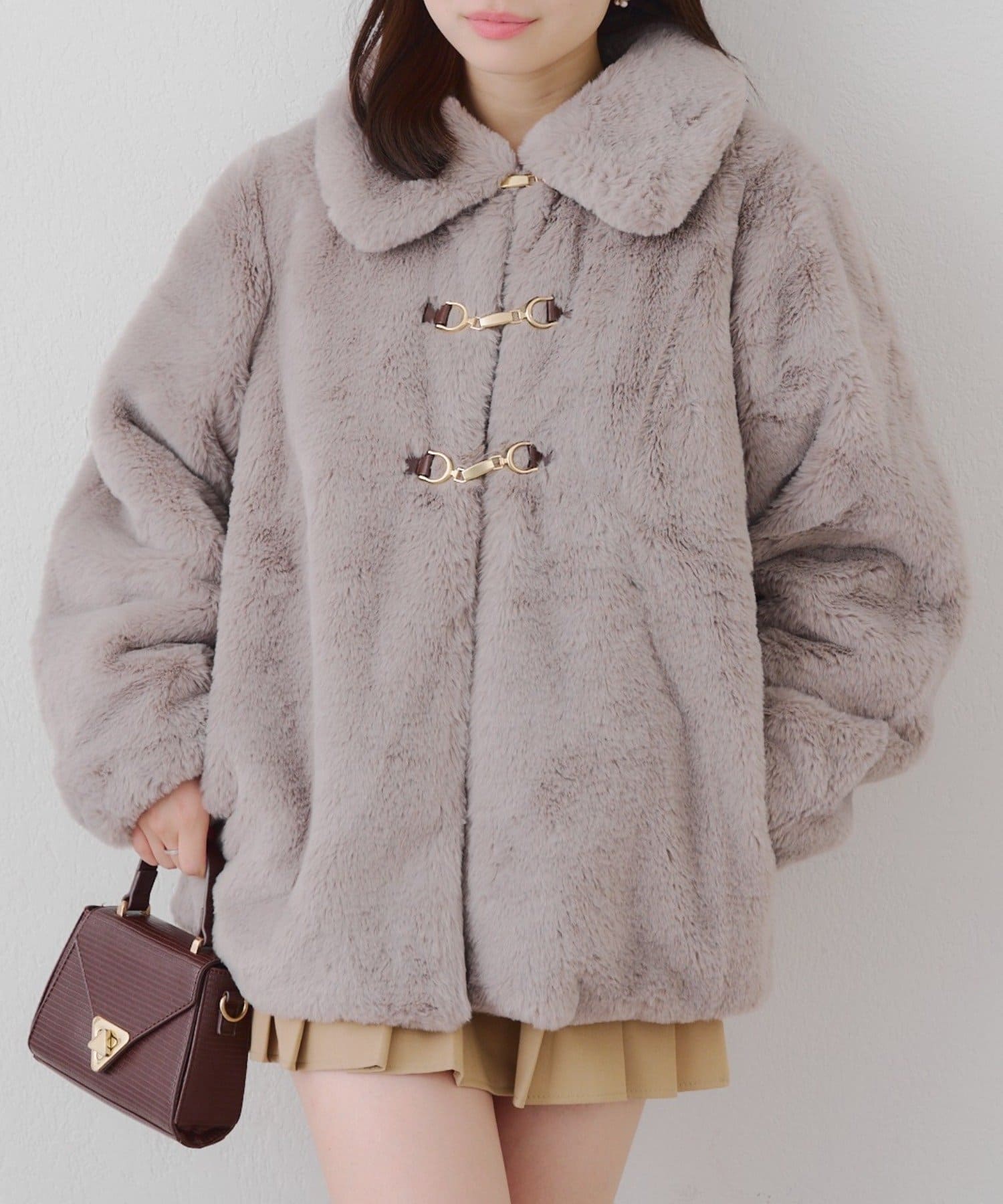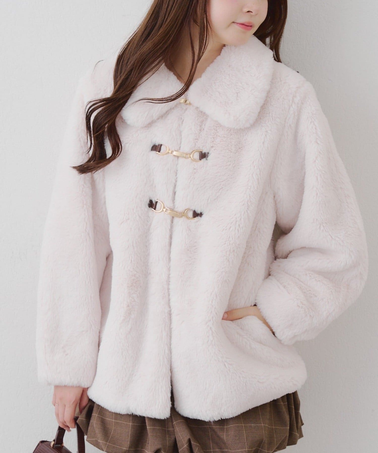 ・ビット付きデザインで高級感のあるフェイクファーコート