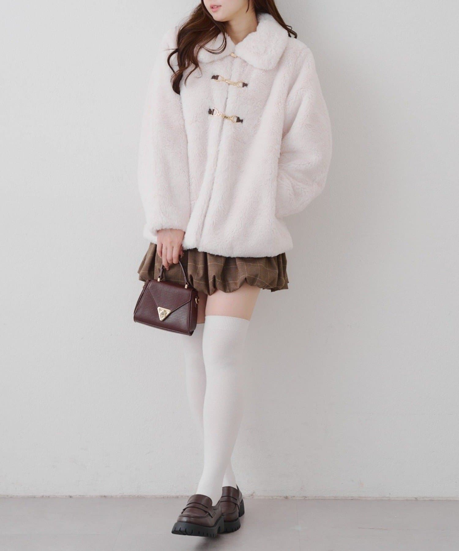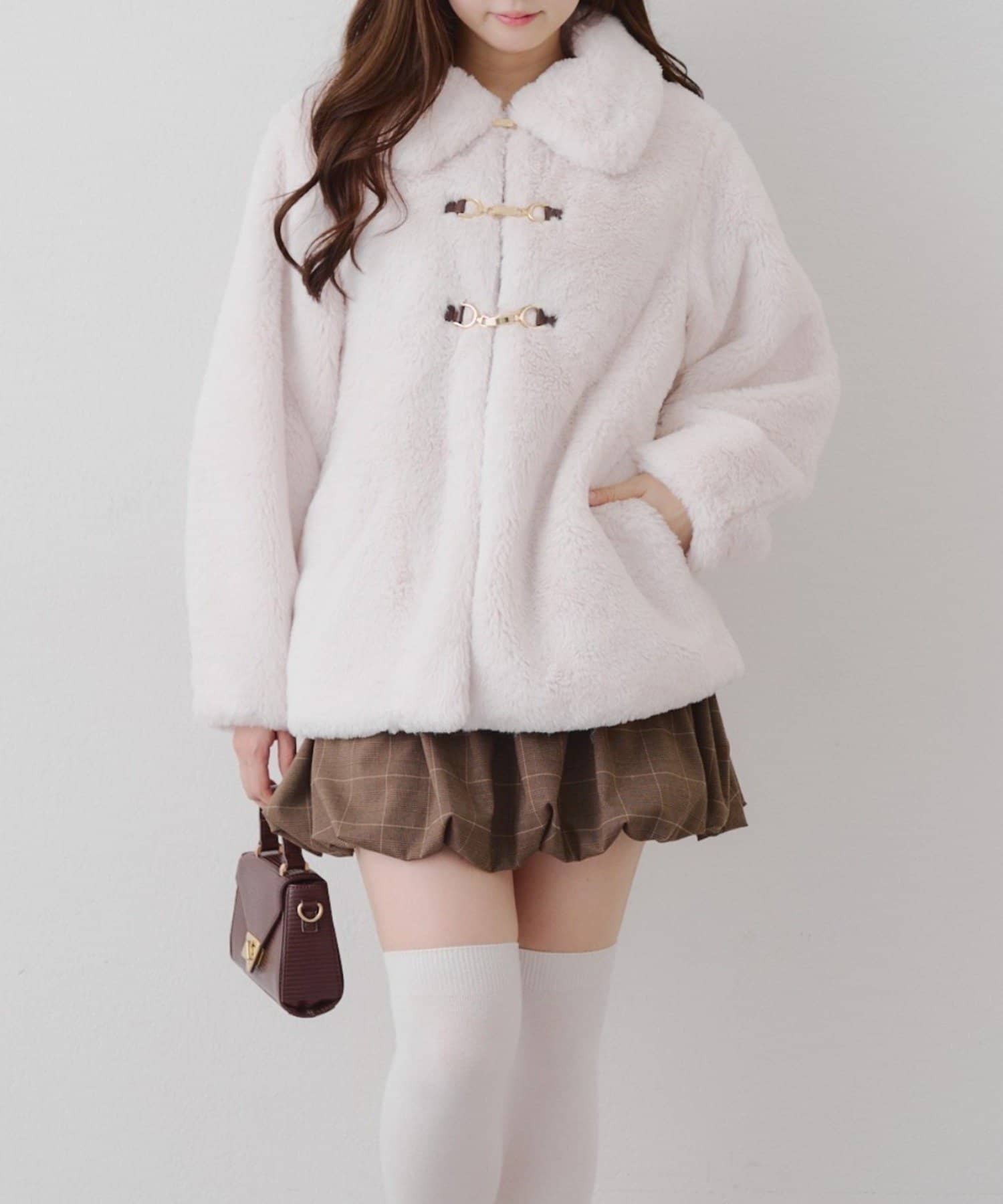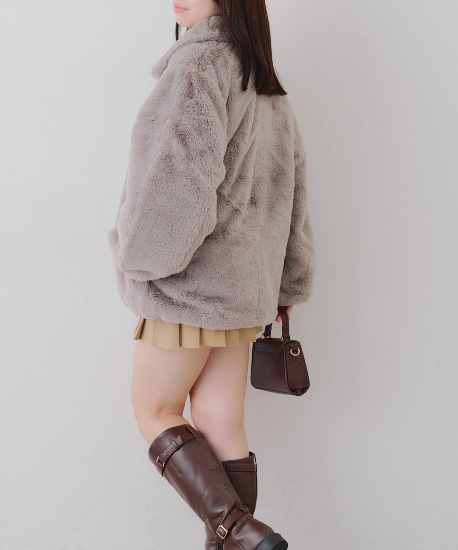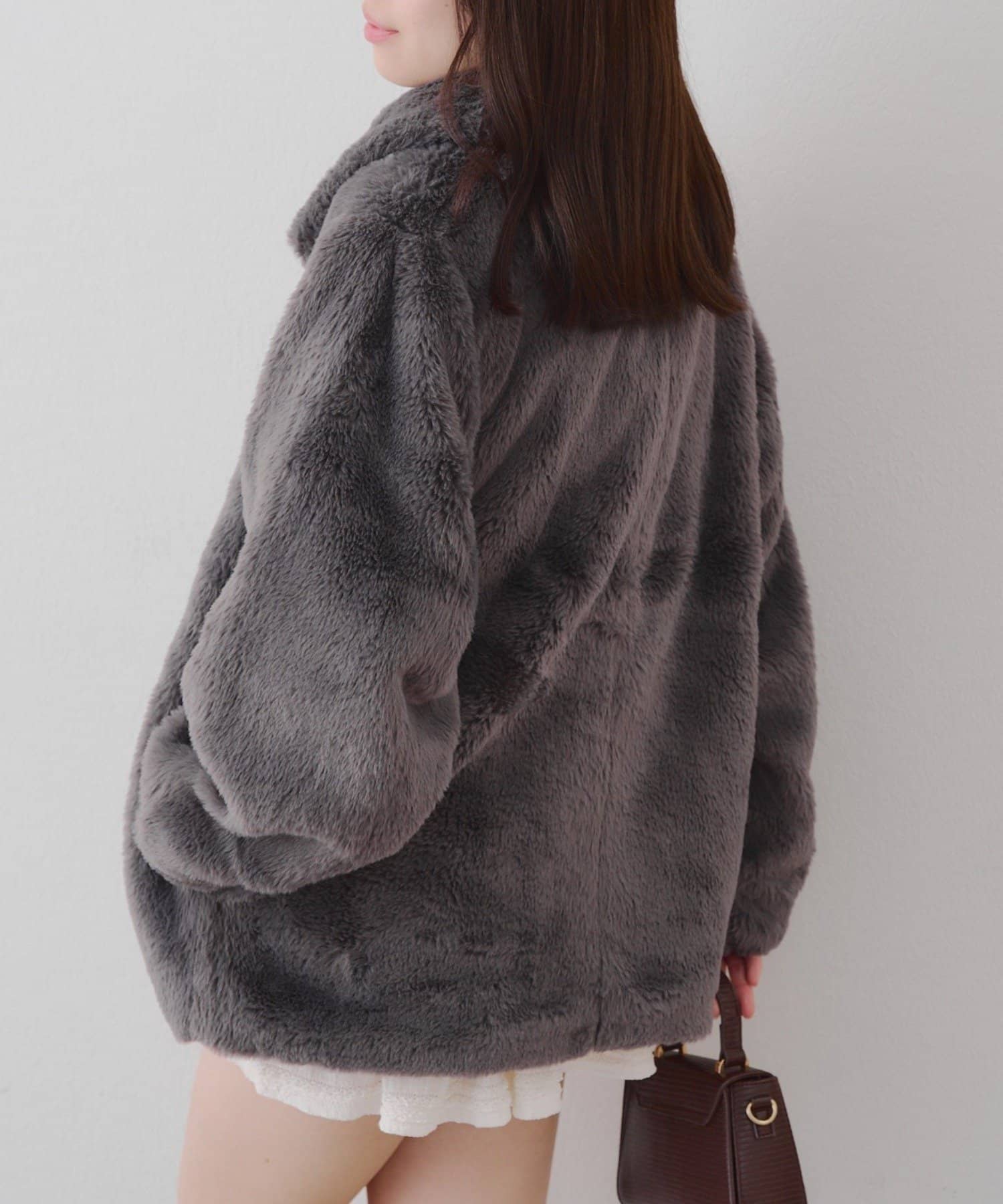 ・ビット付きデザインで高級感のあるフェイクファーコート