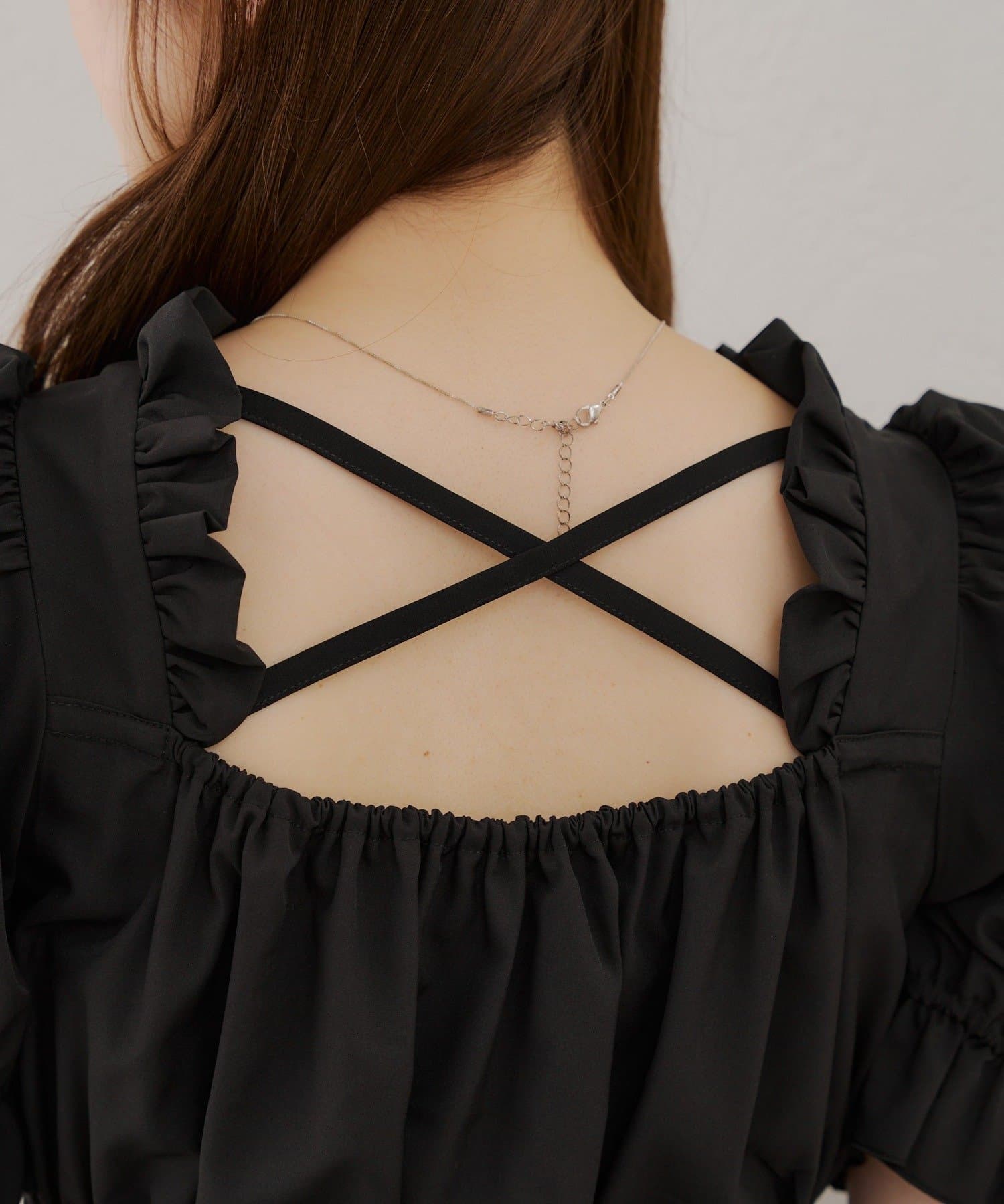 ・首周りがやや広く開いたデザインなので、アクセサリーで飾るのがマスト。