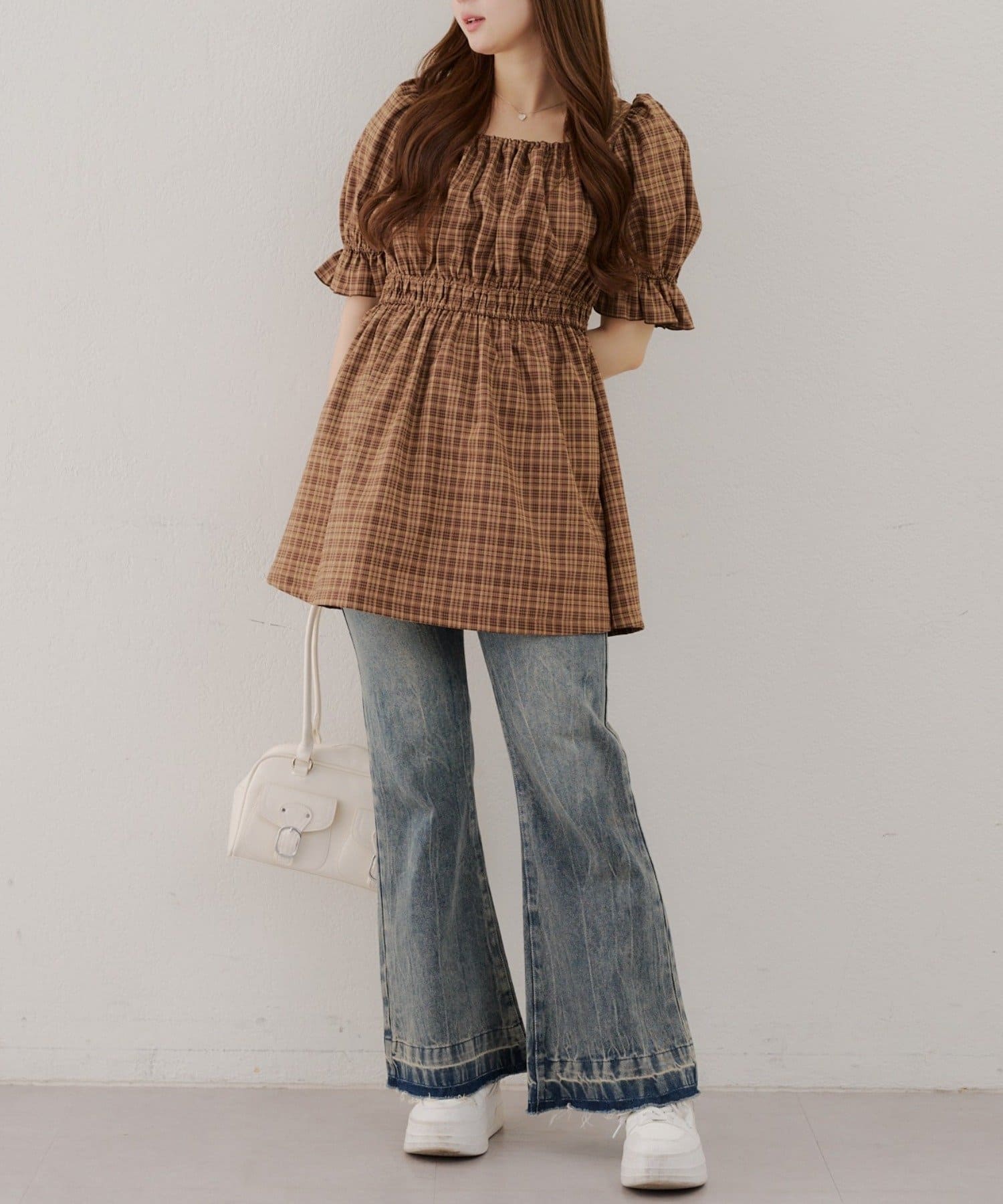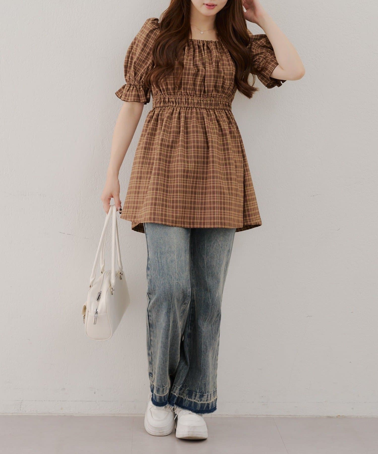 ・ウエストゴム入りで楽な着心地も兼ね備えた一枚。