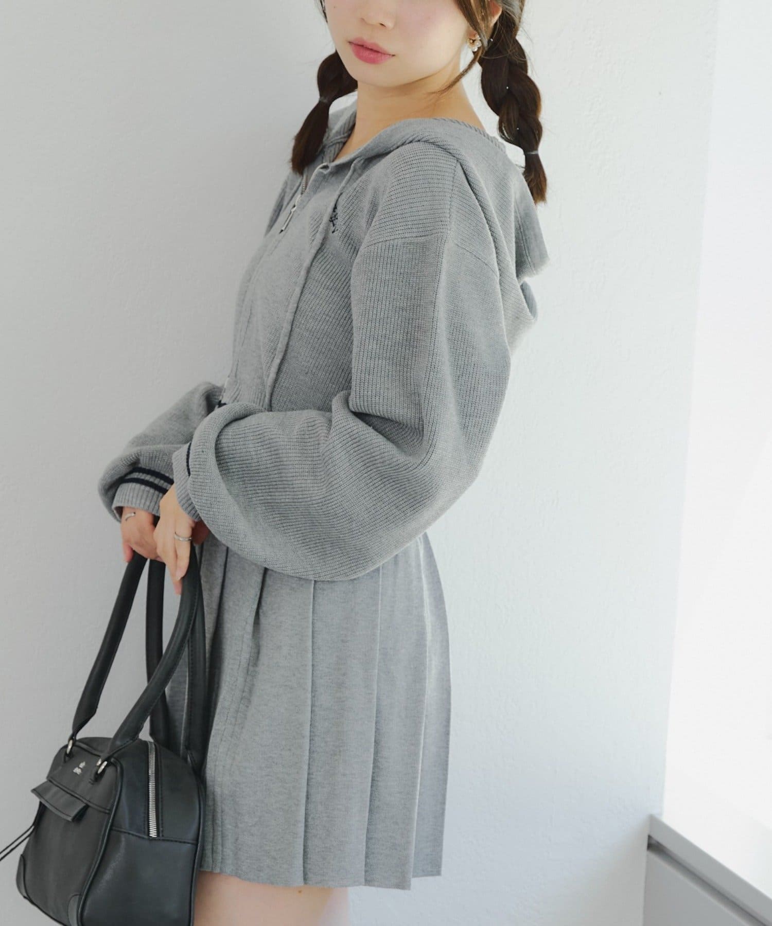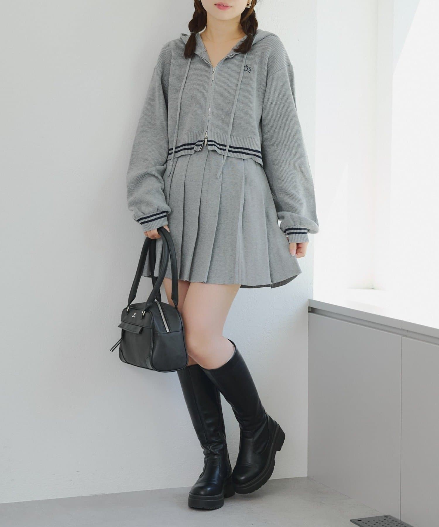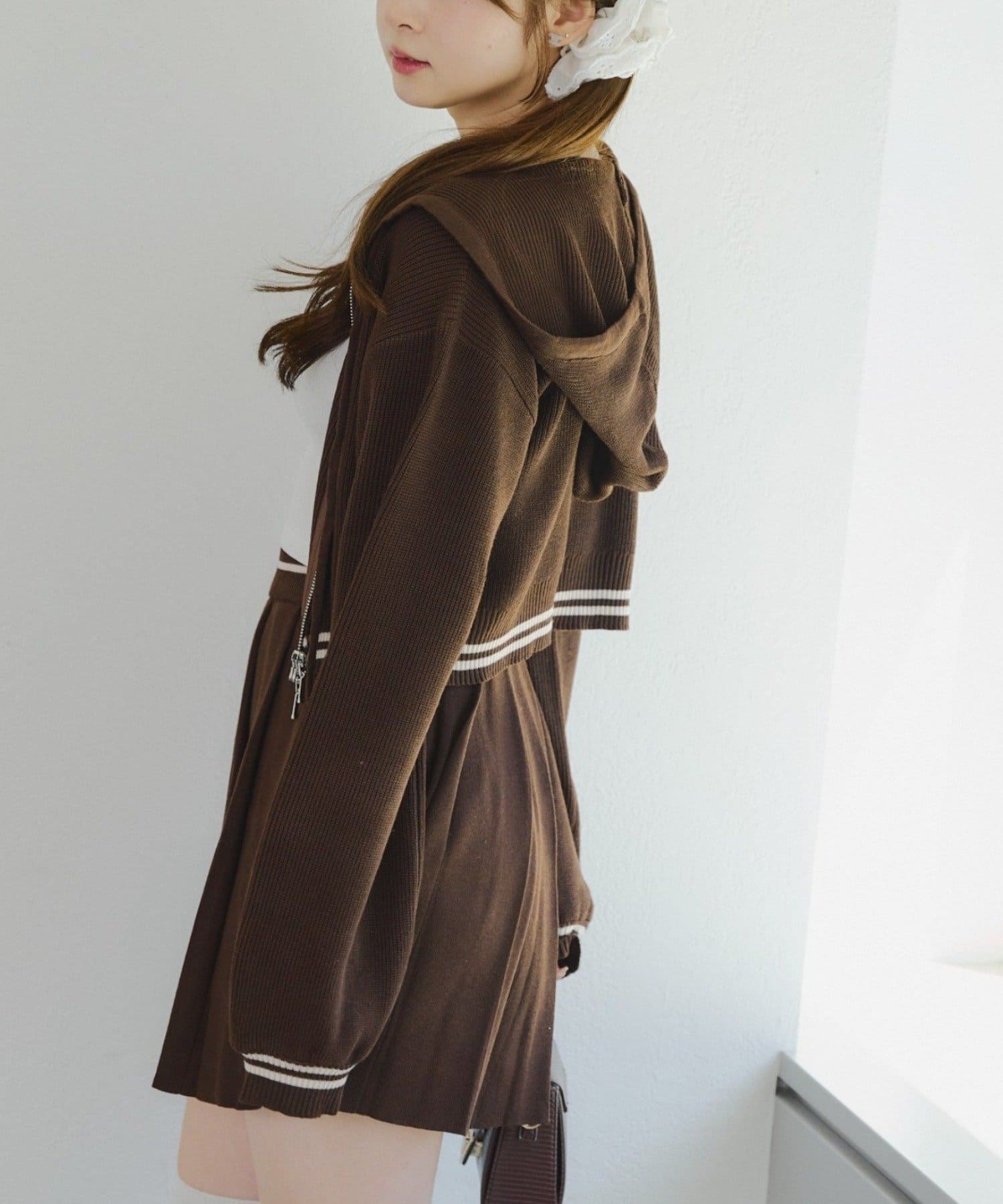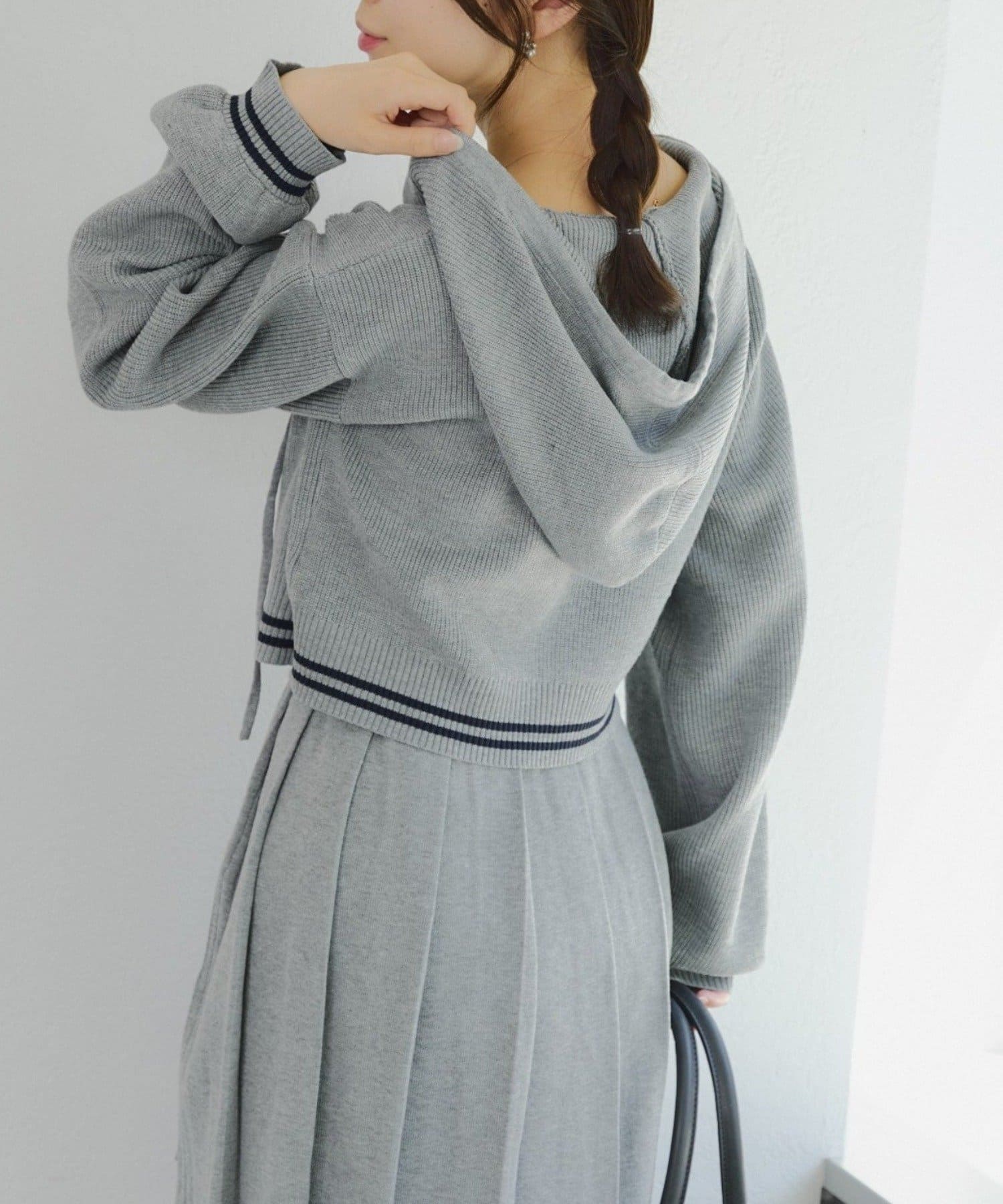 ・パーカーとスカートのニットセットアップ