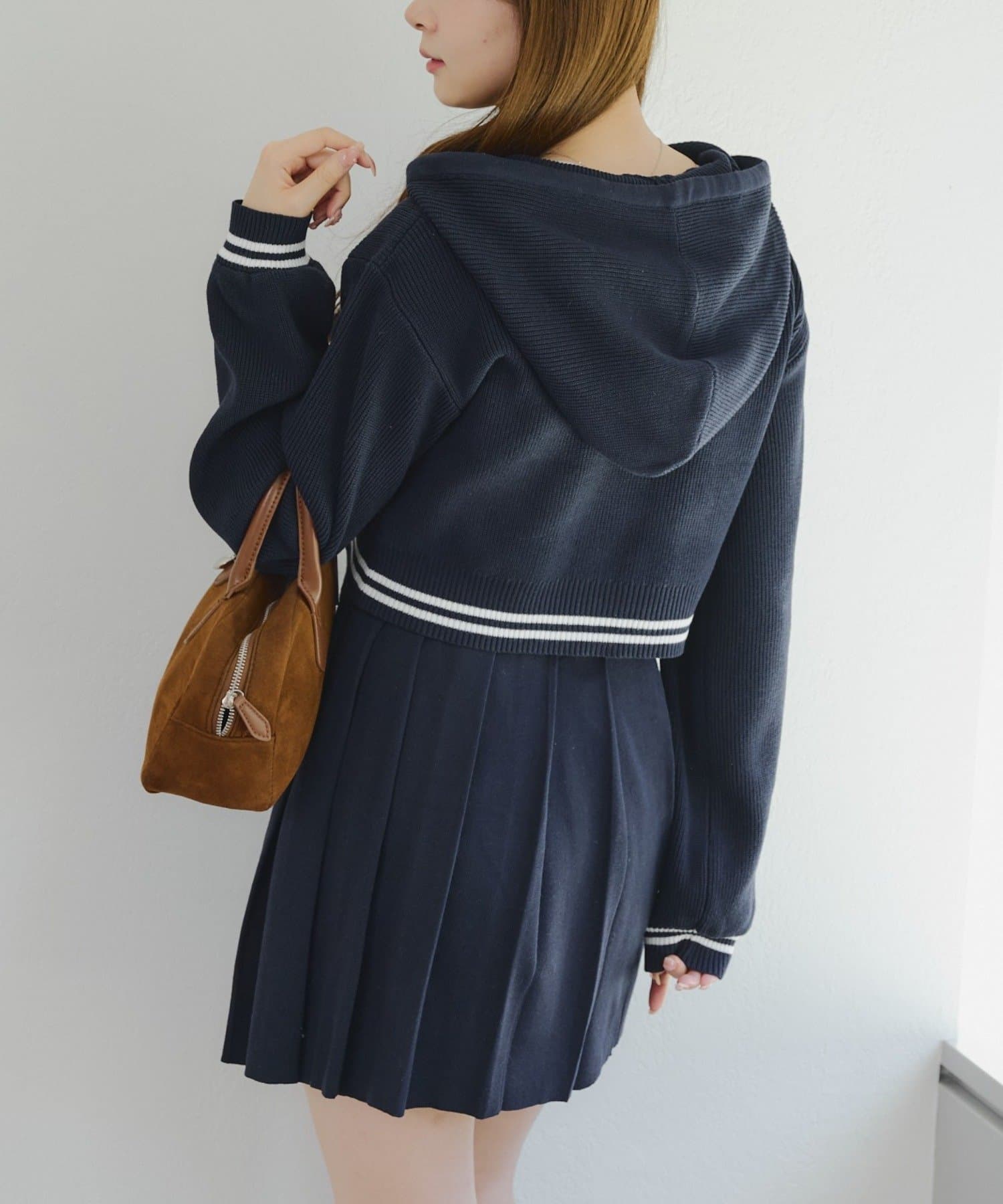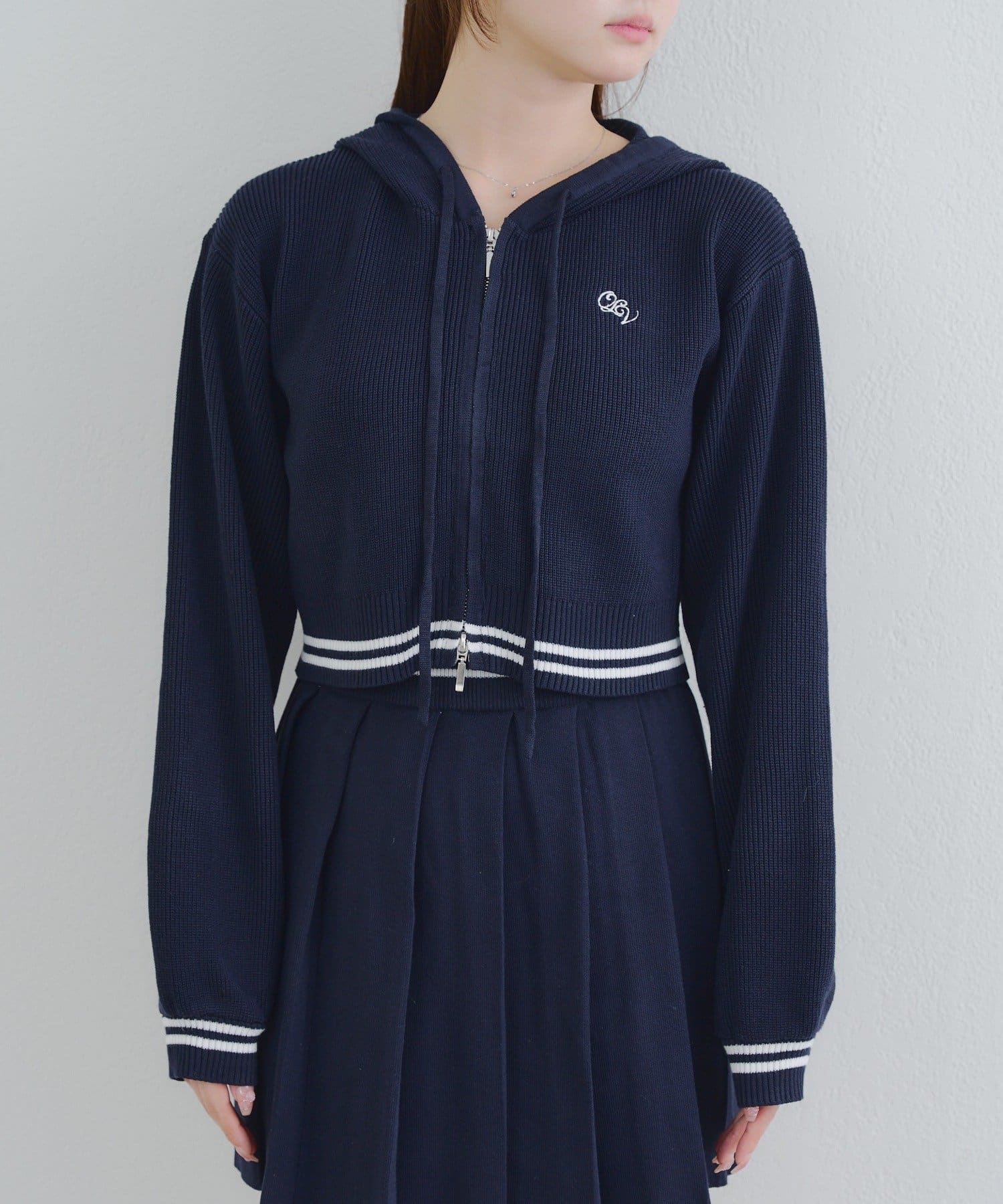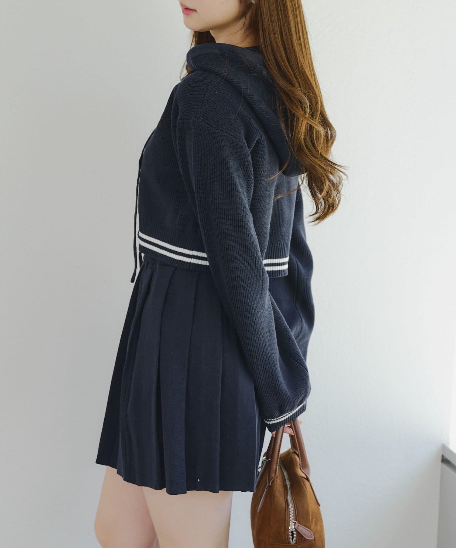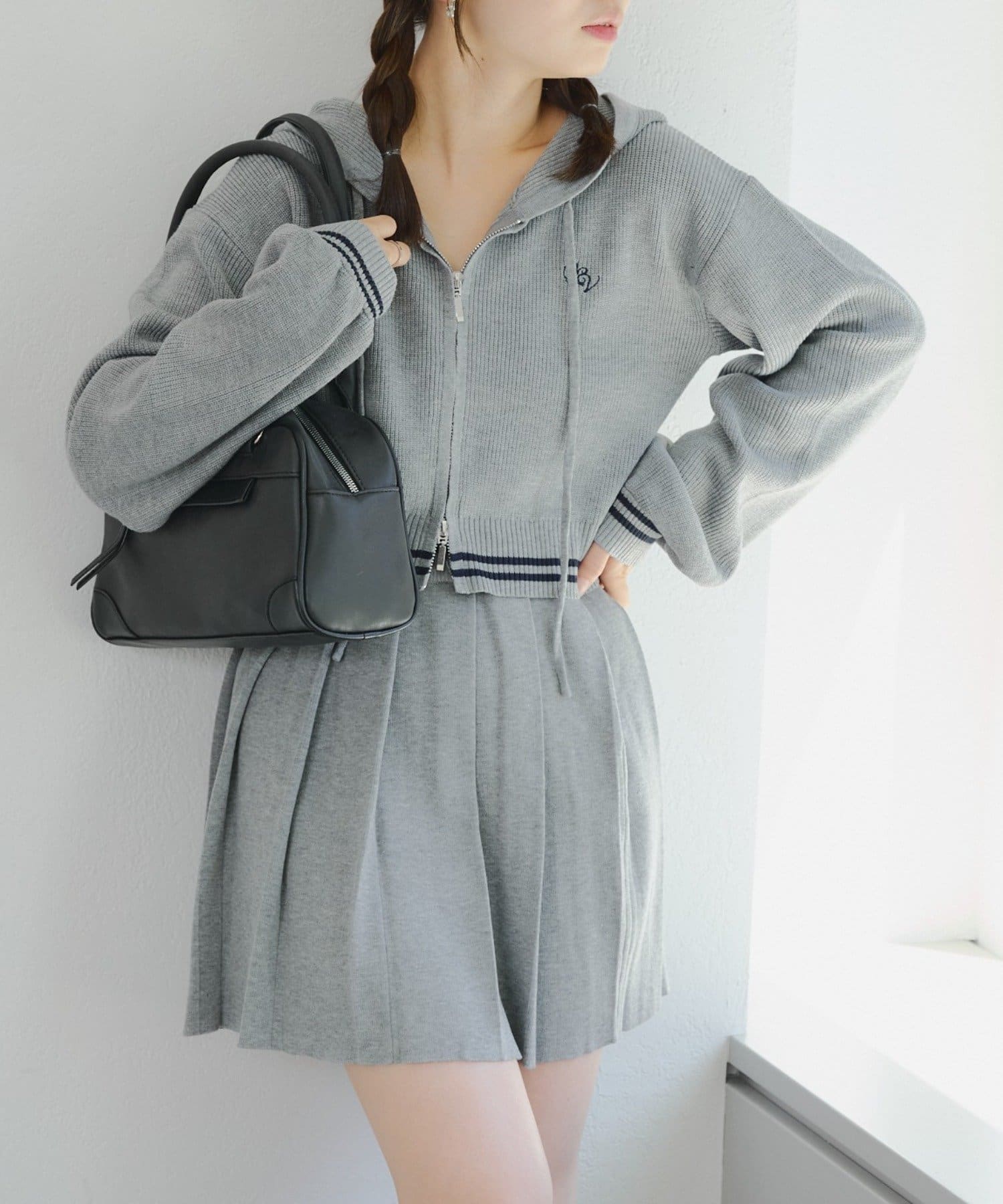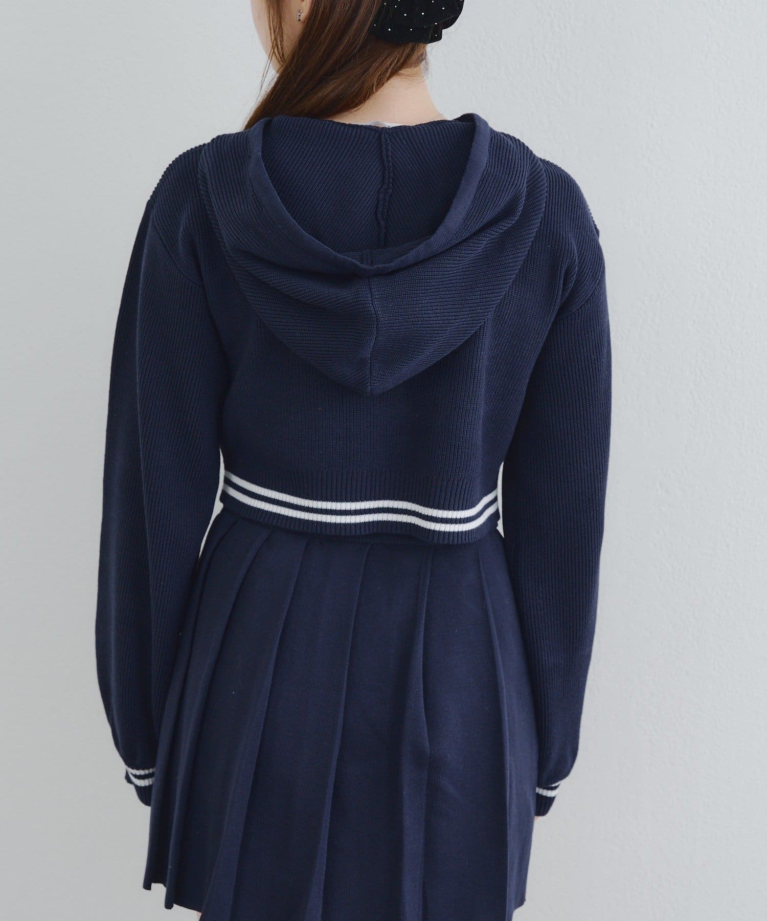 ・パーカーとスカートのニットセットアップ
